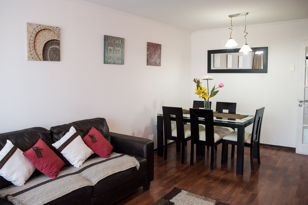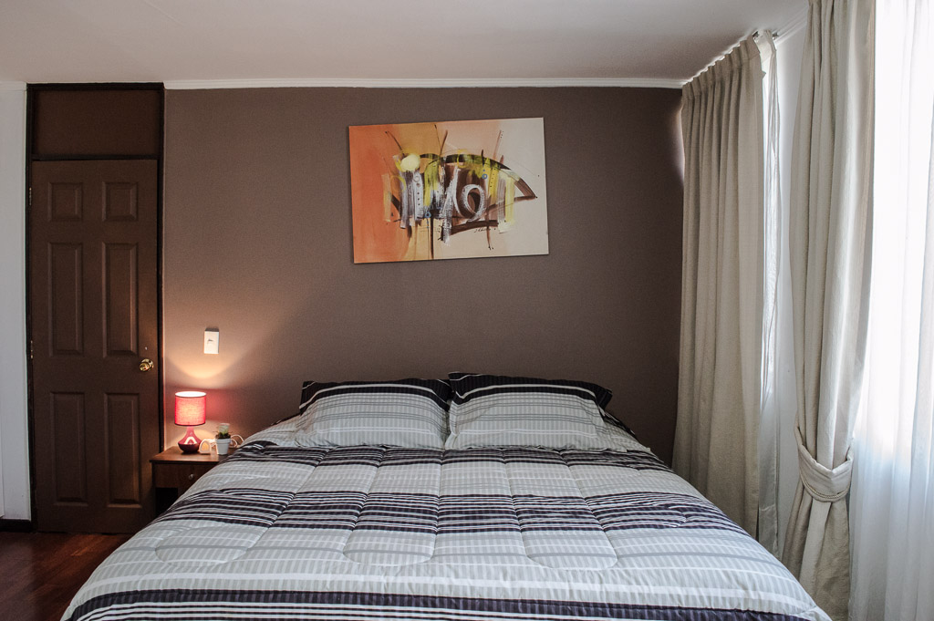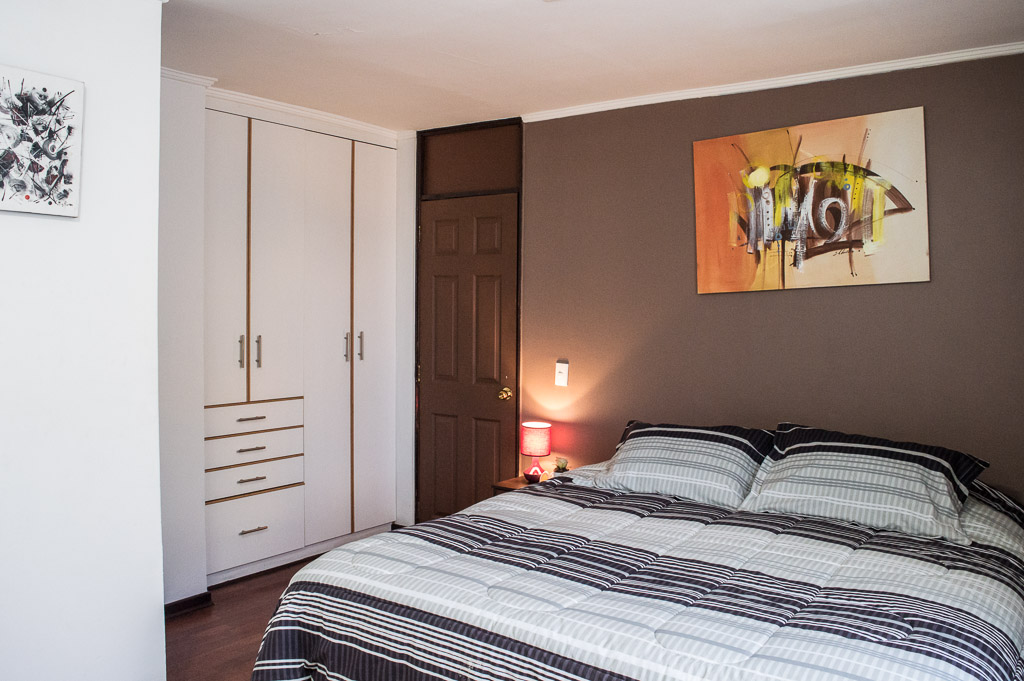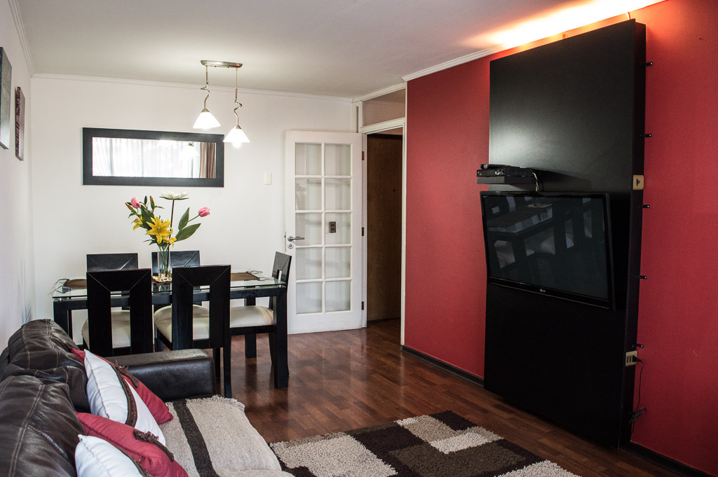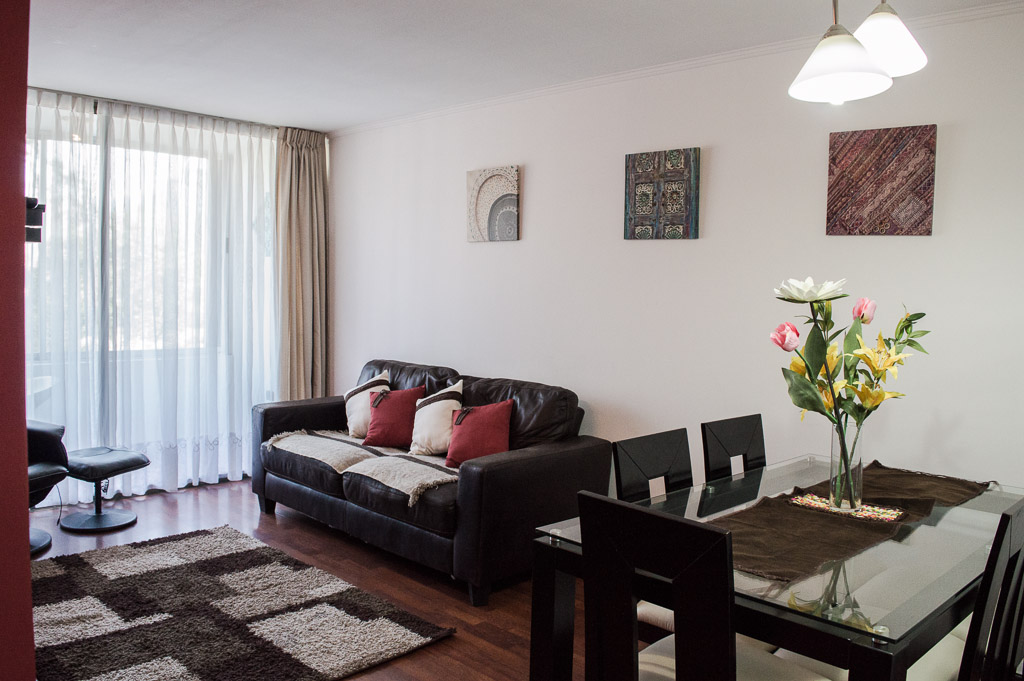 Departamento amoblado de 3 habitaciones ubicado a 3 minutos caminando de la parada de autobús y a 6 minutos caminando de la Estación de Metro Los Leones.El departamento tiene living, comedor, cocina (cerrada), 2 baños, balcón y 1 estacionamiento (opcional por un valor de $ 55USD adicional). La habitación 1 tiene cama matrimonial, 2 clósets, mesa de noche, televisor y baño en suite; La habitación 2 tiene cama individual y mesa de noche; La habitación 3 tiene escritorio, silla y baño en suite; El lugar mide 100m² + 3m² de terraza aproximadamente. Los gastos de servicios de gastos comunes, agua caliente, agua fría, electricidad, gas e internet se pagan por adelantado junto a la renta mensual, con un límite de consumo de $ 219USD. Se debe pagar garantía (depósito) la que será devuelta al finalizar el período de arriendo; además, se debe pagar $ 55USD al momento de devolver el alojamiento para realizar la limpieza del lugar. Cerca del alojamiento se encuentra la Avenida Nueva Providencia y la Avenida Providencia (el corazón de Providencia) donde es posible encontrar tiendas comerciales, bancos, gimnasios, supermercados y medios de transporte público. A pasos se encuentra el conocido Mall Costanera Center, el centro comercial más grande y moderno de Latinoamérica.