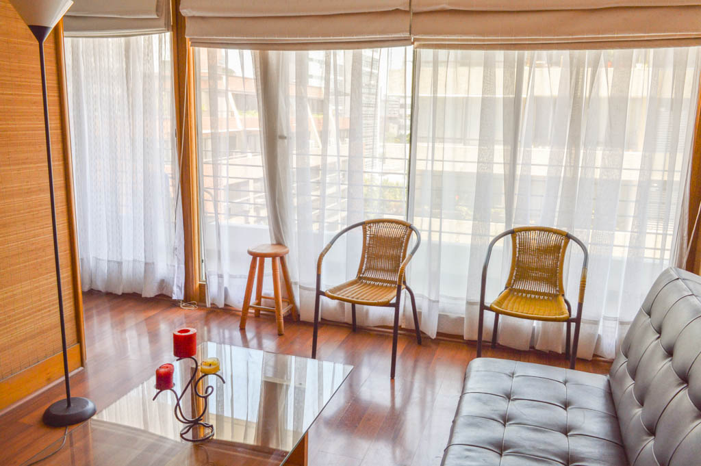 Departamento amoblado de 2 habitaciones ubicado a 3 minutos caminando de la parada de autobús y a 4 minutos caminando de la Estación de Metro Pedro de Valdivia.El departamento tiene living, cocina (abierta), 2 baños, balcón y 1 estacionamiento (opcional por un valor de $ 87USD adicional). La habitación 1 tiene cama matrimonial, clóset, 2 mesas de noche, televisor y baño en suite; La habitación 2 tiene cama individual, clóset, escritorio y silla; El lugar mide 62m² + 8m² de terraza aproximadamente. Los gastos de servicios de gastos comunes, agua caliente, agua fría, electricidad, gas, internet y TV cable se pagan por adelantado junto a la renta mensual, con un límite de consumo de $ 177USD. El alojamiento tiene lavandería compartida cuyo valor es $ 1USD aproximadamente por carga de ropa (lavado o secado). Se debe pagar garantía (depósito) la que será devuelta al finalizar el período de arriendo; además, se debe pagar $ 33USD al momento de devolver el alojamiento para realizar la limpieza del lugar. Cerca del alojamiento se encuentra la Avenida Providencia donde se encuentran diferentes locales comerciales, bancos, supermercados, restoranes, cafeterías, bares, y locomoción hacia distintos punto de la capital. A pasos podrás encontrar la iglesia de la divina providencia, monumento nacional y, el parque de las esculturas, con obras de diversos artistas y agradables áreas verdes.