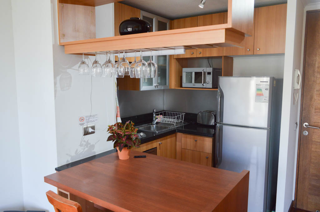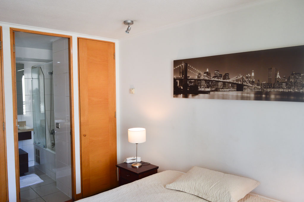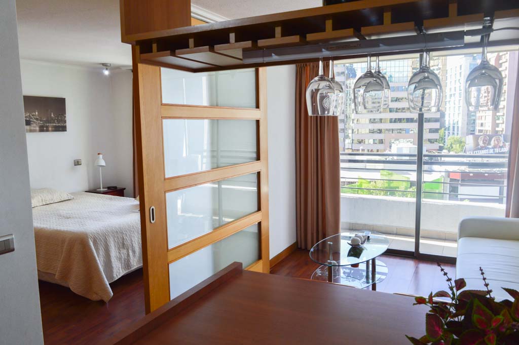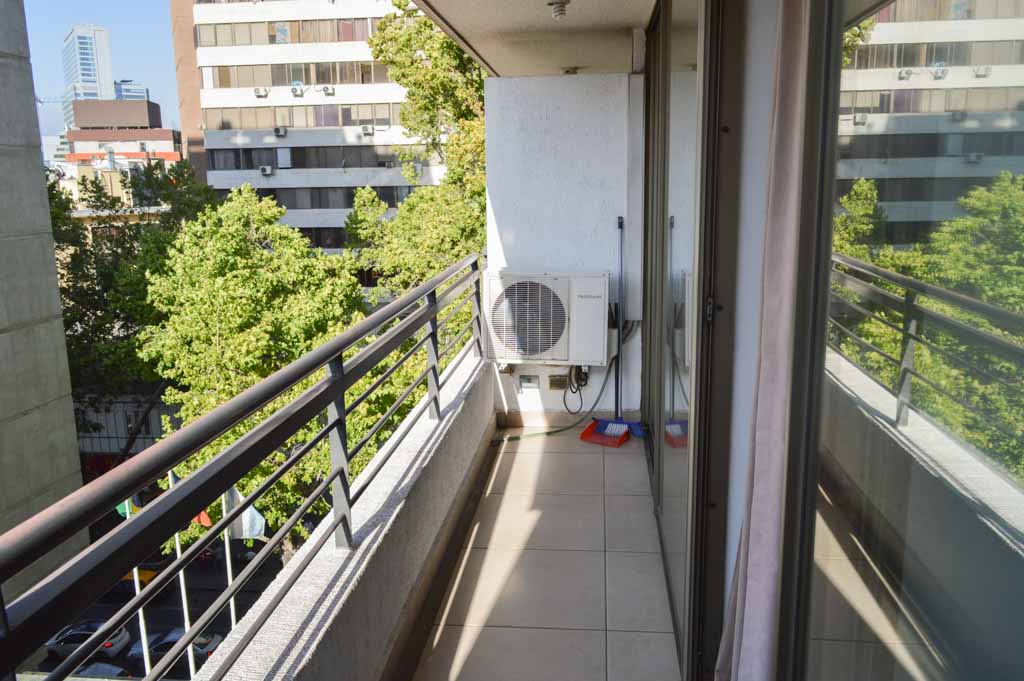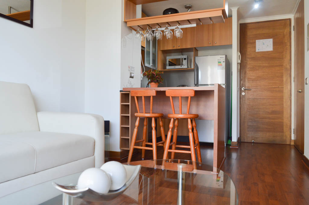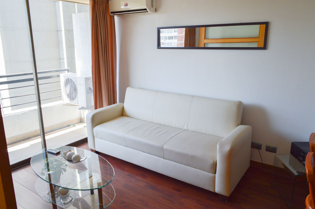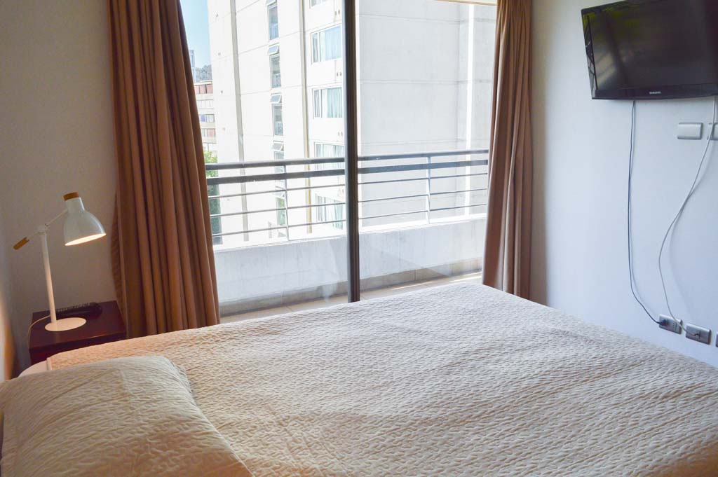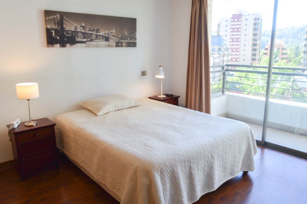 Departamento amoblado de 1 habitación ubicado a 2 minutos caminando de la parada de autobús y a 1 minuto caminando de la Estación de Metro Los Leones.El departamento tiene living, comedor, cocina (abierta), 1 baño y terraza. La habitación 1 tiene cama matrimonial, clóset, 2 mesas de noche y televisor; El lugar mide 35m² + 4m² de terraza aproximadamente. Los gastos de servicios de gastos comunes, agua caliente, agua fría, electricidad e internet se pagan por adelantado junto a la renta mensual, con un límite de consumo de $ 146USD. El alojamiento tiene lavandería compartida cuyo valor es $ 2USD aproximadamente por carga de ropa (lavado o secado). Se debe pagar garantía (depósito) la que será devuelta al finalizar el período de arriendo; además, se debe pagar $ 27USD al momento de devolver el alojamiento para realizar la limpieza del lugar. Cerca del alojamiento se encuentra la Avenida Nueva Providencia y la Avenida Providencia (el corazón de Providencia) donde es posible encontrar tiendas comerciales, bancos, gimnasios, supermercados y medios de transporte público. A pasos se encuentra el conocido Mall Costanera Center, el centro comercial más grande y moderno de Latinoamérica.