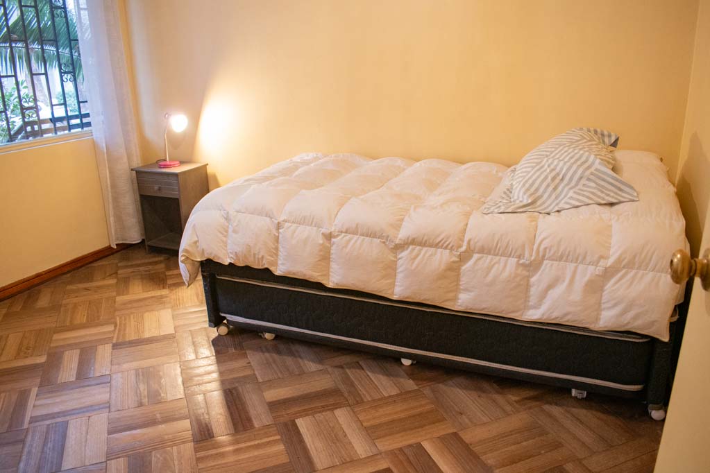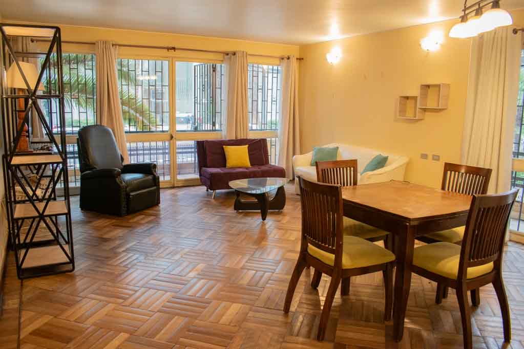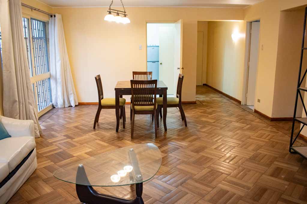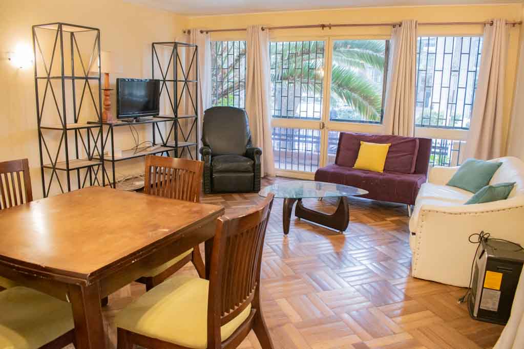 Departamento amoblado de 4 habitaciones ubicado a 2 minutos caminando de la parada de autobús y a 2 minutos caminando de la Estación de Metro Los Leones.El departamento tiene living, comedor, cocina (cerrada), 2 baños, terraza, patio y 2 estacionamientos. La habitación 1 tiene cama matrimonial, clóset y mesa de noche; La habitación 2 tiene cama matrimonial, clóset y 2 mesas de noche; La habitación 3 tiene cama individual, clóset y mesa de noche; La habitación 4 tiene armario y baño en suite; El lugar mide 113m² + 25m² de terraza aproximadamente. Los gastos de servicios de gastos comunes, agua caliente, agua fría, electricidad, gas, internet y TV cable se pagan por adelantado junto a la renta mensual, con un límite de consumo de $ 440USD. Se debe pagar garantía (depósito) la que será devuelta al finalizar el período de arriendo; además, se debe pagar $ 116USD al momento de devolver el alojamiento para realizar la limpieza del lugar. Cerca del alojamiento se encuentra la Avenida Nueva Providencia y la Avenida Providencia (el corazón de Providencia) donde es posible encontrar tiendas comerciales, bancos, gimnasios, supermercados y medios de transporte público. A pasos se encuentra el conocido Mall Costanera Center, el centro comercial más grande y moderno de Latinoamérica.