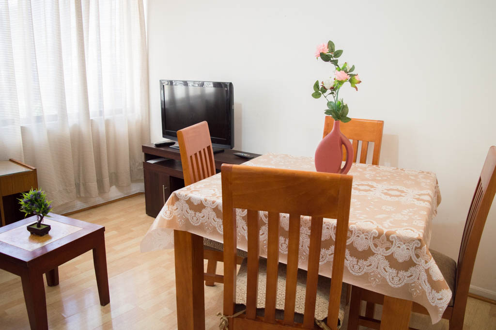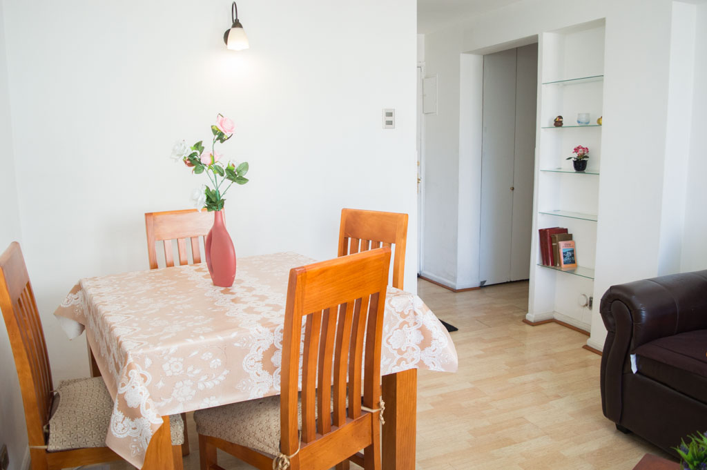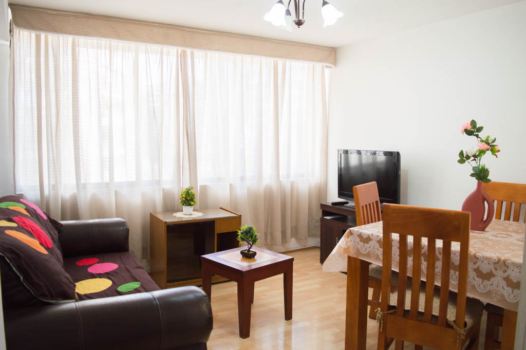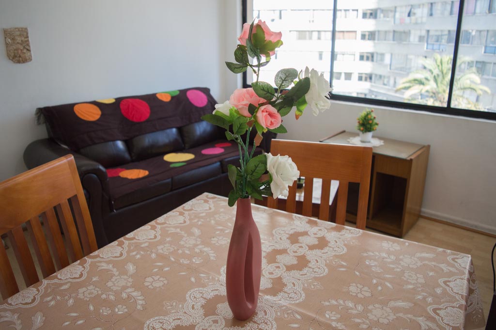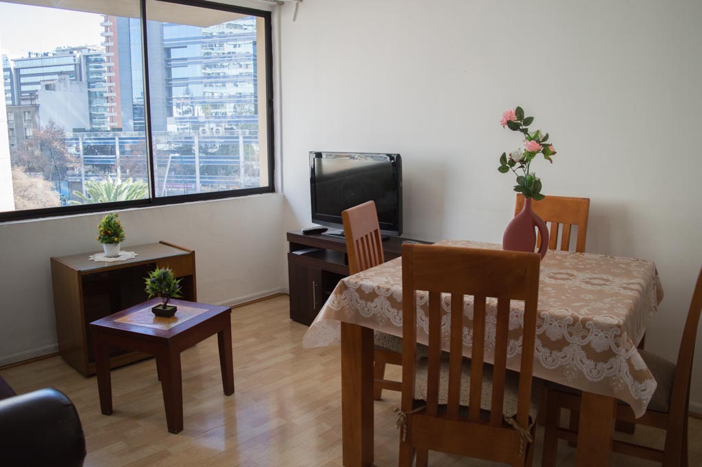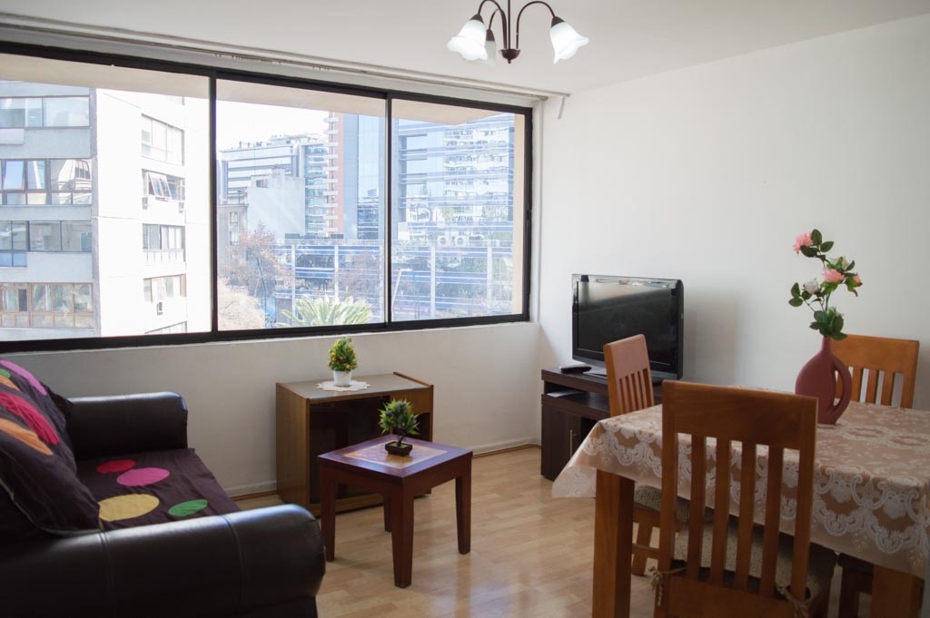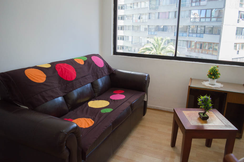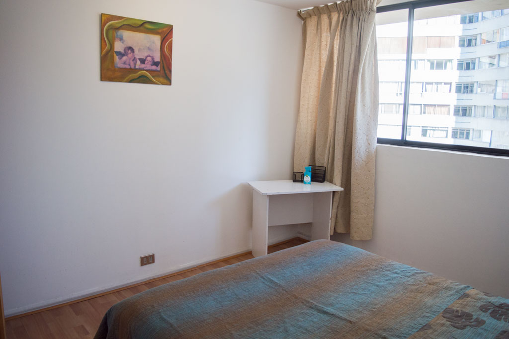 Departamento amoblado de 2 habitaciones ubicado a 2 minutos caminando de la parada de autobús y a 2 minutos caminando de la Estación de Metro Pedro de Valdivia.El departamento tiene living, comedor, cocina (cerrada) y 1 baño. La habitación 1 tiene cama matrimonial, 2 mesas de noche y escritorio; La habitación 2 tiene cama individual, cómoda, mesa de noche, televisor y silla; El lugar mide 50m² aproximadamente. Los gastos de servicios de gastos comunes, agua caliente, agua fría, electricidad y gas se pagan por adelantado junto a la renta mensual, con un límite de consumo de $ 162USD. Se debe pagar garantía (depósito) la que será devuelta al finalizar el período de arriendo; además, se debe pagar $ 76USD al momento de devolver el alojamiento para realizar la limpieza del lugar. Cerca del alojamiento se encuentra la Avenida Providencia donde se encuentran diferentes locales comerciales, bancos, supermercados, restoranes, cafeterías, bares, y locomoción hacia distintos punto de la capital. A pasos podrás encontrar la iglesia de la divina providencia, monumento nacional y, el parque de las esculturas, con obras de diversos artistas y agradables áreas verdes.