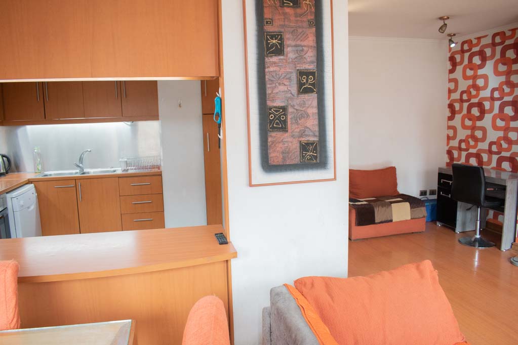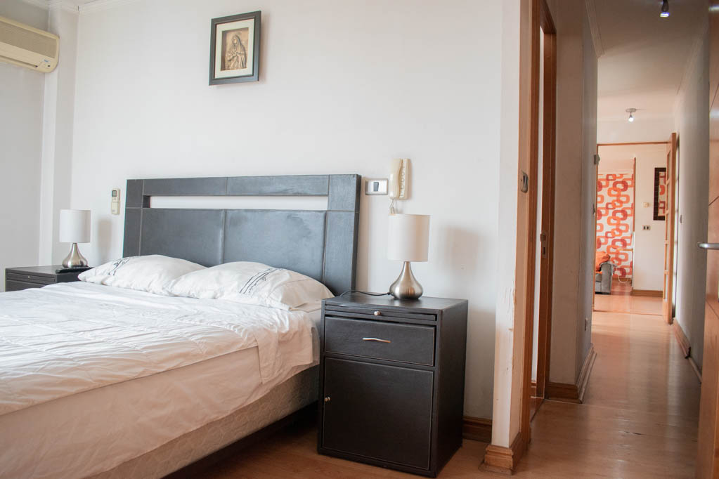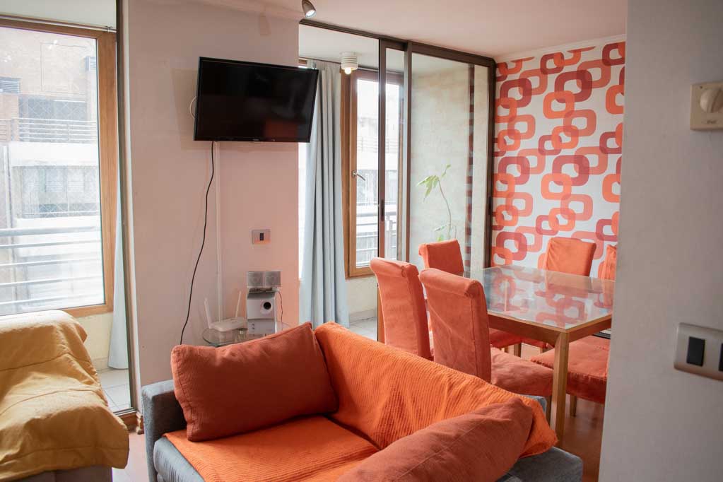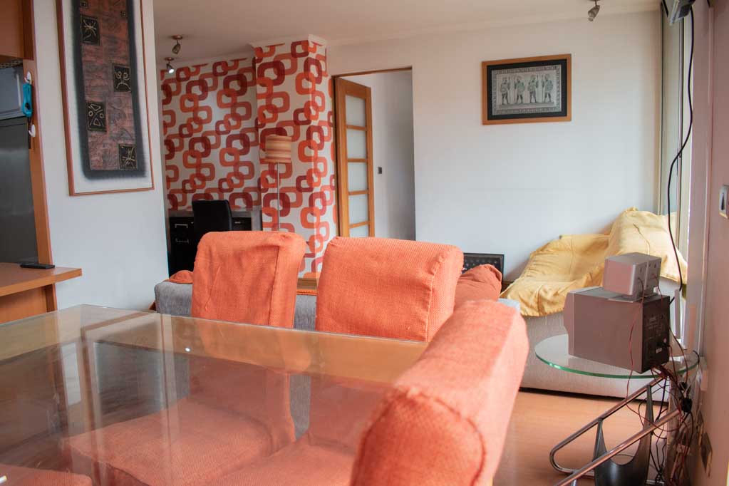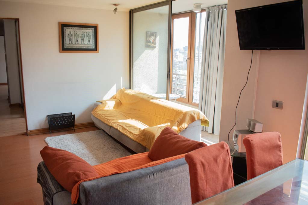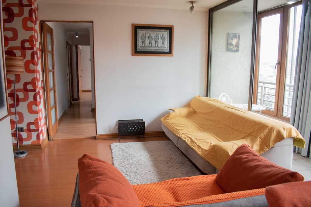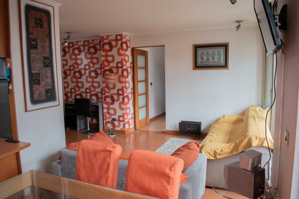 Departamento amoblado de 3 habitaciones ubicado a 1 minuto caminando de la parada de autobús y a 5 minutos caminando de la Estación de Metro Pedro de Valdivia.El departamento tiene living, comedor, cocina (cerrada), 2 baños, terraza y 1 estacionamiento (opcional por un valor de $ 68USD adicional). La habitación 1 tiene cama matrimonial, clóset, 2 mesas de noche, televisor y baño en suite; La habitación 2 tiene cama individual, clóset y mesa de noche; La habitación 3 tiene cama individual y clóset; El lugar mide 90m² + 6m² de terraza aproximadamente. Los gastos de servicios de gastos comunes, agua caliente, agua fría, electricidad, gas, internet y TV cable se pagan por adelantado junto a la renta mensual, con un límite de consumo de $ 396USD. El alojamiento tiene lavandería compartida cuyo valor es $ 2USD aproximadamente por carga de ropa (lavado o secado). Se debe pagar garantía (depósito) la que será devuelta al finalizar el período de arriendo; además, se debe pagar $ 68USD al momento de devolver el alojamiento para realizar la limpieza del lugar. Cerca del alojamiento se encuentra la Avenida Providencia donde se encuentran diferentes locales comerciales, bancos, supermercados, restoranes, cafeterías, bares, y locomoción hacia distintos punto de la capital. A pasos podrás encontrar la iglesia de la divina providencia, monumento nacional y, el parque de las esculturas, con obras de diversos artistas y agradables áreas verdes.