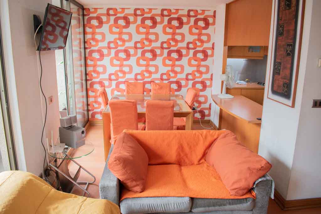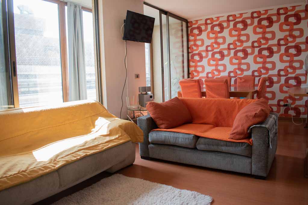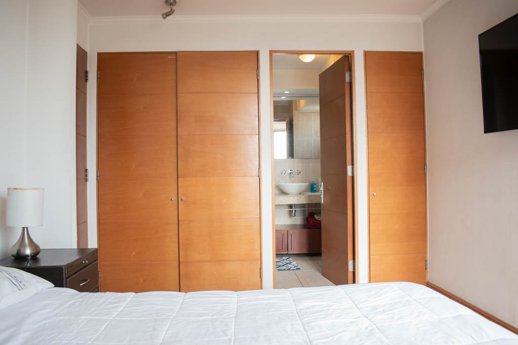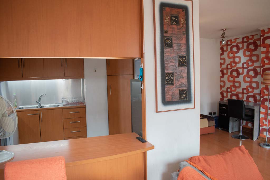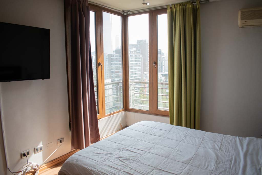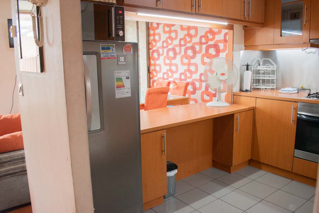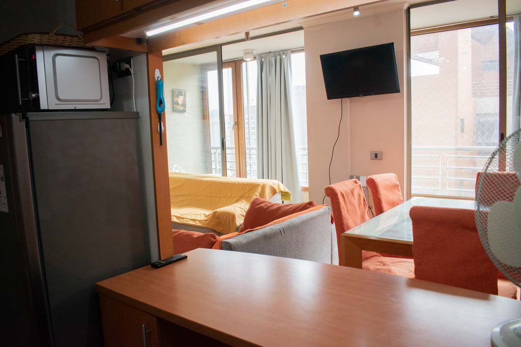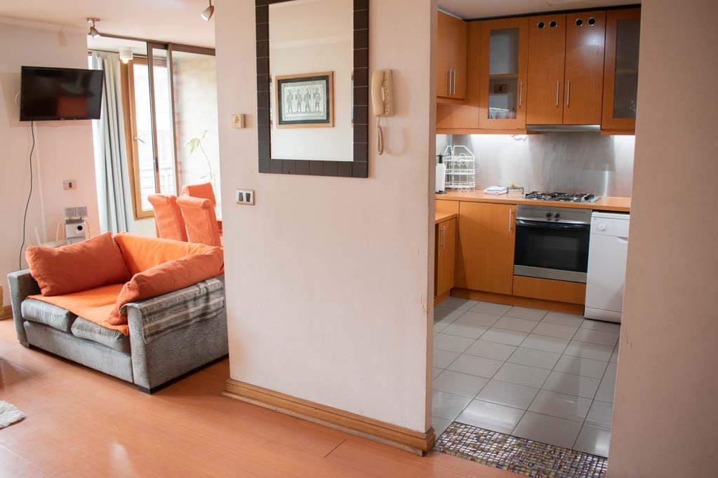 Departamento amoblado de 3 habitaciones ubicado a 1 minuto caminando de la parada de autobús y a 5 minutos caminando de la Estación de Metro Pedro de Valdivia.El departamento tiene living, comedor, cocina (cerrada), 2 baños, terraza y 1 estacionamiento (opcional por un valor de $ 68USD adicional). La habitación 1 tiene cama matrimonial, clóset, 2 mesas de noche, televisor y baño en suite; La habitación 2 tiene cama individual, clóset y mesa de noche; La habitación 3 tiene cama individual y clóset; El lugar mide 90m² + 6m² de terraza aproximadamente. Los gastos de servicios de gastos comunes, agua caliente, agua fría, electricidad, gas, internet y TV cable se pagan por adelantado junto a la renta mensual, con un límite de consumo de $ 396USD. El alojamiento tiene lavandería compartida cuyo valor es $ 2USD aproximadamente por carga de ropa (lavado o secado). Se debe pagar garantía (depósito) la que será devuelta al finalizar el período de arriendo; además, se debe pagar $ 68USD al momento de devolver el alojamiento para realizar la limpieza del lugar. Cerca del alojamiento se encuentra la Avenida Providencia donde se encuentran diferentes locales comerciales, bancos, supermercados, restoranes, cafeterías, bares, y locomoción hacia distintos punto de la capital. A pasos podrás encontrar la iglesia de la divina providencia, monumento nacional y, el parque de las esculturas, con obras de diversos artistas y agradables áreas verdes.