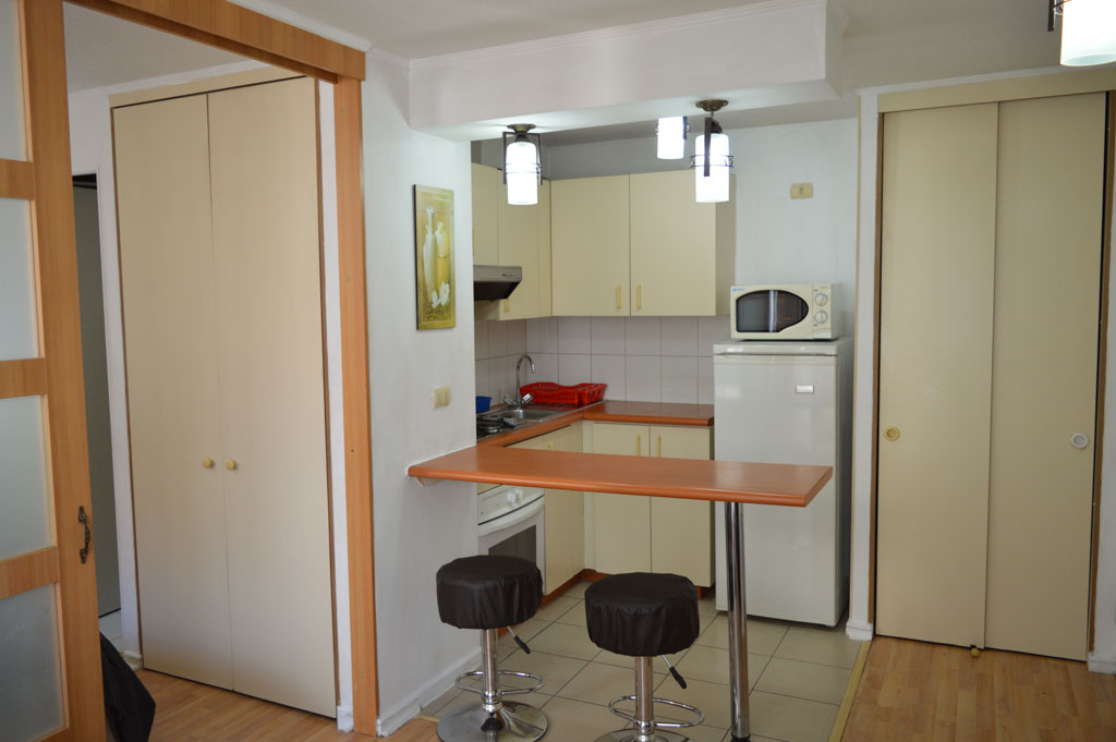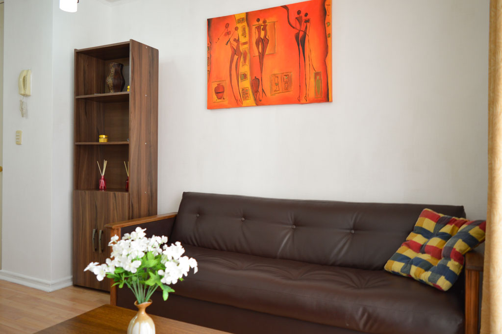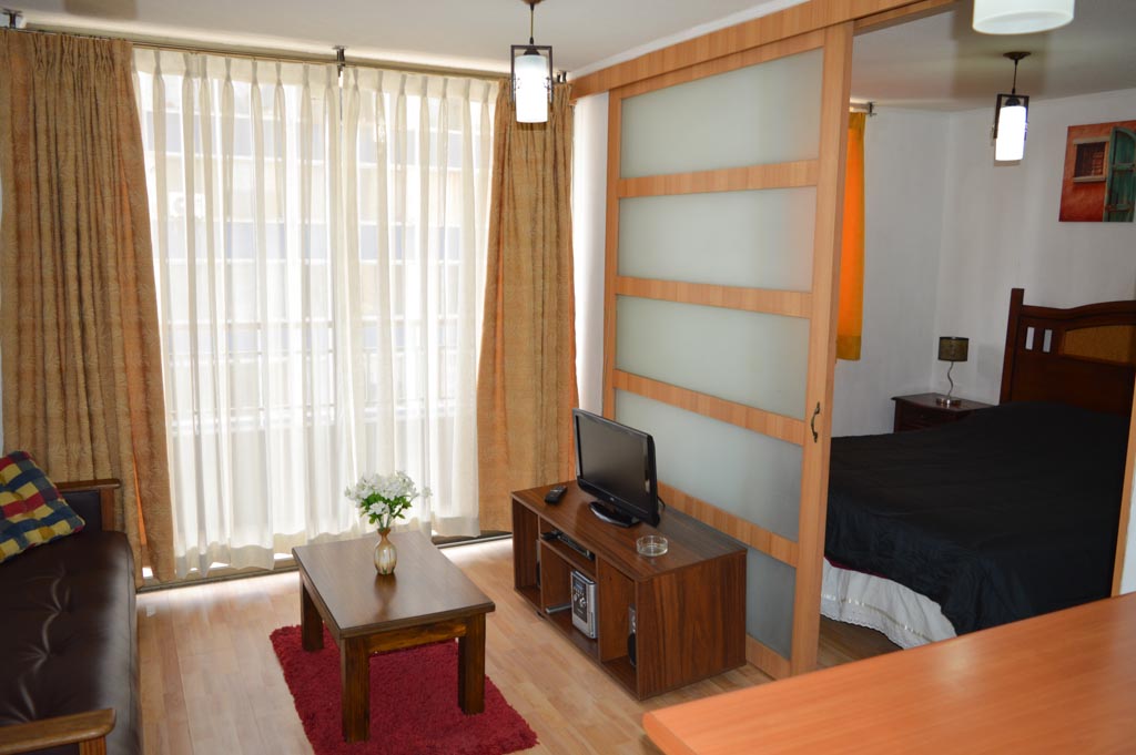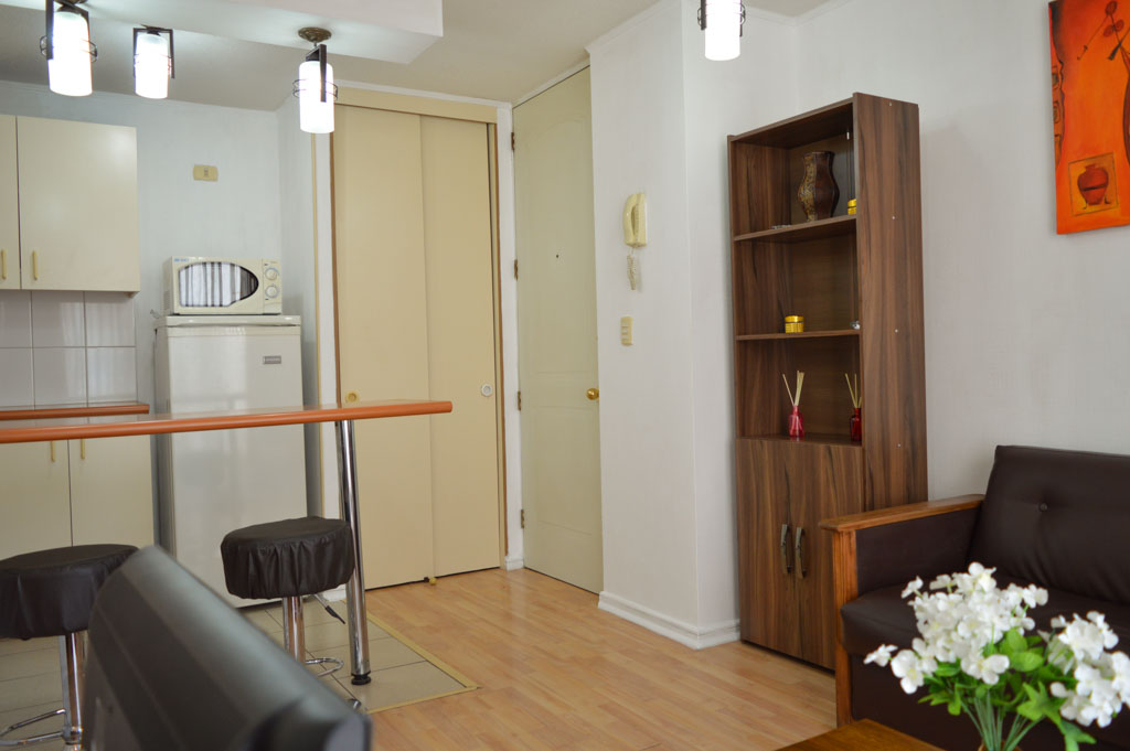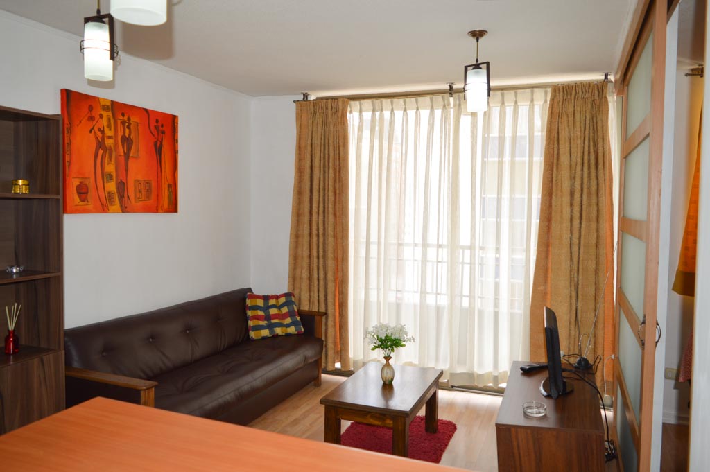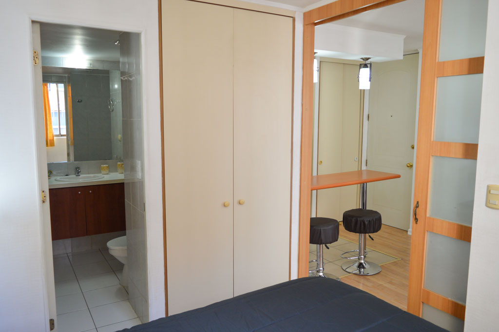 Departamento amoblado de 1 habitación ubicado a 1 minuto caminando de la parada de autobús y a 5 minutos caminando de la Estación de Metro Bellas Artes.El departamento tiene living, comedor, cocina (abierta), 1 baño y balcón. La habitación 1 tiene cama matrimonial, clóset y 2 mesas de noche; El lugar mide 40m² + 3m² de terraza aproximadamente. Se debe considerar el pago de gastos de servicios de gastos comunes, agua caliente, agua fría, electricidad y gas que suman $ 93USD aproximadamente. El alojamiento tiene lavandería compartida cuyo valor es $ 1USD aproximadamente por carga de ropa (lavado o secado). Se debe pagar garantía (depósito) la que será devuelta al finalizar el período de arriendo; además, se debe pagar $ 38USD al momento de devolver el alojamiento para realizar la limpieza del lugar. Cerca del alojamiento se encuentra el Barrio Lastarria y Barrio Bellas Artes (barrios históricos - culturales), caracterizados por sus casonas del siglo XIX restauradas y utilizadas como restaurantes, cafeterías, librerías, centros culturales, entre otros. A pasos podrás encontrar el Museo Nacional de Bellas Artes, donde se resguarda lo más valioso del arte nacional e internacional y el Parque Forestal, lugar ideal para compartir con amigos, practicar deportes y pasear.