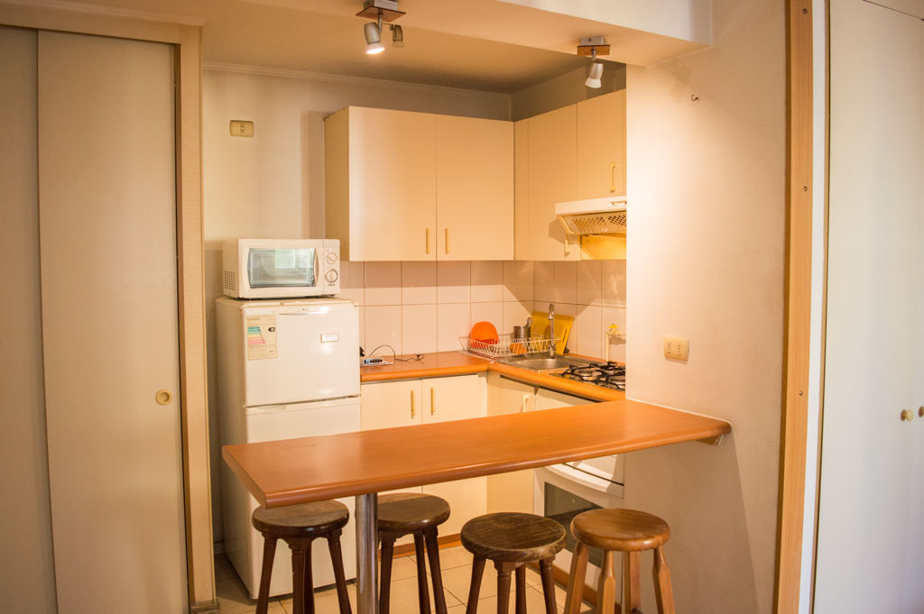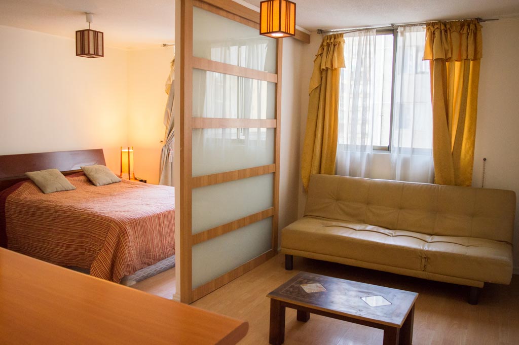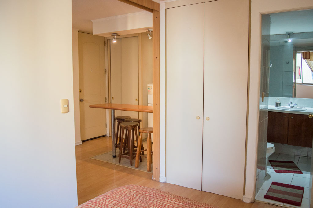 Departamento amoblado de 1 habitación ubicado a 5 minutos caminando de la parada de autobús y a 7 minutos caminando de la Estación de Metro Bellas Artes.El departamento tiene living, comedor, cocina (abierta) y 1 baño. La habitación 1 tiene cama matrimonial, clóset, 2 mesas de noche, televisor y baño en suite; El lugar mide 30m² aproximadamente. Los gastos de servicios de gastos comunes, agua caliente, agua fría, electricidad y gas se pagan por adelantado junto a la renta mensual, con un límite de consumo de $ 112USD. El alojamiento tiene lavandería compartida cuyo valor es $ 2USD aproximadamente por carga de ropa (lavado o secado). Se debe pagar garantía (depósito) la que será devuelta al finalizar el período de arriendo; además, se debe pagar $ 12USD al momento de devolver el alojamiento para realizar la limpieza del lugar. Cerca del alojamiento se encuentra el Barrio Lastarria y Barrio Bellas Artes (barrios históricos - culturales), caracterizados por sus casonas del siglo XIX restauradas y utilizadas como restaurantes, cafeterías, librerías, centros culturales, entre otros. A pasos podrás encontrar el Museo Nacional de Bellas Artes, donde se resguarda lo más valioso del arte nacional e internacional y el Parque Forestal, lugar ideal para compartir con amigos, practicar deportes y pasear.