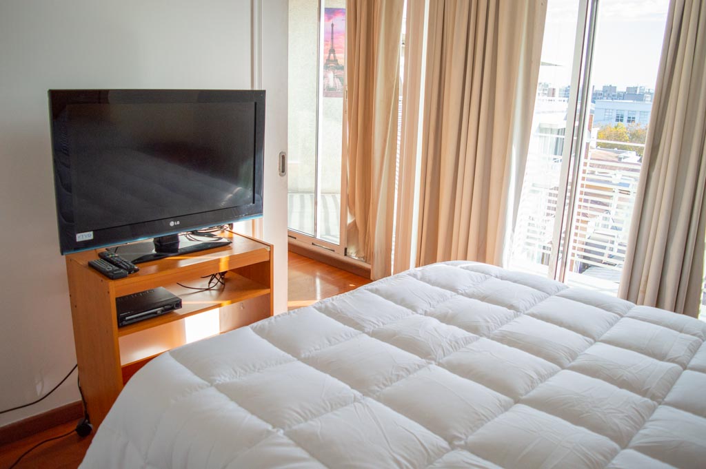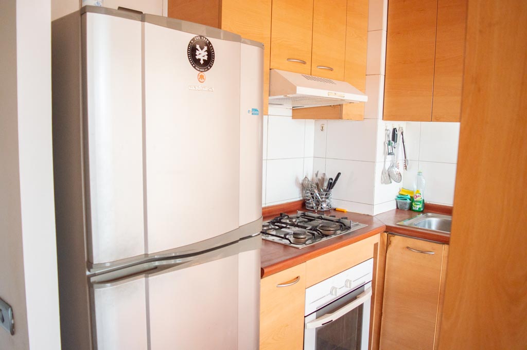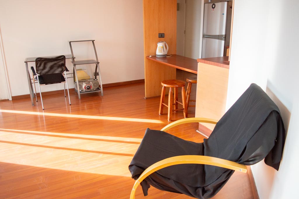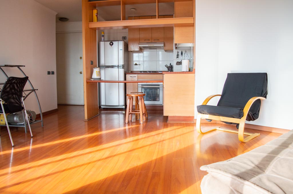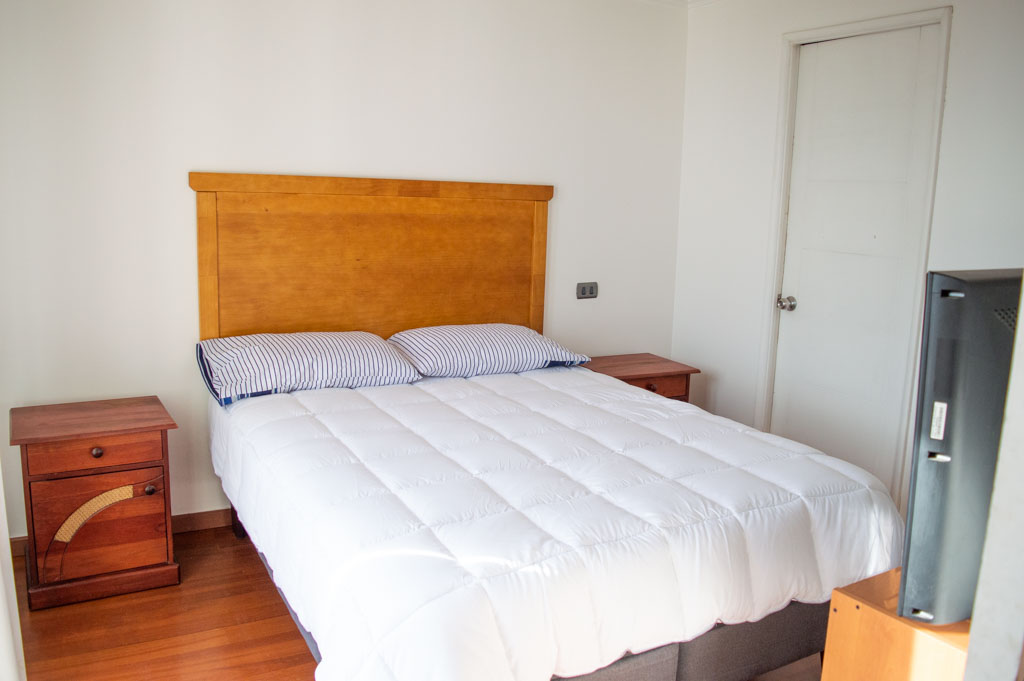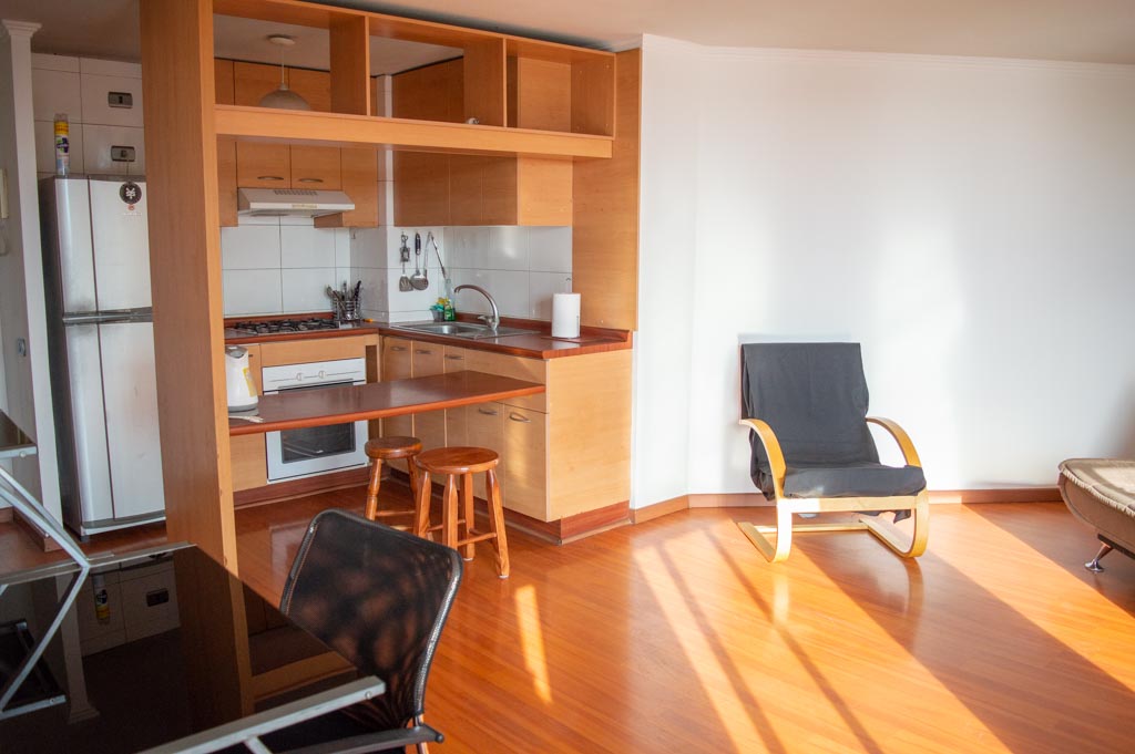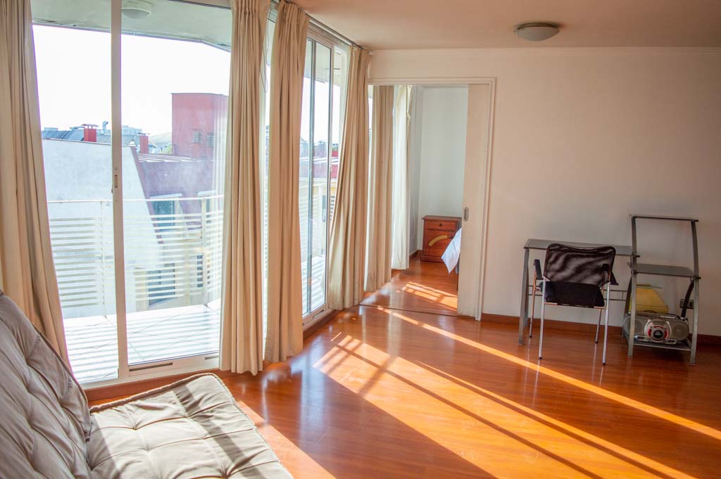 Departamento amoblado de 1 habitación ubicado a 4 minutos caminando de la parada de autobús y a 8 minutos caminando de la Estación de Metro República.El departamento tiene living, comedor, cocina (abierta), 1 baño y terraza. La habitación 1 tiene cama matrimonial, walk-in clóset, 2 mesas de noche, televisor y baño en suite; El lugar mide 40m² + 10m² de terraza aproximadamente. Los gastos de servicios de gastos comunes y agua caliente se pagan por adelantado junto a la renta mensual, con un límite de consumo de $ 132USD. Además, se debe considerar el pago de gastos de servicios de agua fría, electricidad y gas que suman $ 33USD aproximadamente. El alojamiento tiene lavandería compartida cuyo valor es $ 2USD aproximadamente por carga de ropa (lavado o secado). Se debe pagar garantía (depósito) la que será devuelta al finalizar el período de arriendo; además, se debe pagar $ 44USD al momento de devolver el alojamiento para realizar la limpieza del lugar. Cerca del alojamiento se encuentra el Barrio República caracterizado por su ambiente universitario, la diversidad de bares y lugares de comida. En el, se encuentran numerosas universidades e institutos profesionales, como la Universidad Andrés Bello, Universidad Diego portales, Universidad de Chile, entre otras.