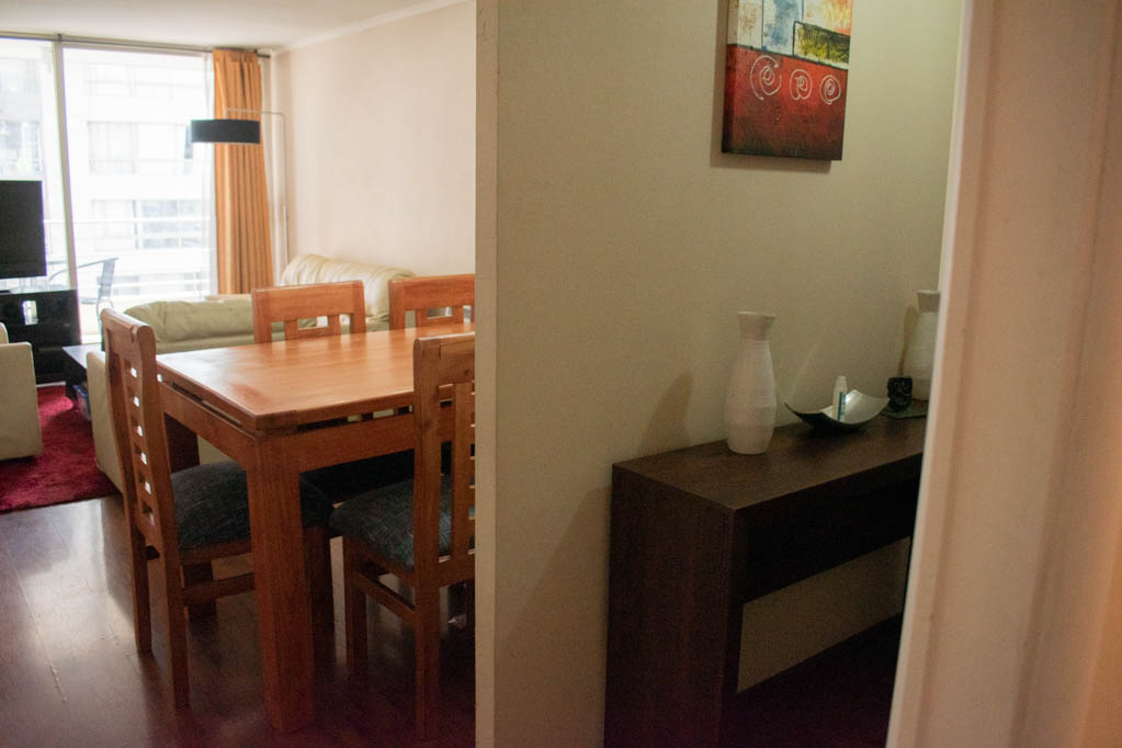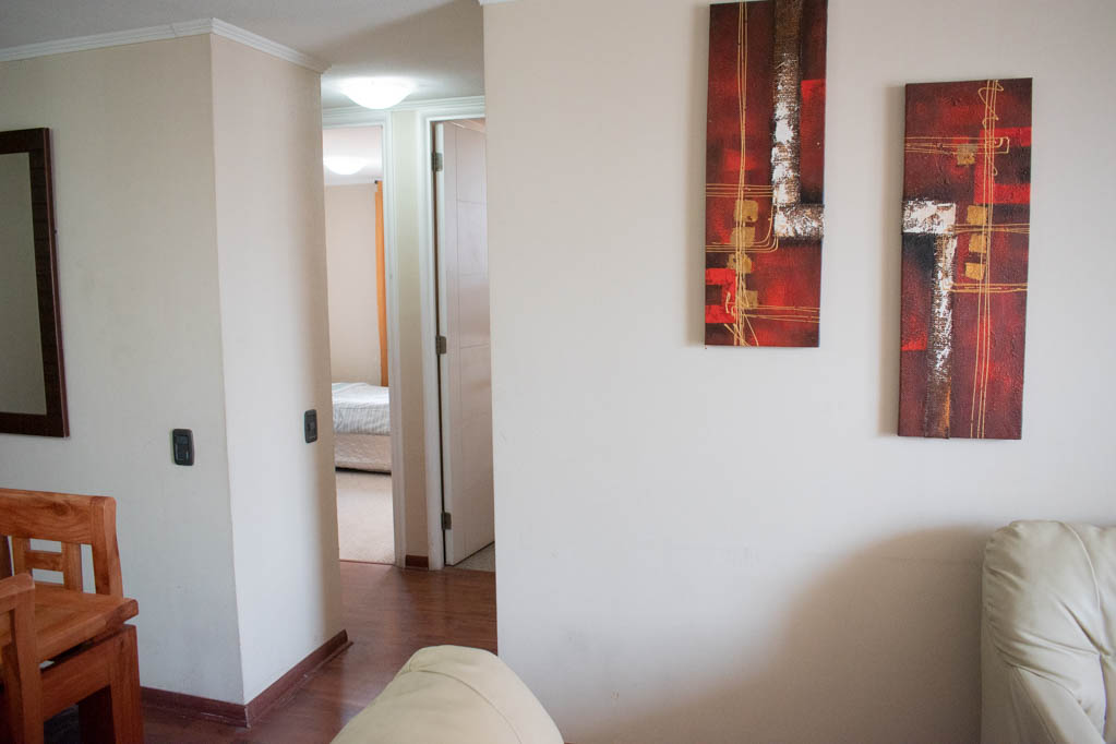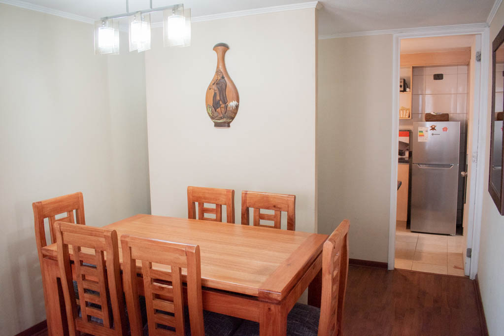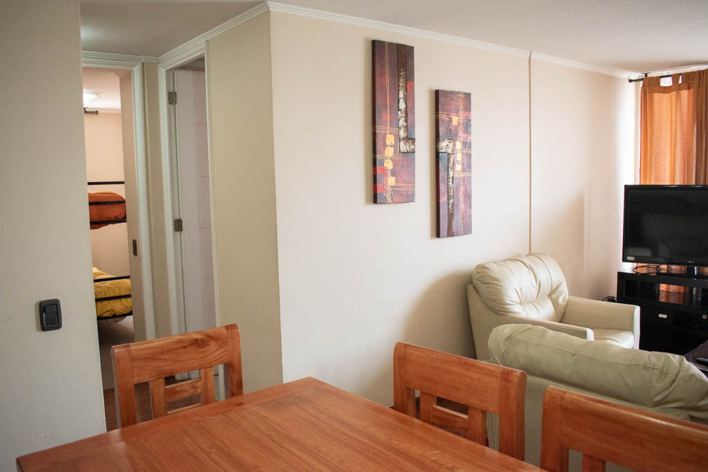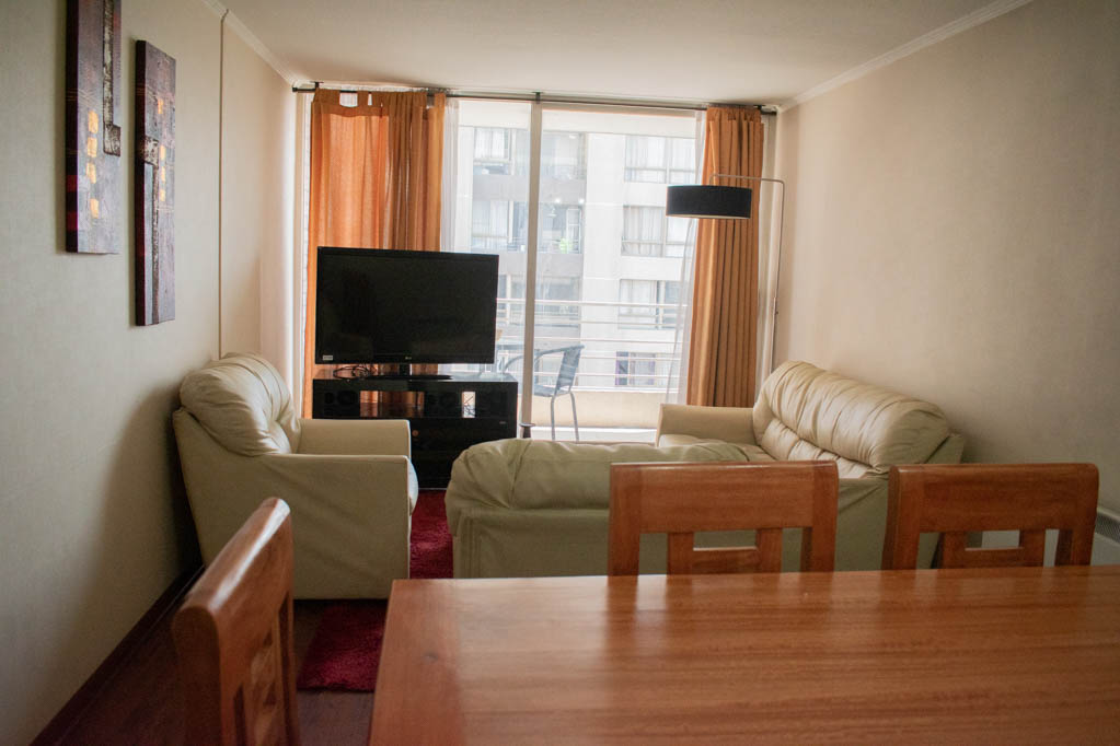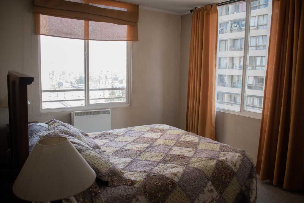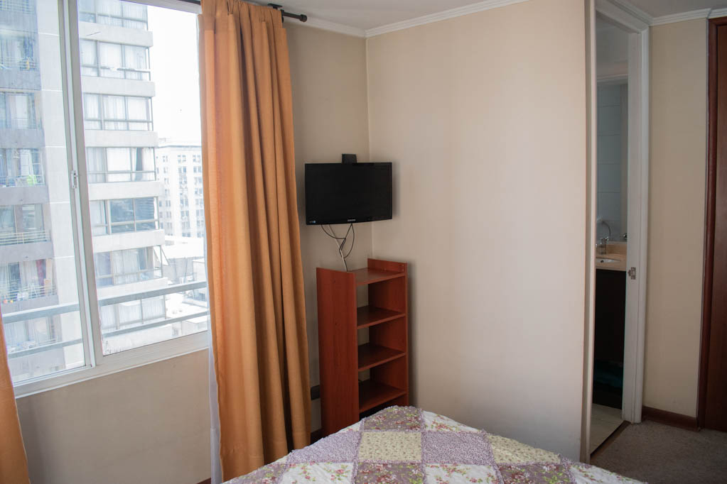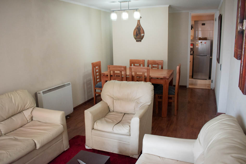 Departamento amoblado de 3 habitaciones ubicado a 1 minuto caminando de la parada de autobús y a 5 minutos caminando de la Estación de Metro La Moneda.El departamento tiene living, comedor, cocina (cerrada), 2 baños, terraza y comedor diario. La habitación 1 tiene cama matrimonial, clóset, 2 mesas de noche, televisor y baño en suite; La habitación 2 tiene litera y clóset; La habitación 3 tiene cama individual, clóset, mesa de noche, escritorio y silla; El lugar mide 72m² + 3m² de terraza aproximadamente. Los gastos de servicios de gastos comunes, agua caliente, agua fría, electricidad e internet se pagan por adelantado junto a la renta mensual, con un límite de consumo de $ 217USD. El alojamiento tiene lavandería compartida cuyo valor es $ 1USD aproximadamente por carga de ropa (lavado o secado). Se debe pagar garantía (depósito) la que será devuelta al finalizar el período de arriendo; además, se debe pagar $ 44USD al momento de devolver el alojamiento para realizar la limpieza del lugar. Cerca del alojamiento se encuentra la Avenida Bernardo O'Higgins (más conocida como Alameda), el Palacio de La Moneda y la Plaza de la Constitución, entre otras edificaciones de valor histórico y arquitectónico. También podrás encontrar, múltiples restoranes, bares, bancos y entidades gubernamentales.
