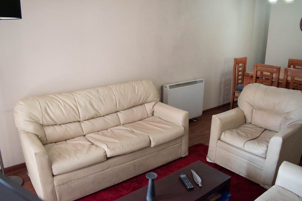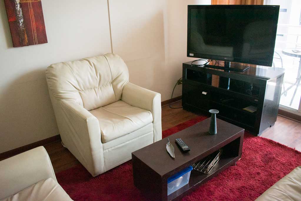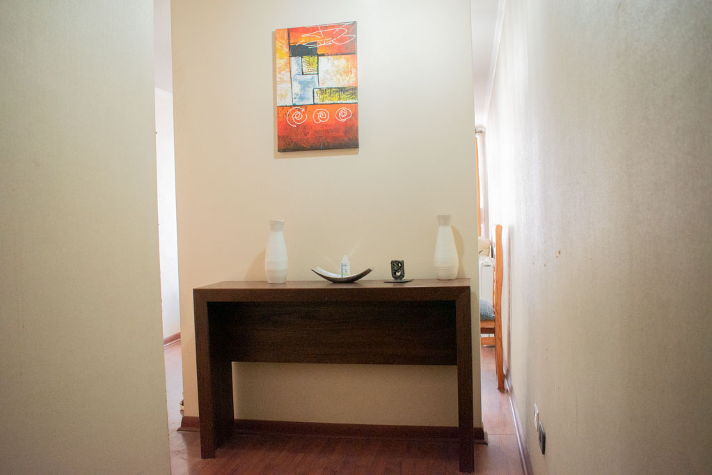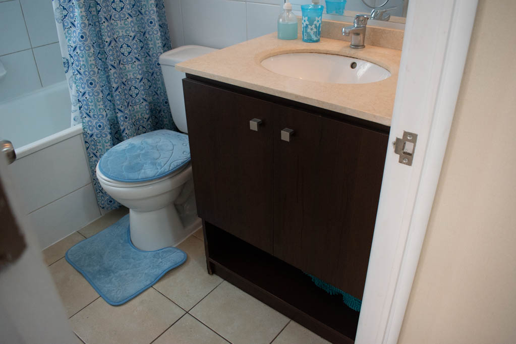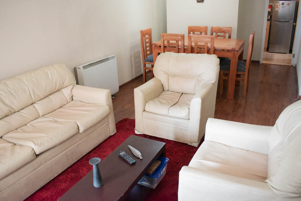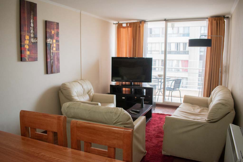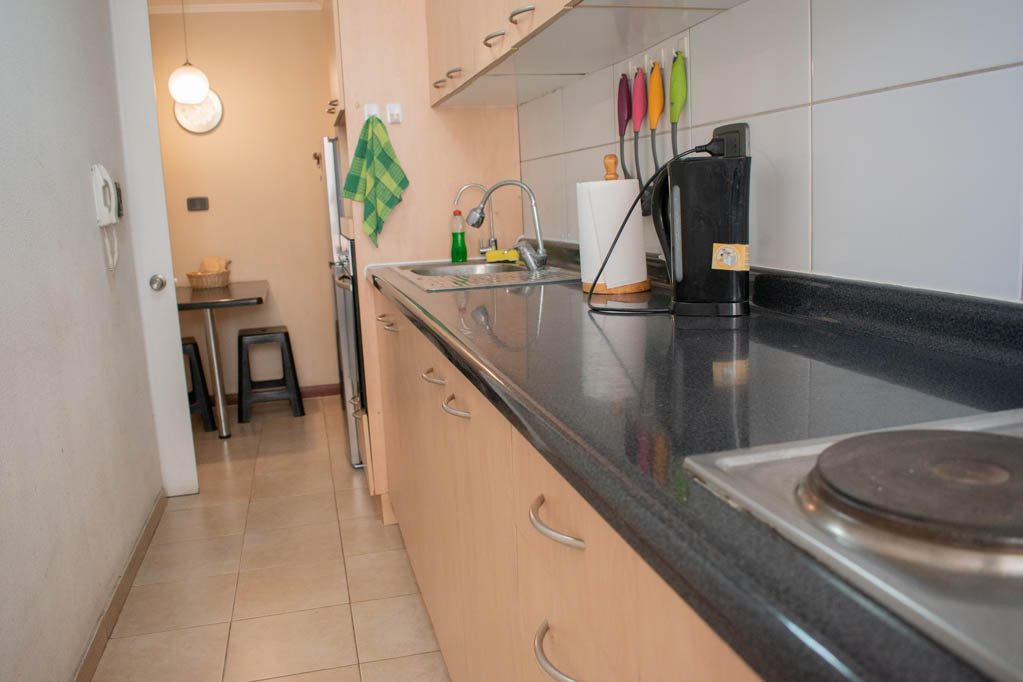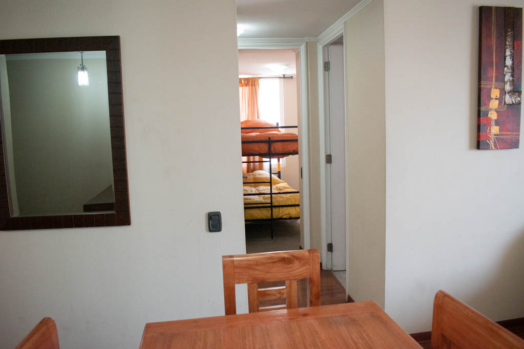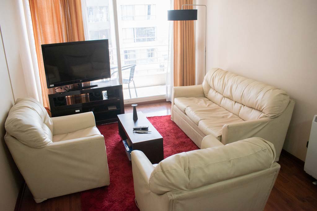 Departamento amoblado de 3 habitaciones ubicado a 1 minuto caminando de la parada de autobús y a 5 minutos caminando de la Estación de Metro La Moneda.El departamento tiene living, comedor, cocina (cerrada), 2 baños, terraza y comedor diario. La habitación 1 tiene cama matrimonial, clóset, 2 mesas de noche, televisor y baño en suite; La habitación 2 tiene litera y clóset; La habitación 3 tiene cama individual, clóset, mesa de noche, escritorio y silla; El lugar mide 72m² + 3m² de terraza aproximadamente. Los gastos de servicios de gastos comunes, agua caliente, agua fría, electricidad e internet se pagan por adelantado junto a la renta mensual, con un límite de consumo de $ 217USD. El alojamiento tiene lavandería compartida cuyo valor es $ 1USD aproximadamente por carga de ropa (lavado o secado). Se debe pagar garantía (depósito) la que será devuelta al finalizar el período de arriendo; además, se debe pagar $ 44USD al momento de devolver el alojamiento para realizar la limpieza del lugar. Cerca del alojamiento se encuentra la Avenida Bernardo O'Higgins (más conocida como Alameda), el Palacio de La Moneda y la Plaza de la Constitución, entre otras edificaciones de valor histórico y arquitectónico. También podrás encontrar, múltiples restoranes, bares, bancos y entidades gubernamentales.