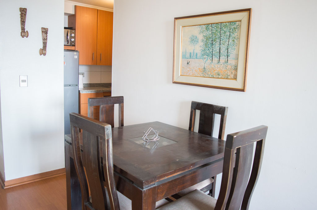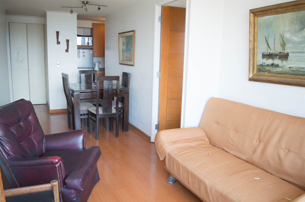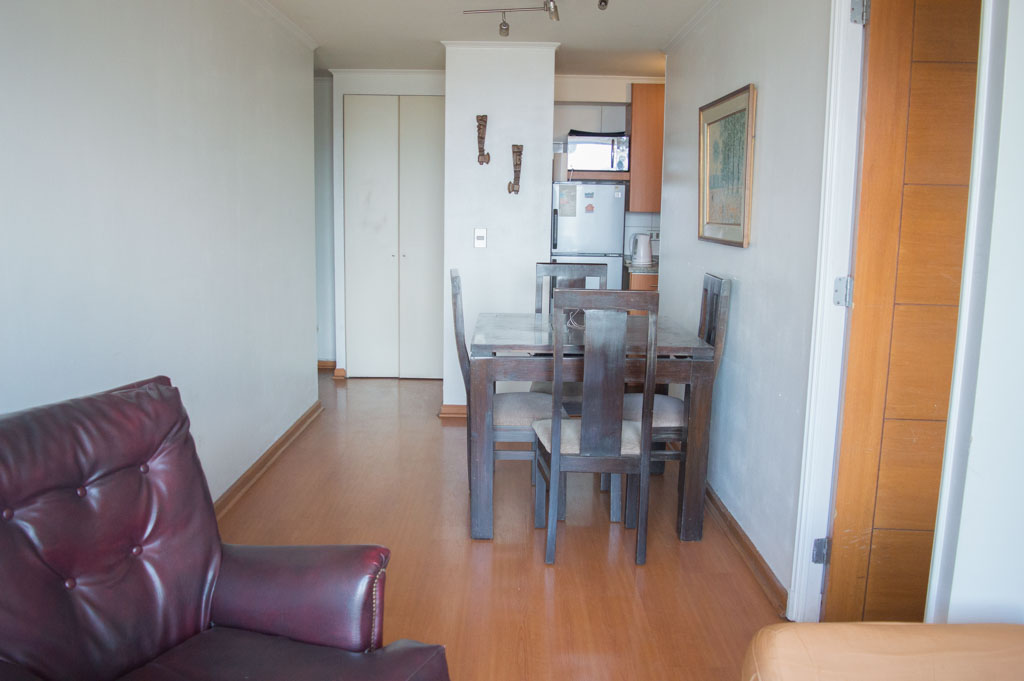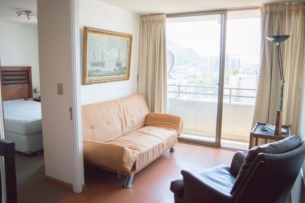 Departamento amoblado de 1 habitación ubicado a 7 minutos caminando de la parada de autobús y a 7 minutos caminando de la Estación de Metro Bellas Artes.El departamento tiene living, comedor, cocina (abierta), 1 baño y balcón. La habitación 1 tiene cama matrimonial, clóset, 2 mesas de noche, televisor y baño en suite; El lugar mide 38m² + 2m² de terraza aproximadamente. Los gastos de servicios de gastos comunes, agua caliente, agua fría, electricidad y gas se pagan por adelantado junto a la renta mensual, con un límite de consumo de $ 130USD. El alojamiento tiene lavandería compartida cuyo valor es $ 1USD aproximadamente por carga de ropa (lavado o secado). Se debe pagar garantía (depósito) la que será devuelta al finalizar el período de arriendo; además, se debe pagar $ 45USD al momento de devolver el alojamiento para realizar la limpieza del lugar. Cerca del alojamiento se encuentra el Barrio Lastarria y Barrio Bellas Artes (barrios históricos - culturales), caracterizados por sus casonas del siglo XIX restauradas y utilizadas como restaurantes, cafeterías, librerías, centros culturales, entre otros. A pasos podrás encontrar el Museo Nacional de Bellas Artes, donde se resguarda lo más valioso del arte nacional e internacional y el Parque Forestal, lugar ideal para compartir con amigos, practicar deportes y pasear.