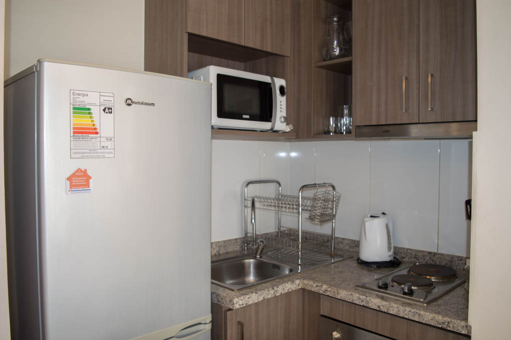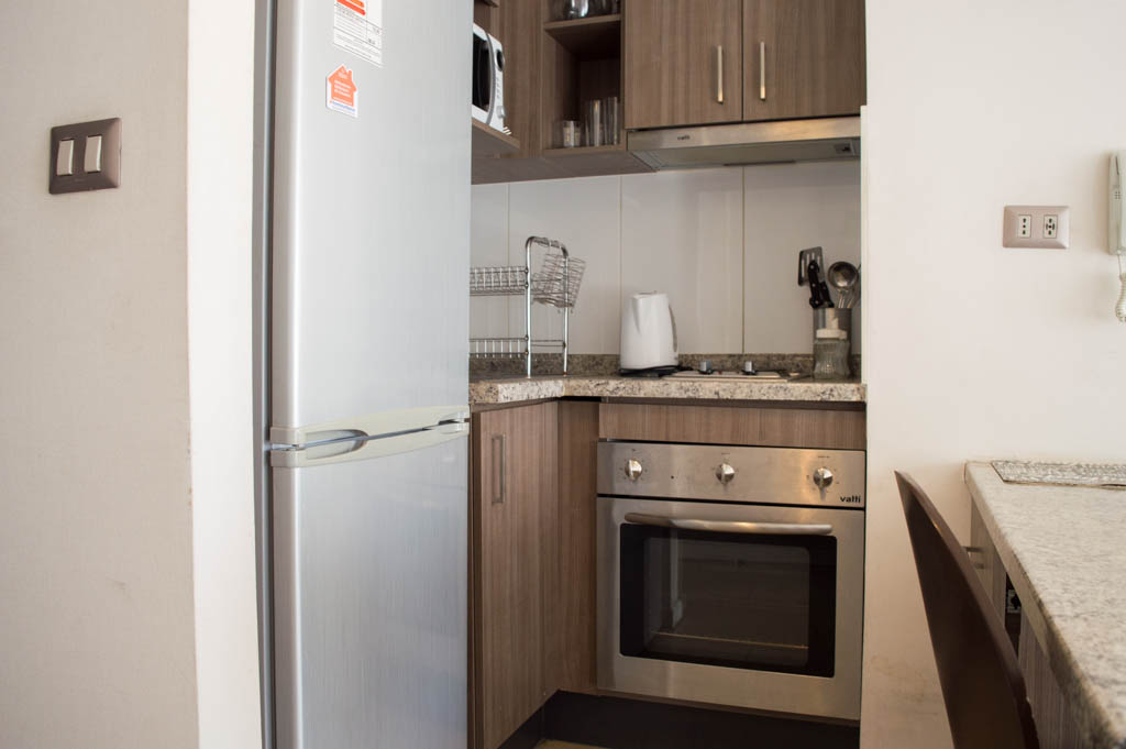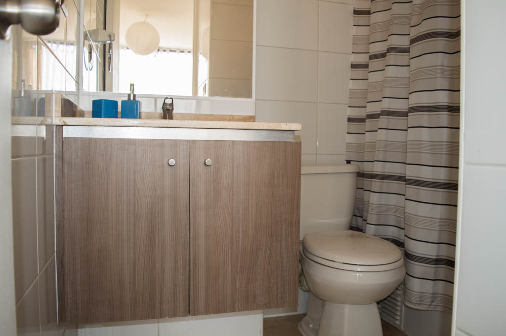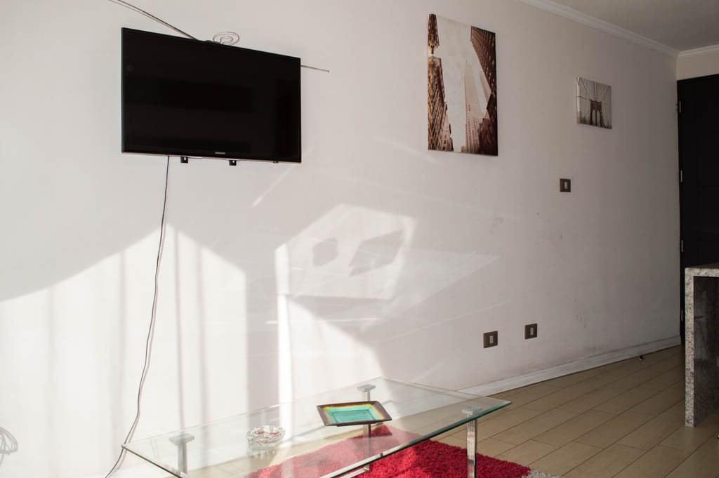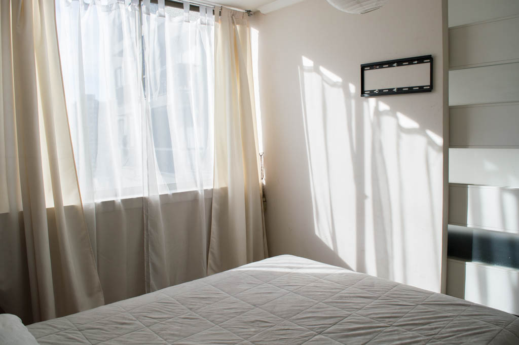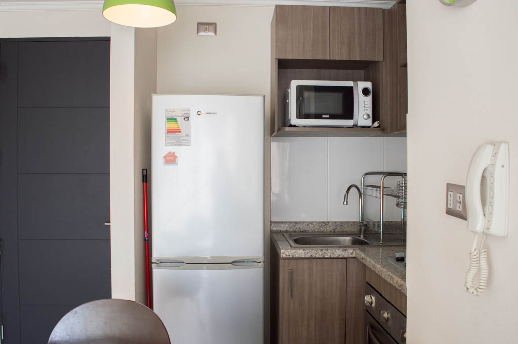 Departamento amoblado de 1 habitación ubicado a 10 minutos caminando de la parada de autobús y a 10 minutos caminando de la Estación de Metro Santa Lucía.El departamento tiene living, comedor, cocina (abierta), 1 baño y balcón. La habitación 1 tiene cama matrimonial, clóset, 2 mesas de noche y baño en suite; El lugar mide 32m² + 3m² de terraza aproximadamente. Se debe considerar el pago de gastos de servicios de gastos comunes, agua caliente, agua fría, electricidad y gas que suman $ 116USD aproximadamente. El alojamiento tiene lavandería compartida cuyo valor es $ 1USD aproximadamente por carga de ropa (lavado o secado). Se debe pagar garantía (depósito) la que será devuelta al finalizar el período de arriendo; además, se debe pagar $ 40USD al momento de devolver el alojamiento para realizar la limpieza del lugar. Cerca del alojamiento se encuentra la Biblioteca Nacional, Teatro Municipal de Santiago, Cine Arte, ferias artesanales, centros culturales y el Cerro Santa Lucía, importante foco de turismo y paseos dominicales por los atractivos que presenta, como fuentes de agua, terrazas y miradores donde puedes disfrutar de una vista privilegiada de Santiago.