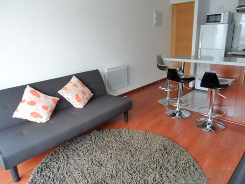 Departamento amoblado de 1 habitación ubicado a 5 minutos caminando de la parada de autobús y a 5 minutos caminando de la Estación de Metro Universidad de Chile.El departamento tiene living, cocina (abierta) y 1 baño. La habitación 1 tiene cama matrimonial, clóset, 2 mesas de noche y baño en suite; El lugar mide 35m² + 3m² de terraza aproximadamente Se debe considerar el pago de gastos de servicios de gastos comunes, agua caliente, agua fría, electricidad, internet y TV cable que suman $ 100USD aproximadamente. El alojamiento tiene lavandería compartida cuyo valor es $ 1USD aproximadamente por carga de ropa (lavado o secado). Se debe pagar garantía (depósito) la que será devuelta al finalizar el período de arriendo; además, se debe pagar $ 17USD al momento de devolver el alojamiento para realizar la limpieza del lugar. Cerca del alojamiento se encuentra la Avenida Bernardo O'Higgins (más conocida como Alameda) donde hay diversos locales comerciales, gran variedad de transporte público y el centro cívico de Santiago. A pasos del metro se encuentra el emblemático Instituto Nacional José Miguel Carrera, la Universidad de Chile y el Teatro Municipal de Santiago.