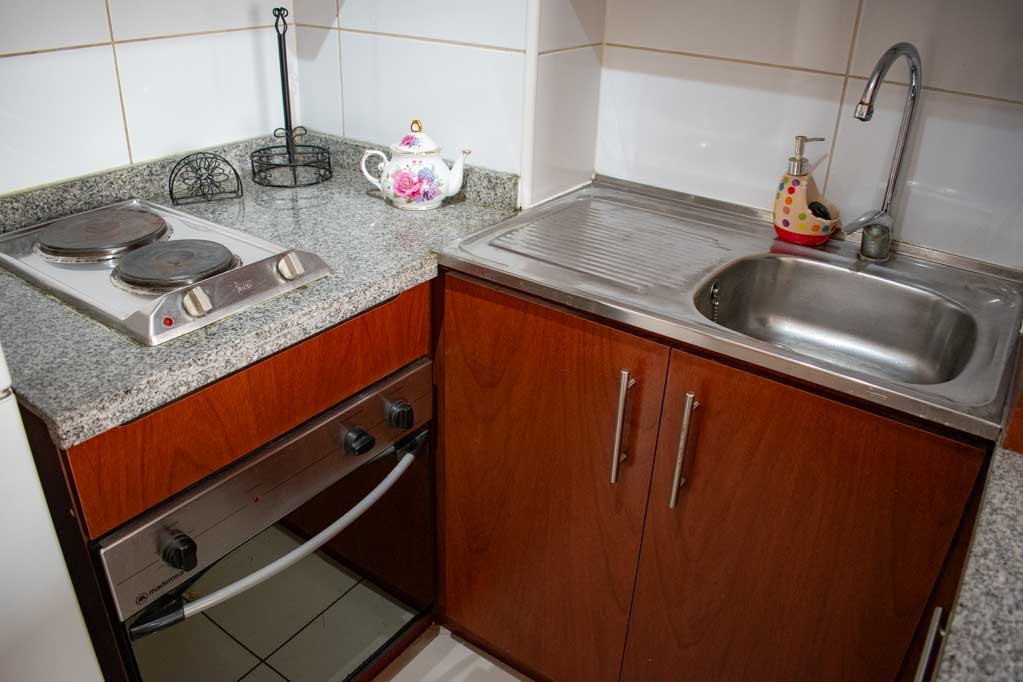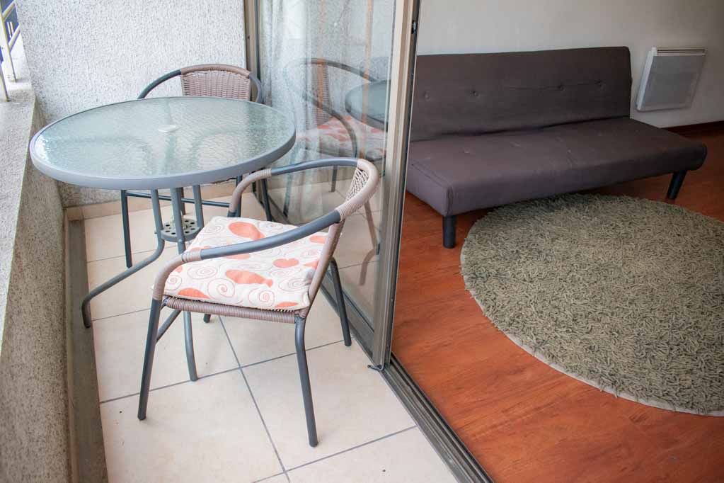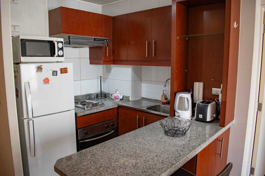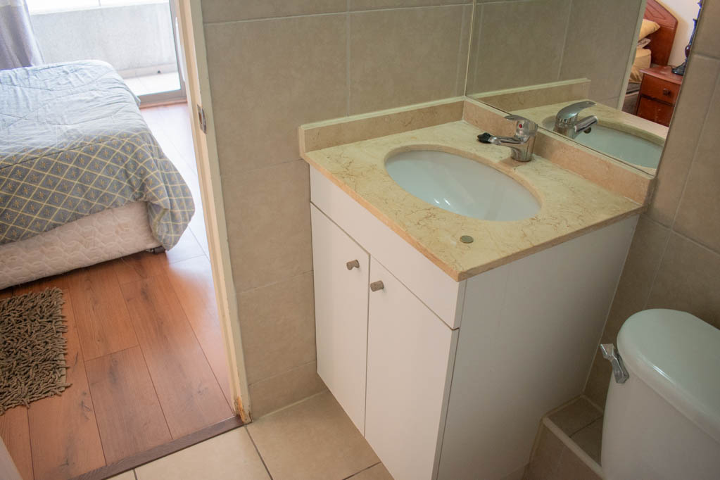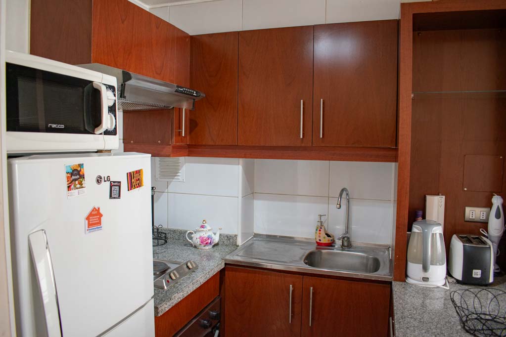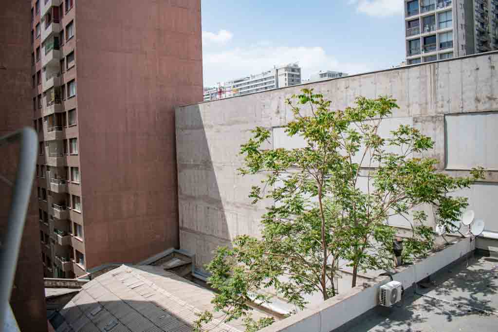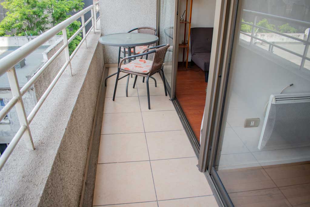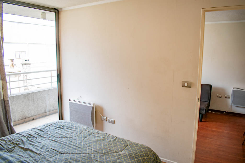 Departamento amoblado de 1 habitación ubicado a 5 minutos caminando de la parada de autobús y a 5 minutos caminando de la Estación de Metro Universidad de Chile.El departamento tiene living, comedor, cocina (abierta), 1 baño y balcón. La habitación 1 tiene cama matrimonial, walk-in clóset, 2 mesas de noche y baño en suite; El lugar mide 35m² + 3m² de terraza aproximadamente. Se debe considerar el pago de gastos de servicios de gastos comunes, agua caliente, agua fría, electricidad, internet y TV cable que suman $ 141USD aproximadamente. El alojamiento tiene lavandería compartida cuyo valor es $ 2USD aproximadamente por carga de ropa (lavado o secado). Se debe pagar garantía (depósito) la que será devuelta al finalizar el período de arriendo; además, se debe pagar $ 23USD al momento de devolver el alojamiento para realizar la limpieza del lugar. Cerca del alojamiento se encuentra la Avenida Bernardo O'Higgins (más conocida como Alameda) donde hay diversos locales comerciales, gran variedad de transporte público y el centro cívico de Santiago. A pasos del metro se encuentra el emblemático Instituto Nacional José Miguel Carrera, la Universidad de Chile y el Teatro Municipal de Santiago.
