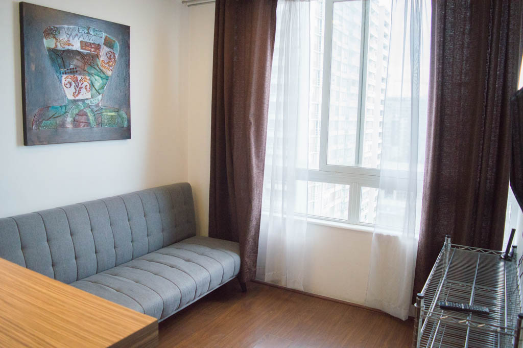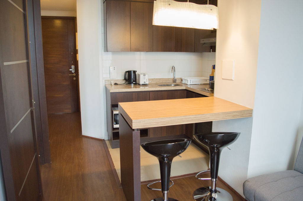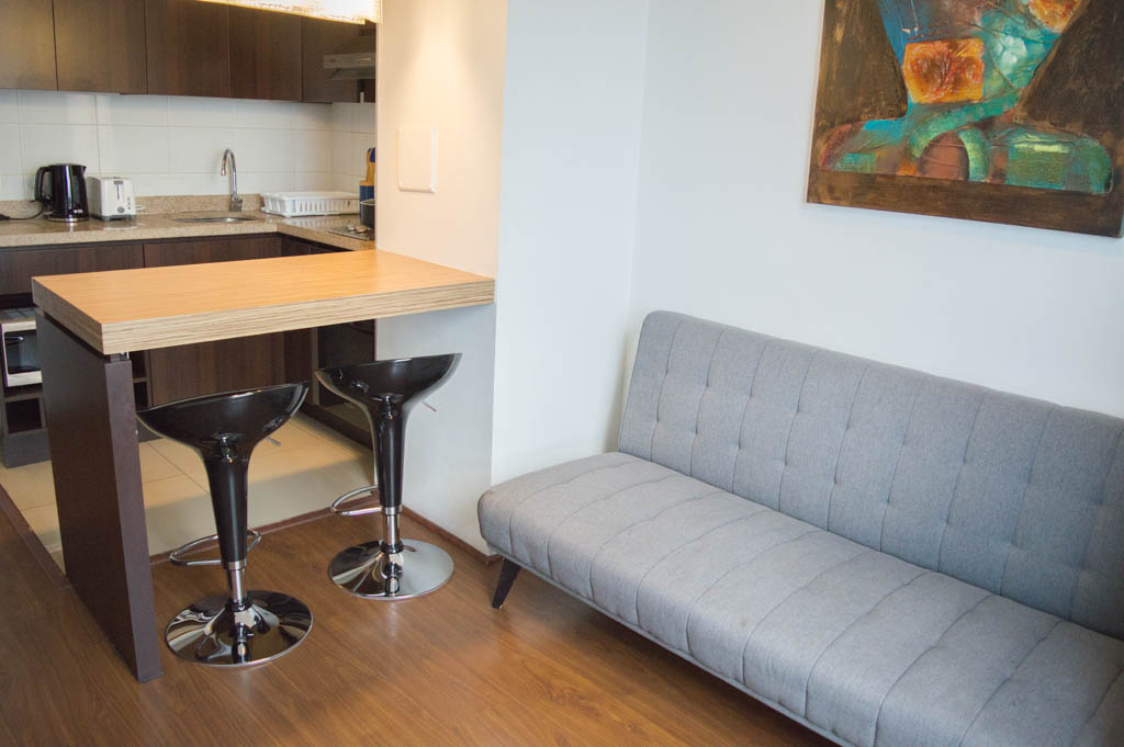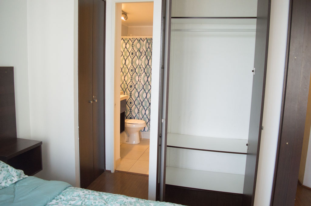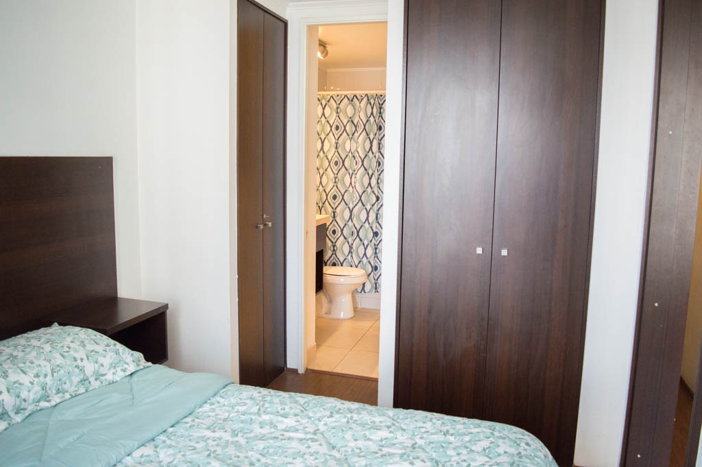 Departamento amoblado de 1 habitación ubicado a 2 minutos caminando de la parada de autobús y a 6 minutos caminando de la Estación de Metro Irarrázaval.El departamento tiene living, comedor, cocina (abierta), 1 baño y terraza. La habitación 1 tiene cama matrimonial, clóset, 2 mesas de noche y baño en suite; El lugar mide 30m² + 2m² de terraza aproximadamente. Se debe considerar el pago de gastos de servicios de gastos comunes, agua caliente, agua fría y electricidad que suman $ 92USD aproximadamente. El alojamiento tiene lavandería compartida cuyo valor es $ 2USD aproximadamente por carga de ropa (lavado o secado). Se debe pagar garantía (depósito) la que será devuelta al finalizar el período de arriendo; además, se debe pagar $ 32USD al momento de devolver el alojamiento para realizar la limpieza del lugar. Cerca del alojamiento se encuentra la Avenida Irarrázaval, una de las arterias principales de Santiago, caracterizada por sus diversos locales comerciales, supermercados, restaurantes, pubs y discotecas. Además posee variados medios de transporte público a distintos puntos de la ciudad.
