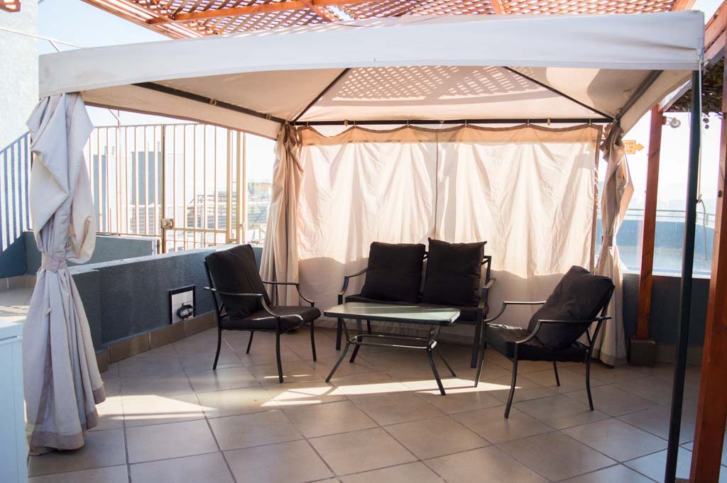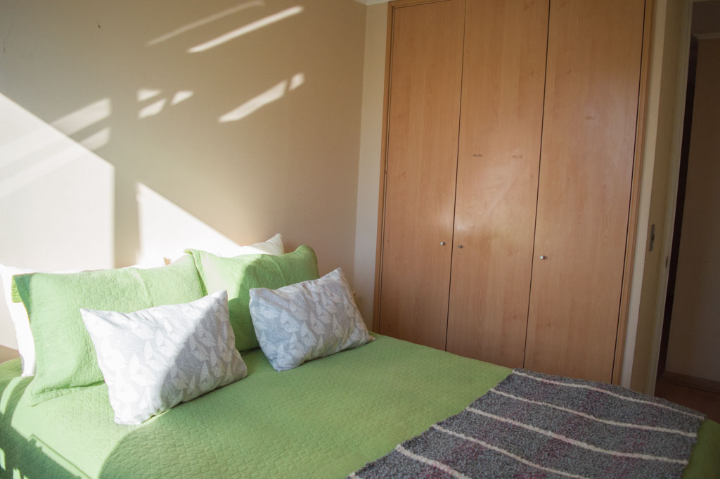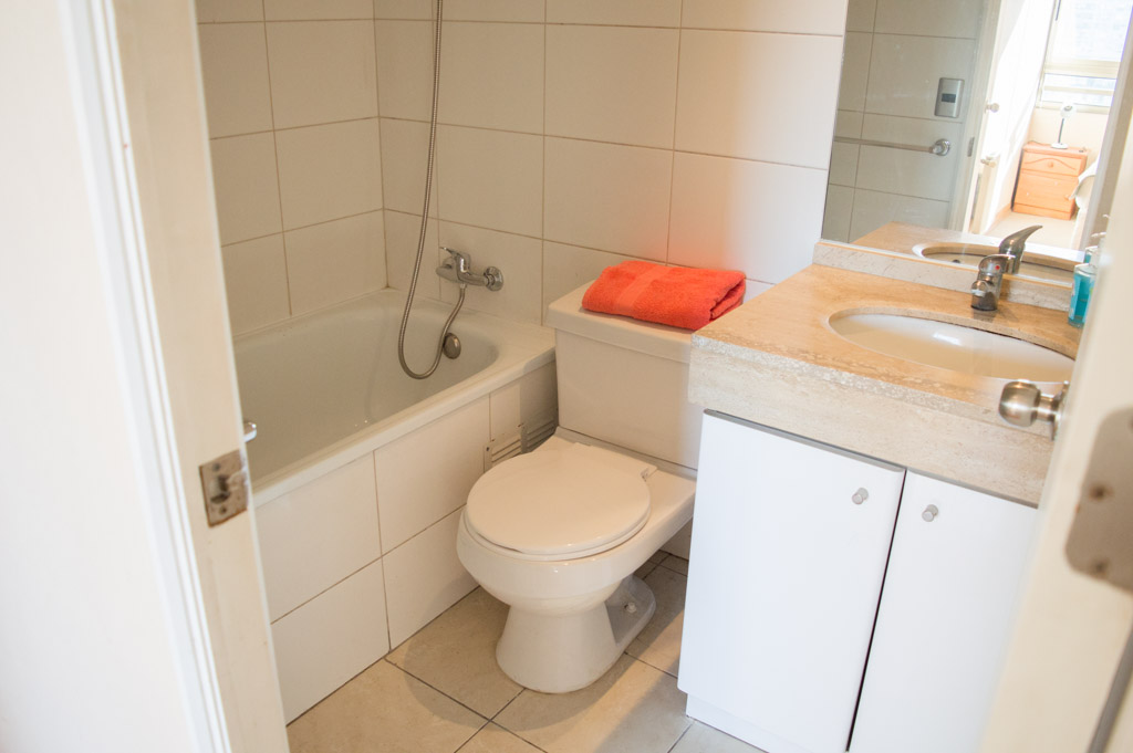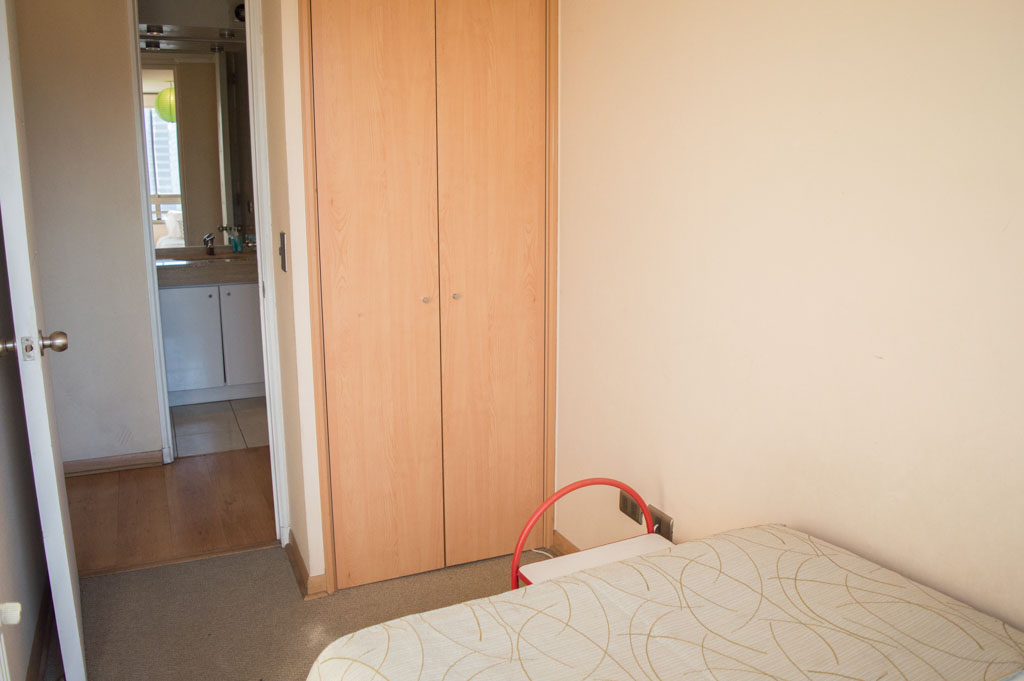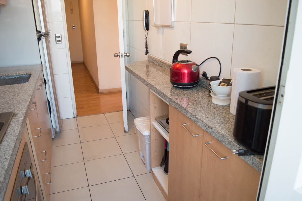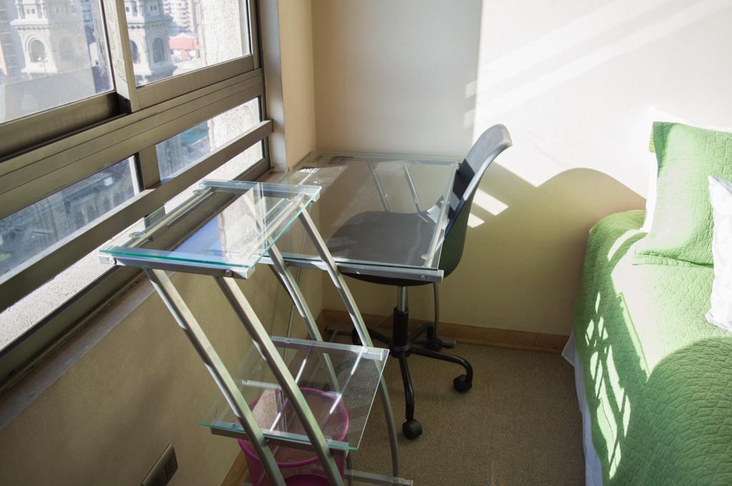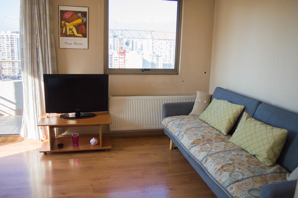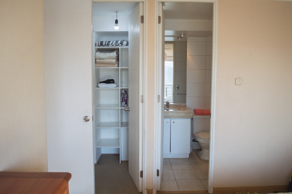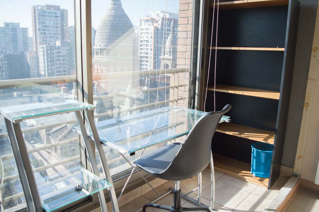 Departamento amoblado de 3 habitaciones ubicado a 2 minutos caminando de la parada de autobús y a 1 minuto caminando de la Estación de Metro Parque Almagro.El departamento tiene living, comedor, cocina (cerrada), 2 baños y terraza. La habitación 1 tiene cama matrimonial, walk-in clóset, 2 mesas de noche, escritorio y baño en suite; La habitación 2 tiene cama matrimonial, clóset, mesa de noche y escritorio; La habitación 3 tiene cama individual, clóset y mesa de noche; El lugar mide 83m² + 3m² de terraza aproximadamente. Los gastos de servicios de gastos comunes, agua caliente, agua fría, electricidad, gas e internet se pagan por adelantado junto a la renta mensual, con un límite de consumo de $ 250USD. El alojamiento tiene lavandería compartida cuyo valor es $ 2USD aproximadamente por carga de ropa (lavado o secado). Se debe pagar garantía (depósito) la que será devuelta al finalizar el período de arriendo; además, se debe pagar $ 46USD al momento de devolver el alojamiento para realizar la limpieza del lugar. Cerca del alojamiento se encuentra la Avenida Bernardo O'Higgins (más conocida como Alameda) donde hay diversos locales comerciales, gran variedad de transporte público y el centro cívico de Santiago. A pasos del metro se encuentra el emblemático Instituto Nacional José Miguel Carrera, la Universidad de Chile y el Teatro Municipal de Santiago.