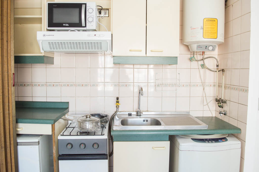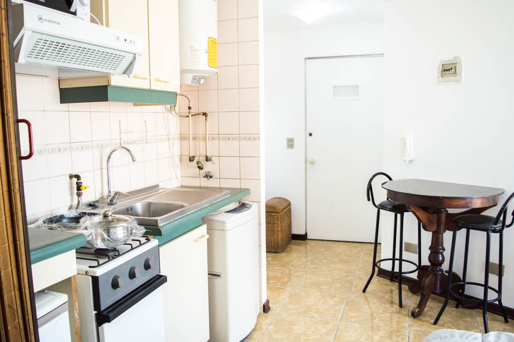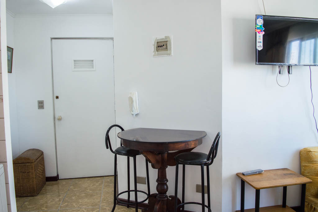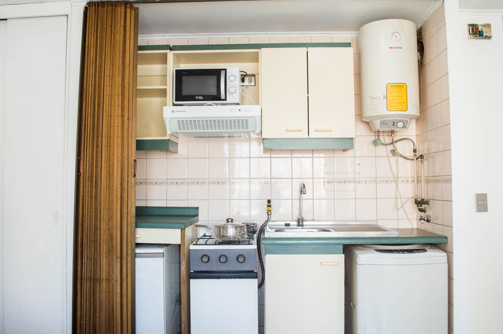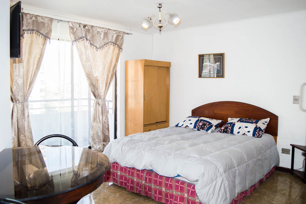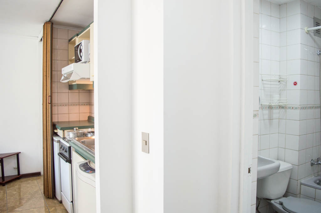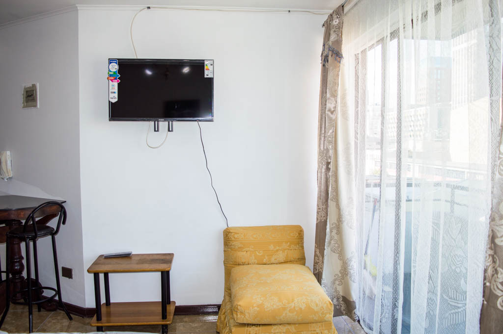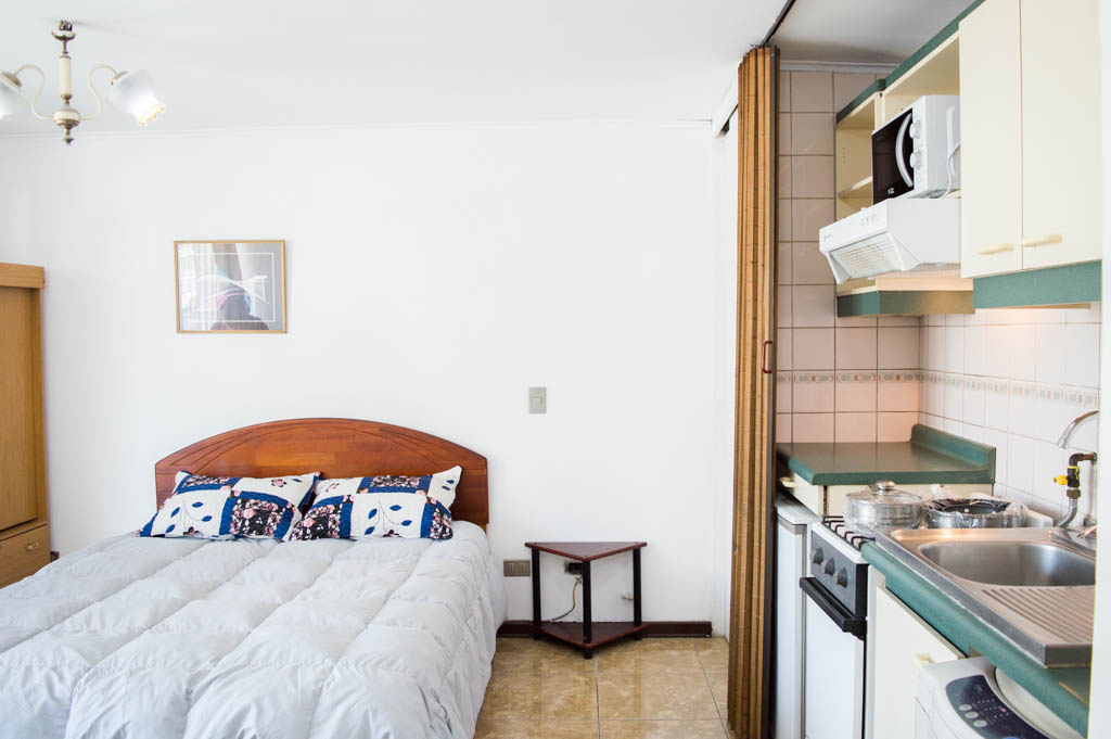 Departamento amoblado de un ambiente (studio) ubicado a 3 minutos caminando de la parada de autobús y a 3 minutos caminando de la Estación de Metro Santa Ana.El departamento tiene comedor, cocina (abierta) y 1 baño. La habitación 1 tiene cama matrimonial, clóset, mesa de noche y televisor; El lugar mide 23m² + 3m² de terraza aproximadamente. Se debe considerar el pago de gastos de servicios de gastos comunes, agua caliente, agua fría, electricidad y gas que suman $ 87USD aproximadamente. Se debe pagar garantía (depósito) la que será devuelta al finalizar el período de arriendo; además, se debe pagar $ 23USD al momento de devolver el alojamiento para realizar la limpieza del lugar. Cerca del alojamiento se encuentra los emblemáticos liceo 1 Javiera Carrera y Liceo Aplicación, además de la iglesia Parroquial de Santa Ana, monumento nacional. A pasos podrás encontrar la plaza de Armas de Santiago, parte importante del casco histórico de Santiago, reconocido por su arquitectura e infraestructuras, tales como el Correo de Santiago, Catedral de Santiago, Municipalidad y la Casa Colorada.