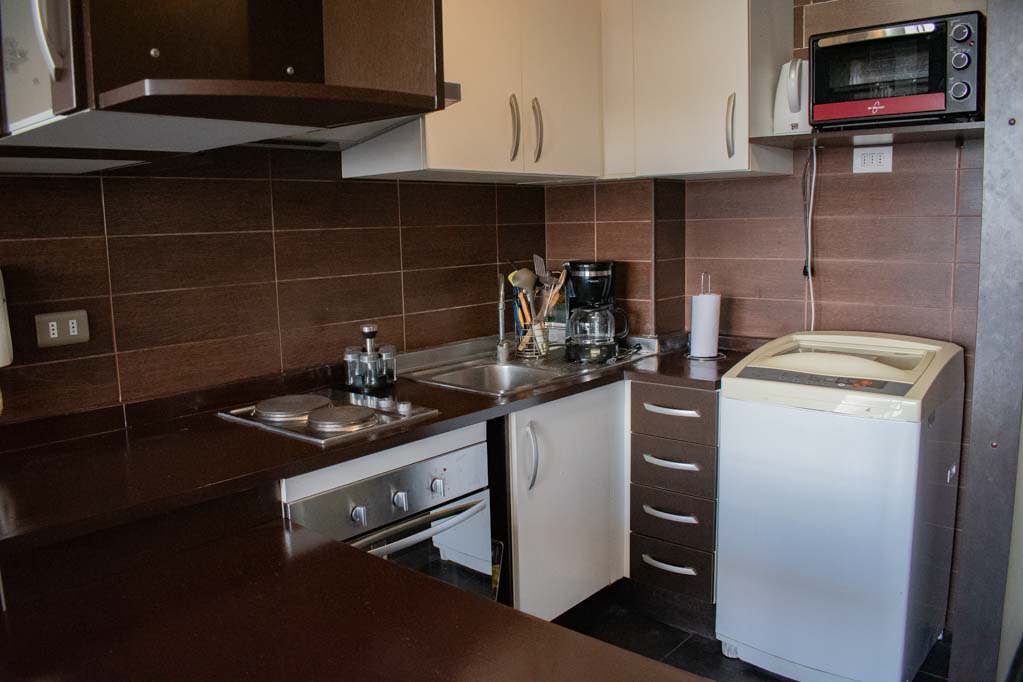 Departamento amoblado de 1 habitación ubicado a 4 minutos caminando de la parada de autobús y a 10 minutos caminando de la Estación de Metro Santa Isabel.El departamento tiene living, comedor, cocina (abierta), 1 baño y balcón. La habitación 1 tiene cama matrimonial, 2 clósets, 2 mesas de noche, televisor y baño en suite; El lugar mide 37m² + 3m² de terraza aproximadamente. Los gastos de servicios de gastos comunes, agua caliente, agua fría y electricidad se pagan por adelantado junto a la renta mensual, con un límite de consumo de $ 125USD. El alojamiento tiene lavandería compartida cuyo valor es $ 1USD aproximadamente por carga de ropa (lavado o secado). Se debe pagar garantía (depósito) la que será devuelta al finalizar el período de arriendo; además, se debe pagar $ 43USD al momento de devolver el alojamiento para realizar la limpieza del lugar. Cerca del alojamiento se encuentra los emblemáticos Liceo Arturo Alessandri Palma y el Liceo Carmela Carvajal de Prat; ubicados en el barrio Santa Isabel el cual ha crecido exponencialmente con los años debido al gran desarrollo inmobiliario lo que ha permitido la generación de áreas verdes y espacios deportivos. En el mismo sector se encuentra el barrio Italia donde se han instalado diversos artistas, diseñadores, maestros de la gastronomía, pequeños comercios, e incluso talleres mecánicos.