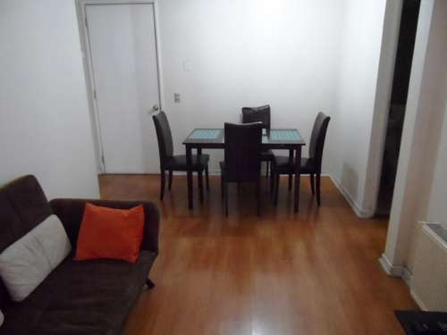 Departamento amoblado de 2 habitaciones ubicado a 2 minutos caminando de la parada de autobús y a 5 minutos caminando de la Estación de Metro Plaza de Armas.El departamento tiene living, comedor, cocina (cerrada), 2 baños y balcón. La habitación 1 tiene cama matrimonial, clóset, mesa de noche y baño en suite; La habitación 2 tiene cama individual y clóset; El lugar mide 55m² + 3m² de terraza aproximadamente Se debe considerar el pago de gastos de servicios de gastos comunes, agua caliente, agua fría, electricidad y gas que suman $ 132USD aproximadamente. El alojamiento tiene lavandería compartida cuyo valor es $ 1USD aproximadamente por carga de ropa (lavado o secado). Se debe pagar garantía (depósito) la que será devuelta al finalizar el período de arriendo; además, se debe pagar $ 28USD al momento de devolver el alojamiento para realizar la limpieza del lugar. Cerca del alojamiento se encuentra la Plaza de Armas de Santiago, parte importante del casco histórico de la ciudad, reconocida por su arquitectura e infraestructuras, tales como el Correo de Santiago, Catedral de Santiago, Municipalidad y la Casa Colorada. Este lugar, tiene buen acceso y conectividad con varios puntos de la ciudad. El sector se caracteriza por concentrar variadas instituciones de servicios públicos y privados.