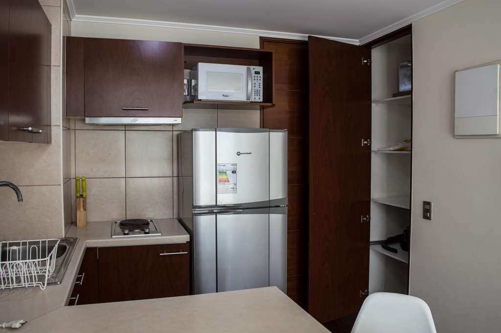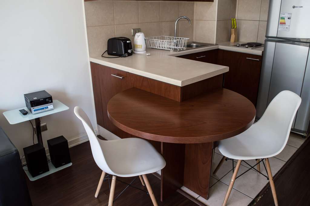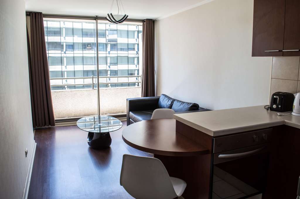Departamento amoblado de 1 habitación ubicado a 6 minutos caminando de la parada de autobús y a 8 minutos caminando de la Estación de Metro Santa Ana.El departamento tiene living, comedor, cocina (abierta), 1 baño y balcón. La habitación 1 tiene cama matrimonial, walk-in clóset, 2 mesas de noche, televisor y baño en suite; El lugar mide 33m² + 6m² de terraza aproximadamente. Los gastos de servicios de gastos comunes, agua caliente, agua fría y electricidad se pagan por adelantado junto a la renta mensual, con un límite de consumo de $ 101USD. El alojamiento tiene lavandería compartida cuyo valor es $ 1USD aproximadamente por carga de ropa (lavado o secado). Se debe pagar garantía (depósito) la que será devuelta al finalizar el período de arriendo; además, se debe pagar $ 34USD al momento de devolver el alojamiento para realizar la limpieza del lugar. Cerca del alojamiento se encuentra los emblemáticos liceo 1 Javiera Carrera y Liceo Aplicación, además de la iglesia Parroquial de Santa Ana, monumento nacional. A pasos podrás encontrar la plaza de Armas de Santiago, parte importante del casco histórico de Santiago, reconocido por su arquitectura e infraestructuras, tales como el Correo de Santiago, Catedral de Santiago, Municipalidad y la Casa Colorada.