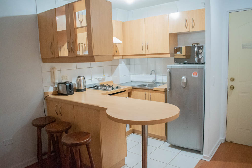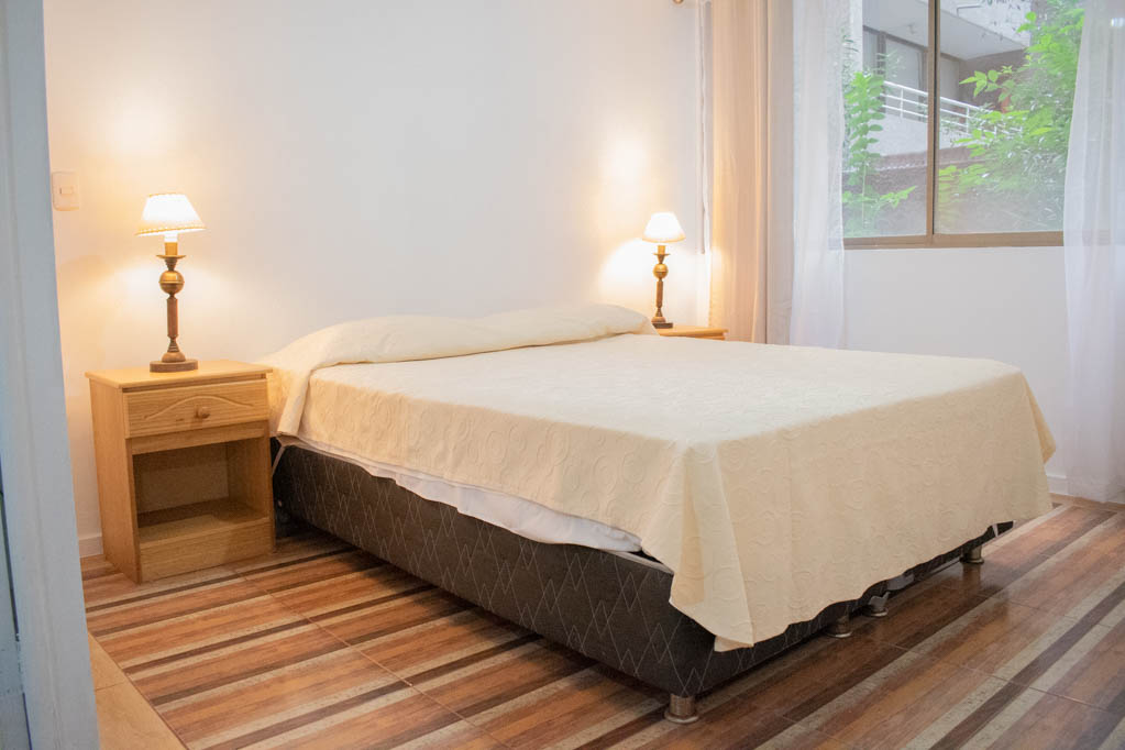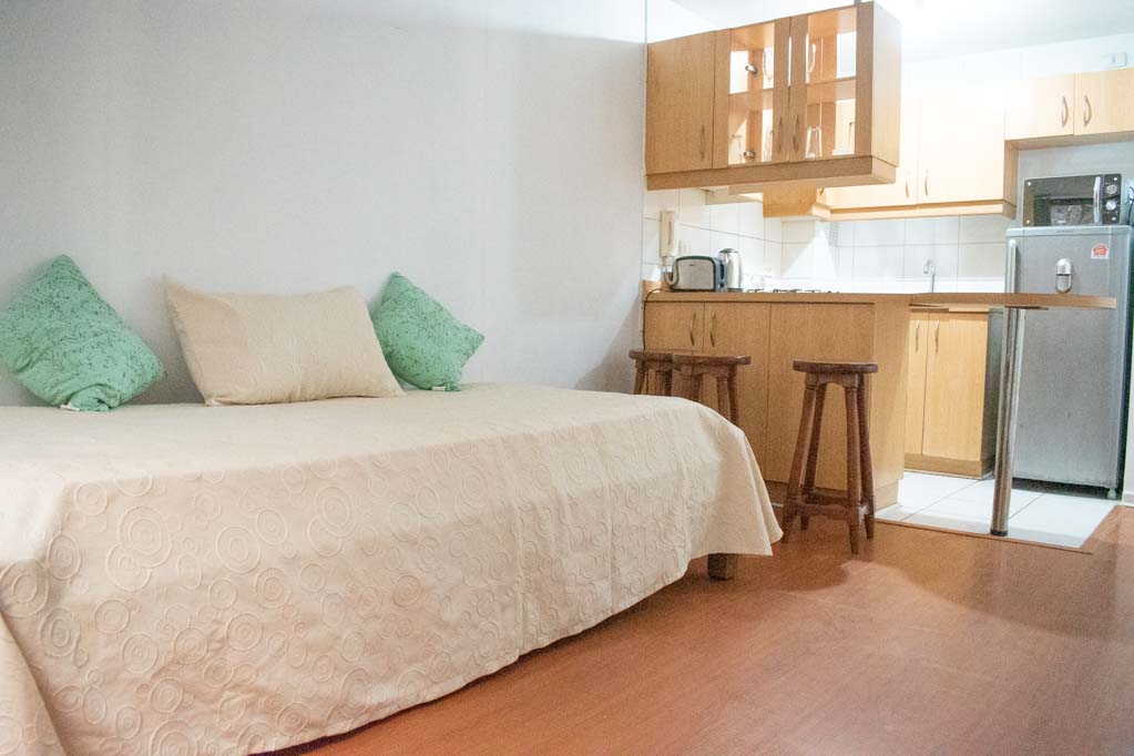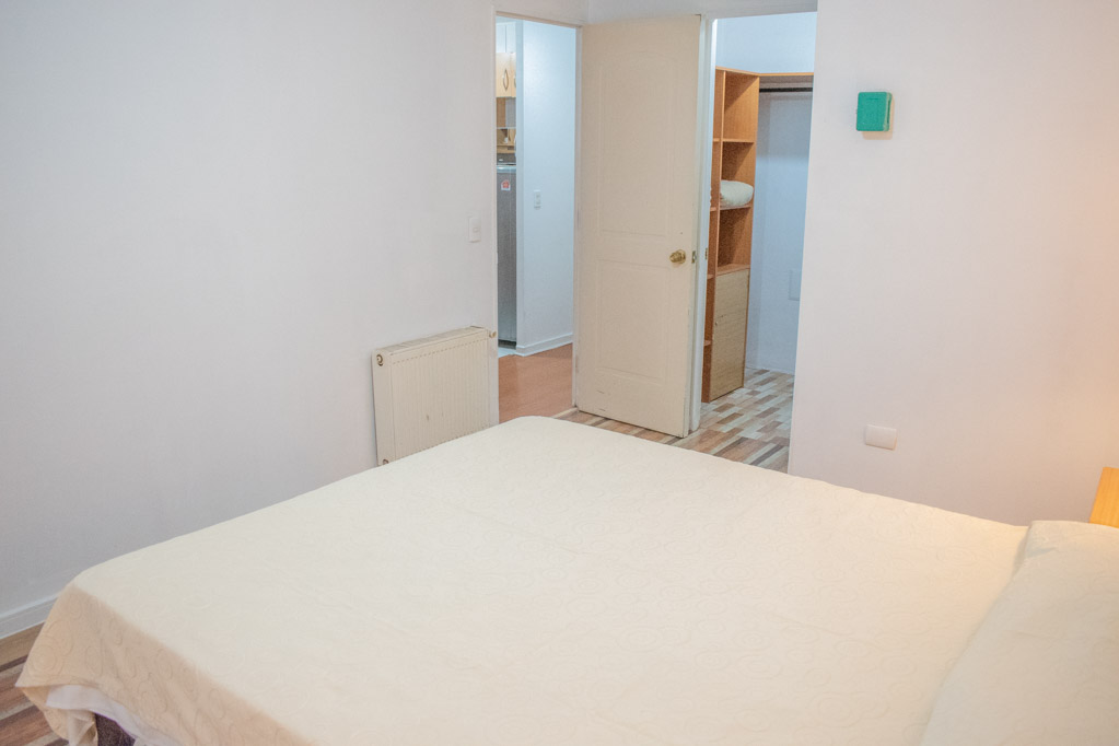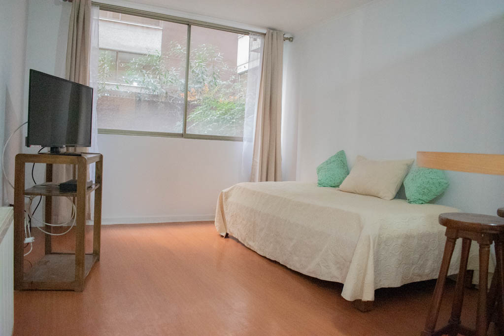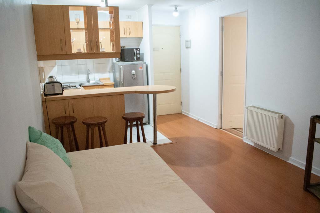 Departamento amoblado de 1 habitación ubicado a 2 minutos caminando de la parada de autobús y a 4 minutos caminando de la Estación de Metro Universidad de Chile.El departamento tiene living, comedor, cocina (abierta) y 1 baño. La habitación 1 tiene cama matrimonial, walk-in clóset, 2 mesas de noche y baño en suite; El lugar mide 34m² aproximadamente. Los gastos de servicios de gastos comunes, agua caliente, agua fría, electricidad, gas e internet se pagan por adelantado junto a la renta mensual, con un límite de consumo de $ 153USD. El alojamiento tiene lavandería compartida cuyo valor es $ 1USD aproximadamente por carga de ropa (lavado o secado). Se debe pagar garantía (depósito) la que será devuelta al finalizar el período de arriendo; además, se debe pagar $ 38USD al momento de devolver el alojamiento para realizar la limpieza del lugar. Cerca del alojamiento se encuentra la Avenida Bernardo O'Higgins (más conocida como Alameda) donde hay diversos locales comerciales, gran variedad de transporte público y el centro cívico de Santiago. A pasos del metro se encuentra el emblemático Instituto Nacional José Miguel Carrera, la Universidad de Chile y el Teatro Municipal de Santiago.