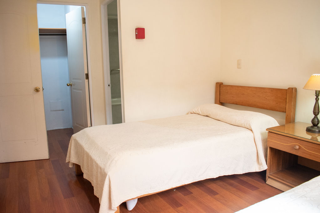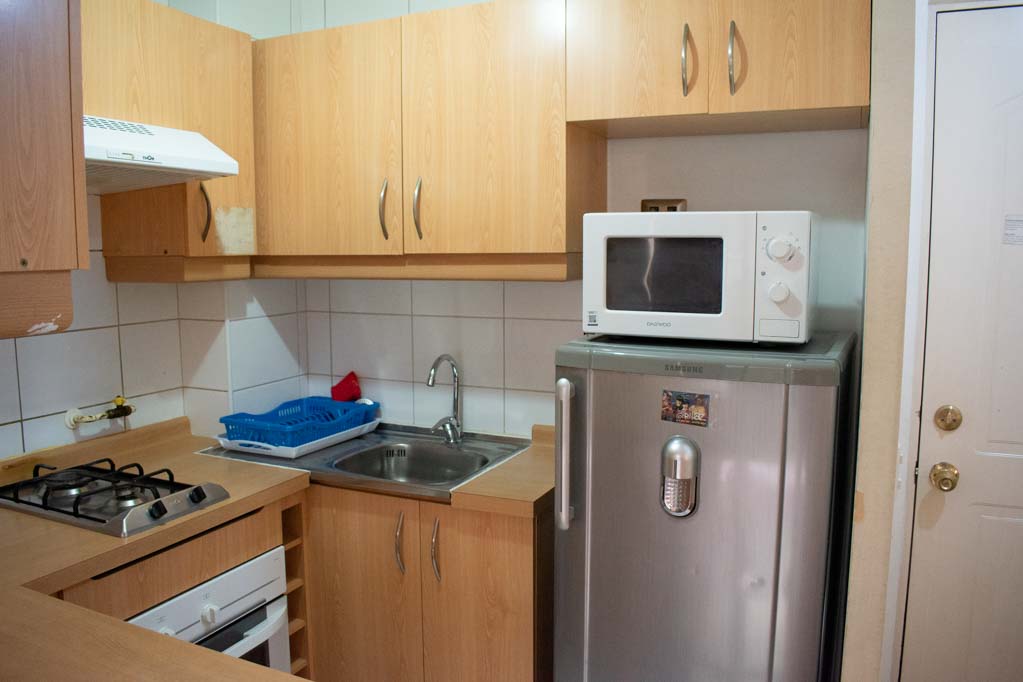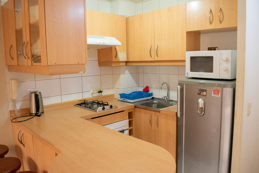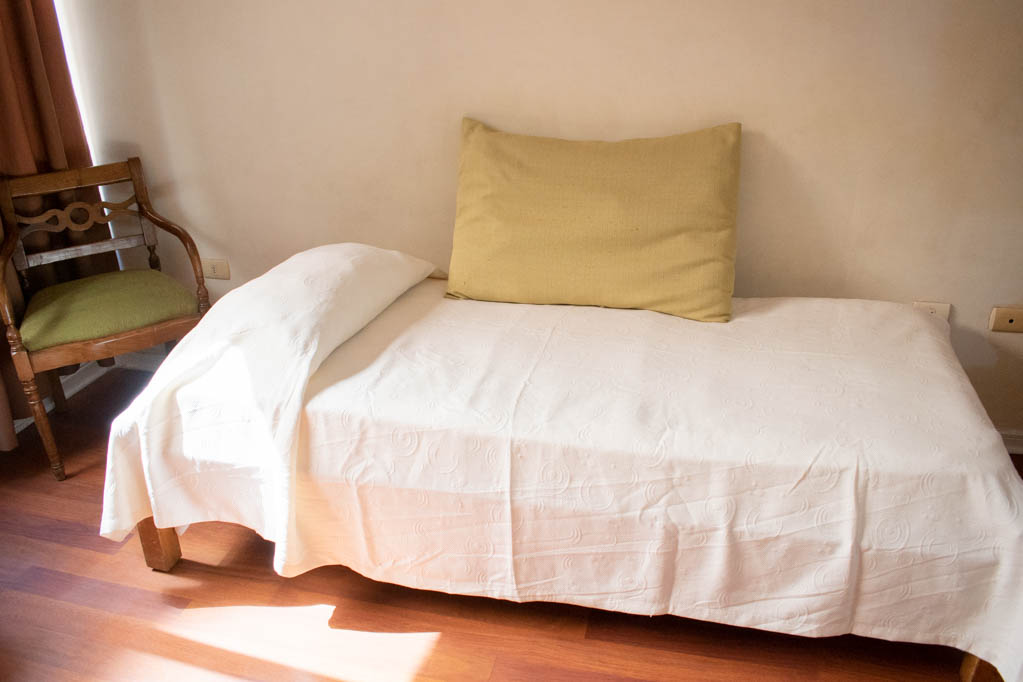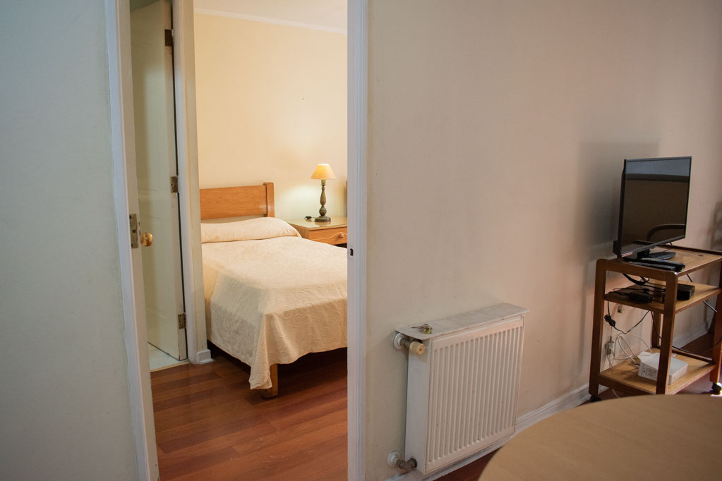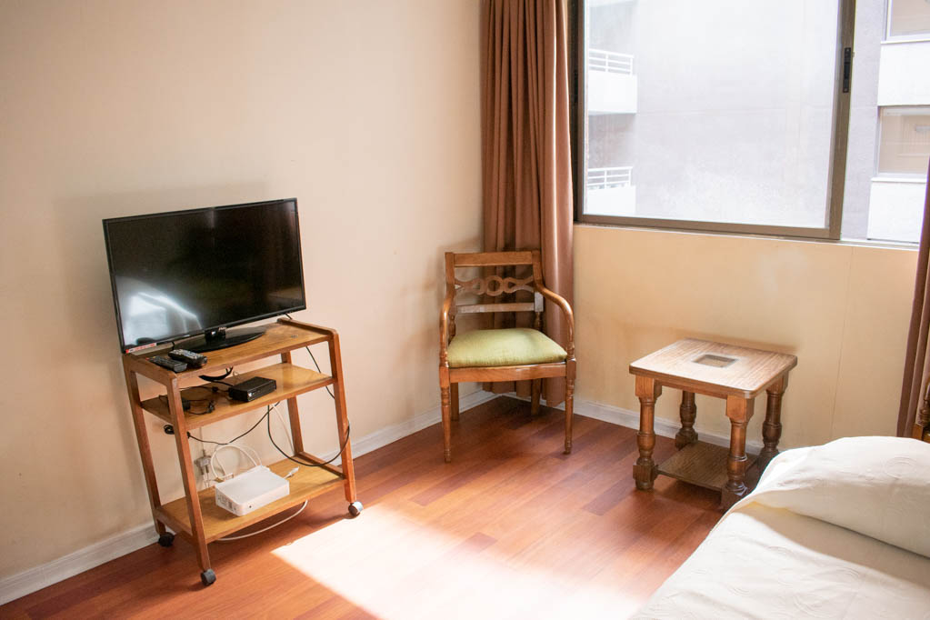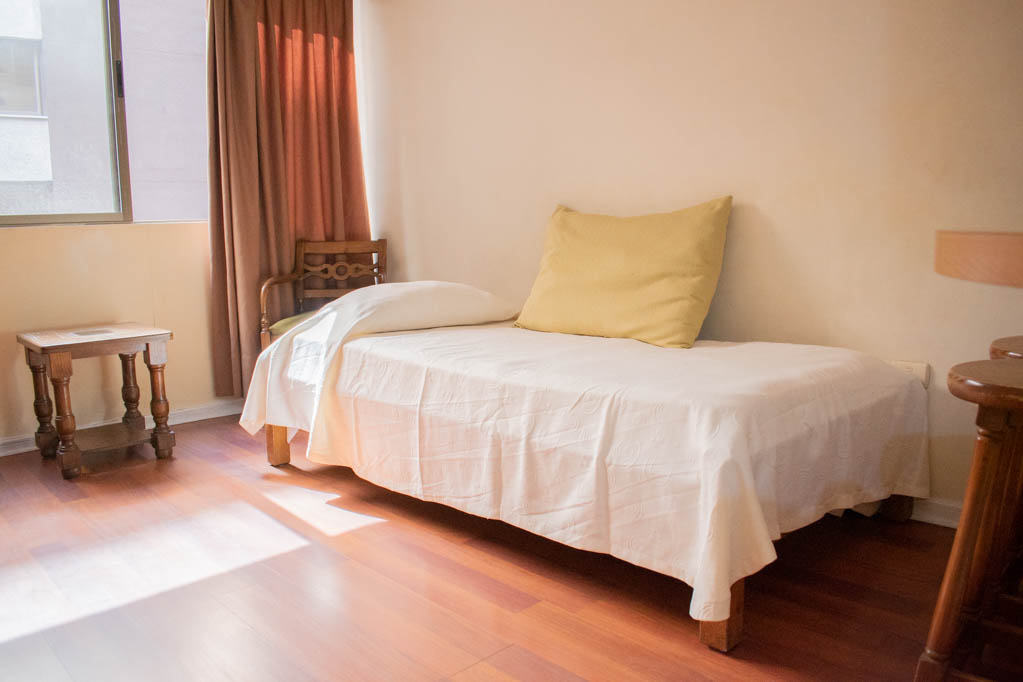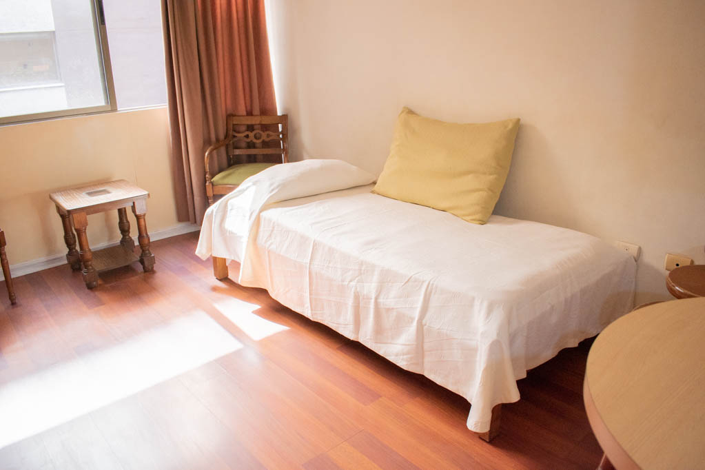 Departamento amoblado de 1 habitación ubicado a 2 minutos caminando de la parada de autobús y a 5 minutos caminando de la Estación de Metro Universidad de Chile.El departamento tiene living, comedor, cocina (abierta) y 1 baño. La habitación 1 tiene 2 camas individuales, walk-in clóset, mesa de noche y baño en suite; El lugar mide 34m² aproximadamente. Los gastos de servicios de gastos comunes, agua caliente, agua fría, electricidad, gas e internet se pagan por adelantado junto a la renta mensual, con un límite de consumo de $ 156USD. El alojamiento tiene lavandería compartida cuyo valor es $ 1USD aproximadamente por carga de ropa (lavado o secado). Se debe pagar garantía (depósito) la que será devuelta al finalizar el período de arriendo; además, se debe pagar $ 39USD al momento de devolver el alojamiento para realizar la limpieza del lugar. Cerca del alojamiento se encuentra la Avenida Bernardo O'Higgins (más conocida como Alameda) donde hay diversos locales comerciales, gran variedad de transporte público y el centro cívico de Santiago. A pasos del metro se encuentra el emblemático Instituto Nacional José Miguel Carrera, la Universidad de Chile y el Teatro Municipal de Santiago.
