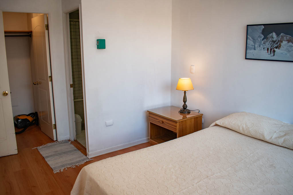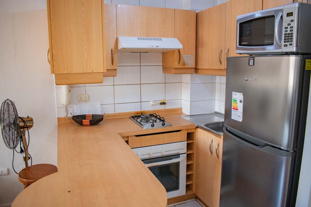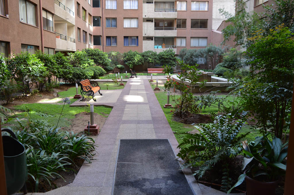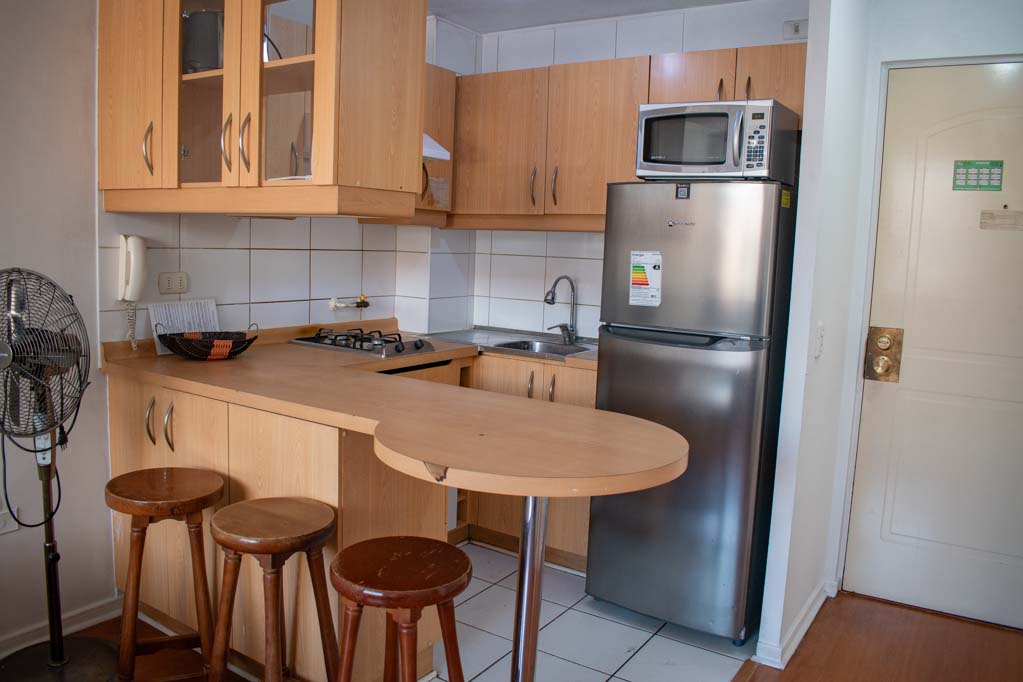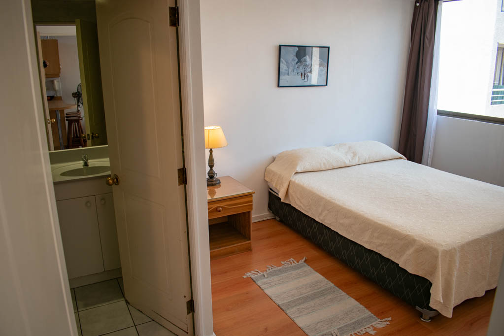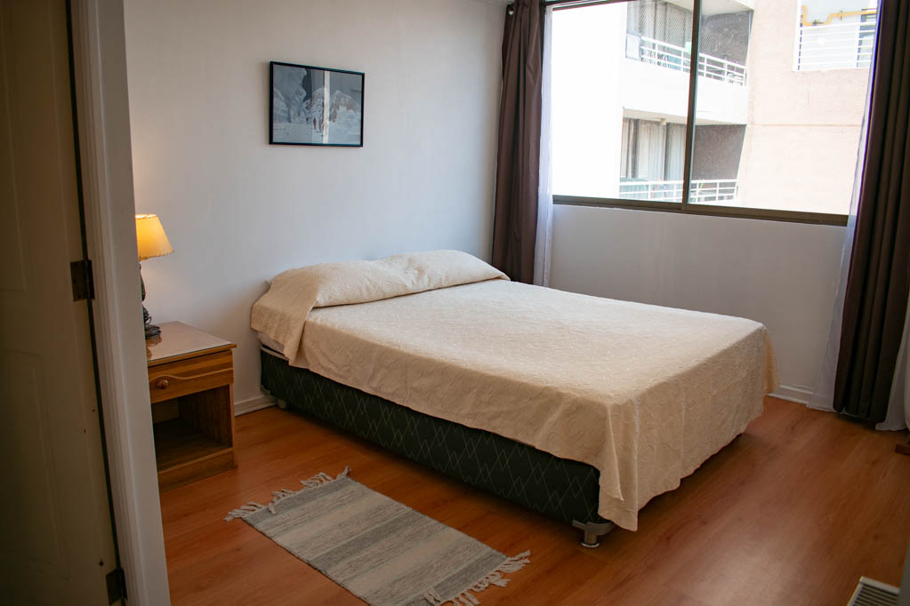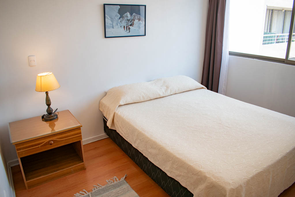 Departamento amoblado de 1 habitación ubicado a 2 minutos caminando de la parada de autobús y a 5 minutos caminando de la Estación de Metro Universidad de Chile.El departamento tiene living, comedor, cocina (abierta) y 1 baño. La habitación 1 tiene cama matrimonial, walk-in clóset, mesa de noche y baño en suite; El lugar mide 34m² aproximadamente. Los gastos de servicios de gastos comunes, agua caliente, agua fría, electricidad, gas e internet se pagan por adelantado junto a la renta mensual, con un límite de consumo de $ 154USD. El alojamiento tiene lavandería compartida cuyo valor es $ 1USD aproximadamente por carga de ropa (lavado o secado). Se debe pagar garantía (depósito) la que será devuelta al finalizar el período de arriendo; además, se debe pagar $ 39USD al momento de devolver el alojamiento para realizar la limpieza del lugar. Cerca del alojamiento se encuentra la Avenida Bernardo O'Higgins (más conocida como Alameda) donde hay diversos locales comerciales, gran variedad de transporte público y el centro cívico de Santiago. A pasos del metro se encuentra el emblemático Instituto Nacional José Miguel Carrera, la Universidad de Chile y el Teatro Municipal de Santiago.