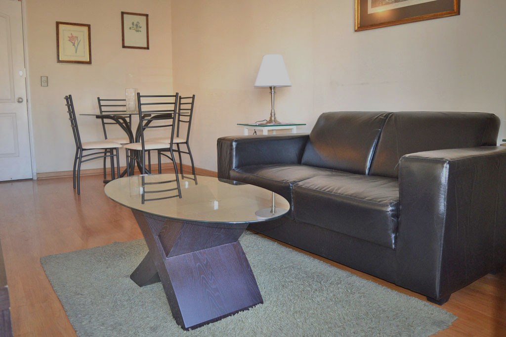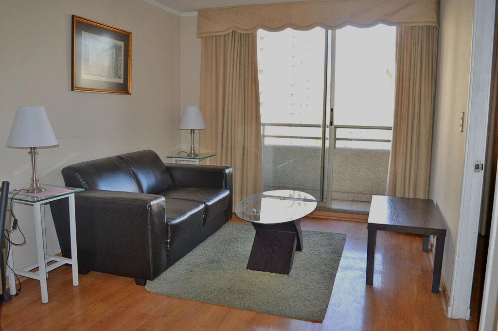 Departamento amoblado de 1 habitación ubicado a 7 minutos caminando de la parada de autobús y a 7 minutos caminando de la Estación de Metro Universidad Católica.El departamento tiene living, comedor, cocina (abierta), 1 baño y balcón. La habitación 1 tiene cama matrimonial, clóset, 2 mesas de noche y baño en suite; El lugar mide 30m² + 3m² de terraza aproximadamente Se debe considerar el pago de gastos de servicios de gastos comunes, agua fría, electricidad y gas que suman $ 61USD aproximadamente. El alojamiento tiene lavandería compartida cuyo valor es $ 1USD aproximadamente por carga de ropa (lavado o secado). Se debe pagar garantía (depósito) la que será devuelta al finalizar el período de arriendo; además, se debe pagar $ 27USD al momento de devolver el alojamiento para realizar la limpieza del lugar. Cerca del alojamiento se encuentra la Facultad de Arquitectura de la Universidad de Chile y la Casa Central de la Universidad Católica. En la Avenida Bernardo O'Higgins (más conocida como Alameda) es posible encontrar gran variedad de locales comerciales, bancos, cines, restaurantes y medios de transporte público. En sus proximidades, también podrás disfrutar del Barrio Lastarria conocido por sus diversos bares, cafés, restaurantes y centros culturales como el GAM.