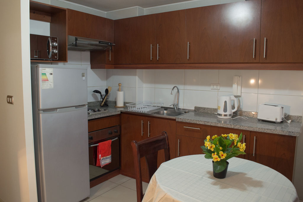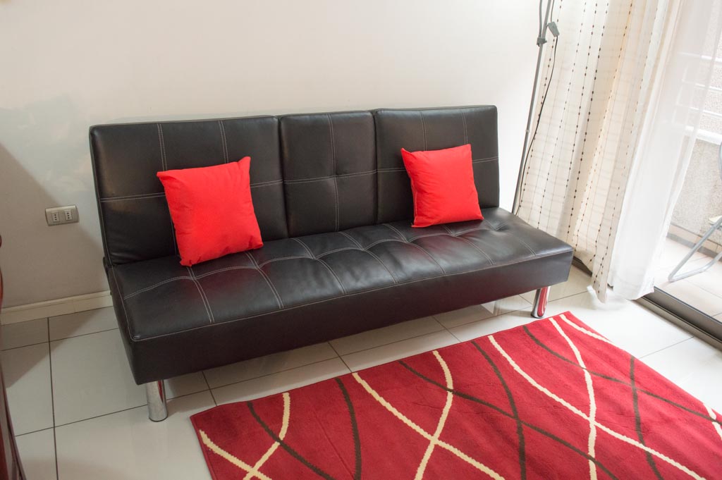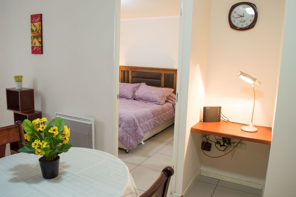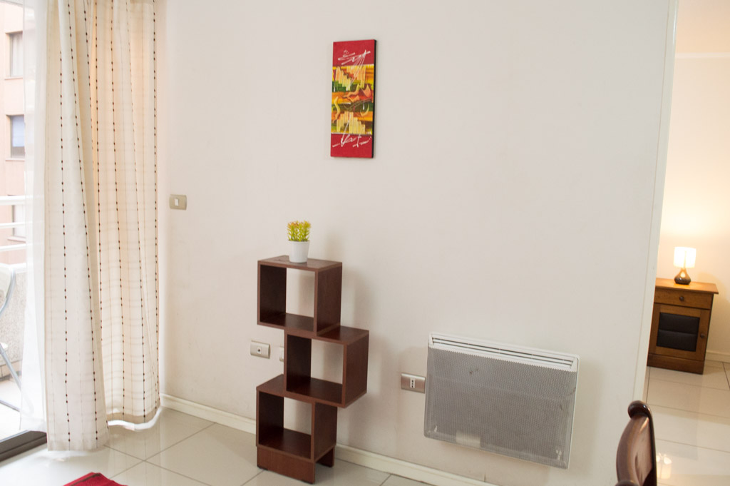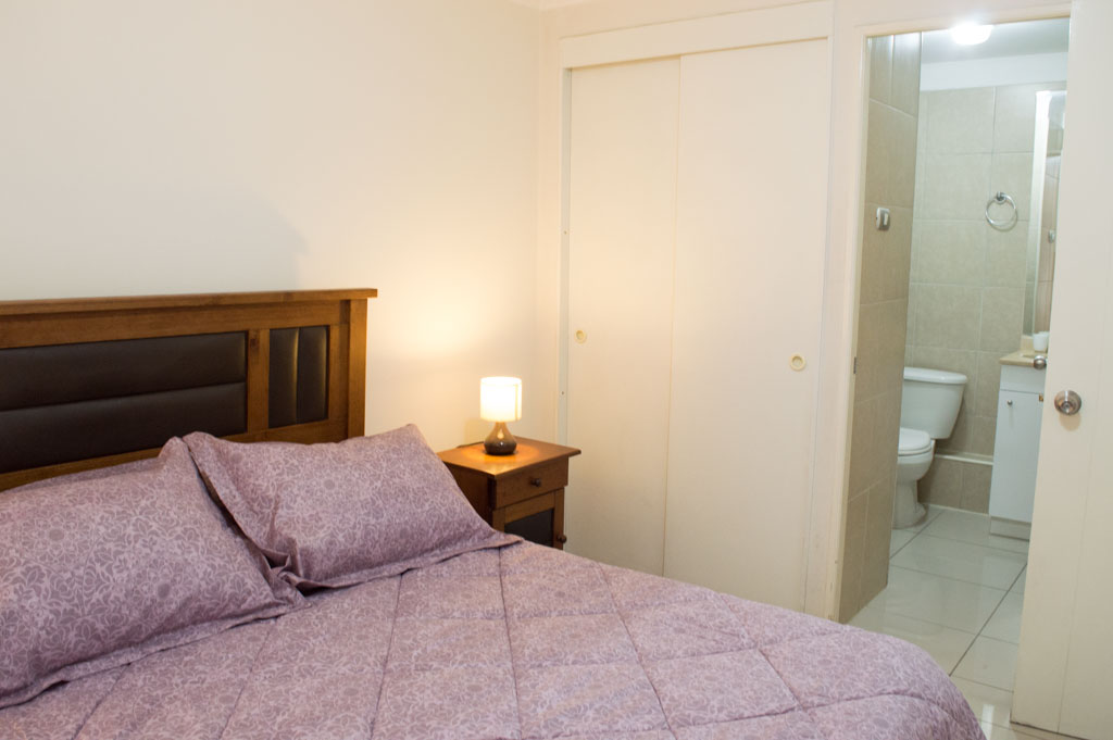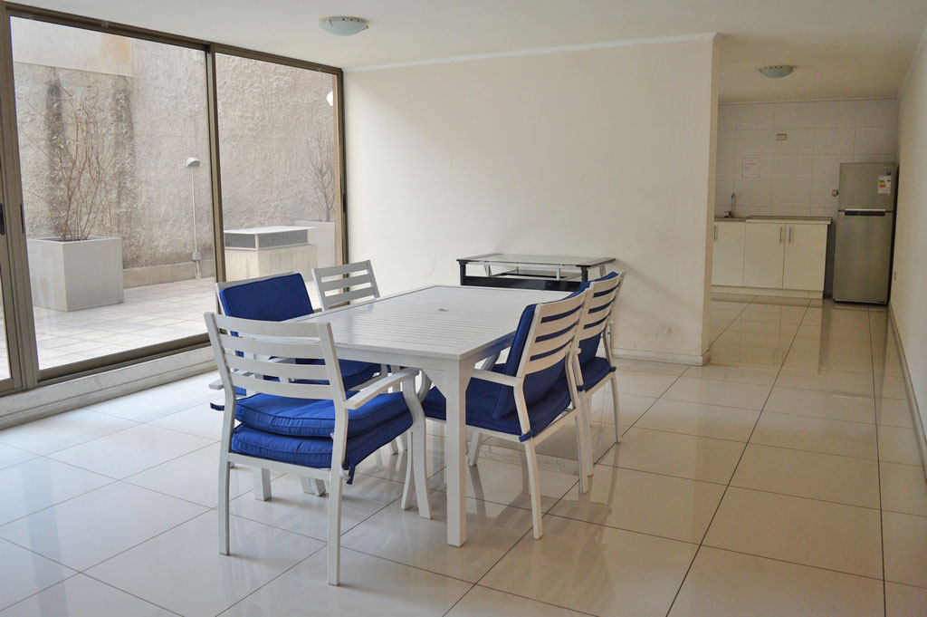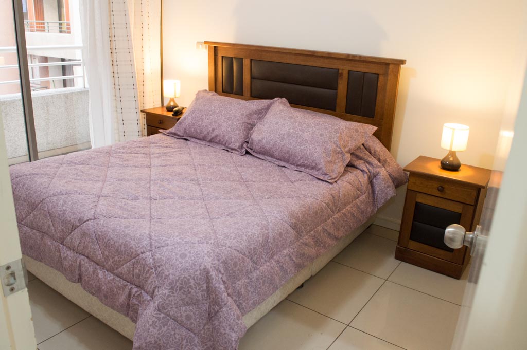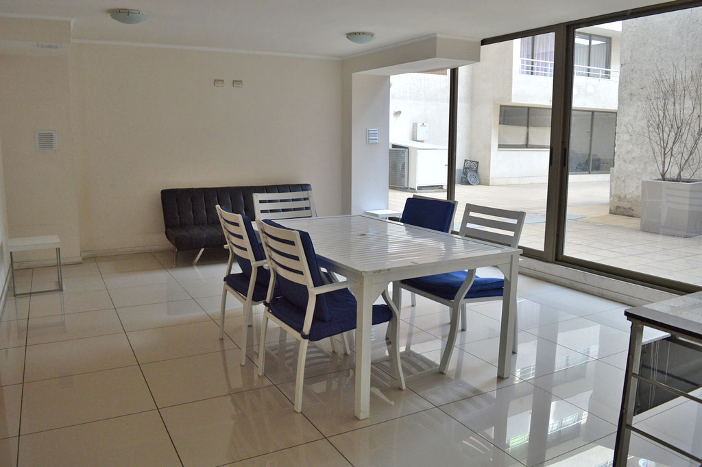 Departamento amoblado de 1 habitación ubicado a 3 minutos caminando de la parada de autobús y a 5 minutos caminando de la Estación de Metro Universidad de Chile.El departamento tiene living, comedor, cocina (abierta), 1 baño, balcón y 1 estacionamiento (opcional por un valor de $ 82USD adicional). La habitación 1 tiene cama matrimonial, clóset, 2 mesas de noche, televisor y baño en suite; El lugar mide 34m² + 5m² de terraza aproximadamente. Los gastos de servicios de gastos comunes, agua caliente, agua fría, electricidad e internet se pagan por adelantado junto a la renta mensual, con un límite de consumo de $ 142USD. El alojamiento tiene lavandería compartida cuyo valor es $ 1USD aproximadamente por carga de ropa (lavado o secado). Se debe pagar garantía (depósito) la que será devuelta al finalizar el período de arriendo; además, se debe pagar $ 38USD al momento de devolver el alojamiento para realizar la limpieza del lugar. Cerca del alojamiento se encuentra la Avenida Bernardo O'Higgins (más conocida como Alameda) donde hay diversos locales comerciales, gran variedad de transporte público y el centro cívico de Santiago. A pasos del metro se encuentra el emblemático Instituto Nacional José Miguel Carrera, la Universidad de Chile y el Teatro Municipal de Santiago.