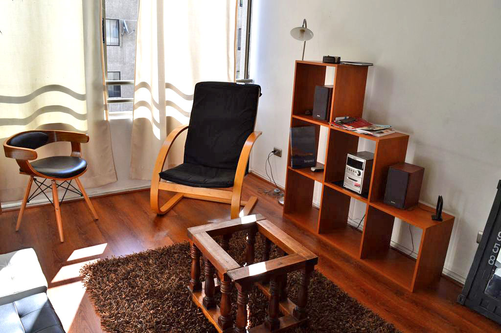 Departamento amoblado de 1 habitación ubicado a 3 minutos caminando de la parada de autobús y a 3 minutos caminando de la Estación de Metro Bellas Artes.El departamento tiene cocina (abierta) y 1 baño. El lugar mide 37m² aproximadamente. Los gastos de servicios de gastos comunes, agua caliente, agua fría, electricidad e internet se pagan por adelantado junto a la renta mensual, con un límite de consumo de $ 106USD. El alojamiento tiene lavandería compartida (lavado o secado). Se debe pagar garantía (depósito) la que será devuelta al finalizar el período de arriendo; además, se debe pagar $ 33USD al momento de devolver el alojamiento para realizar la limpieza del lugar. Cerca del alojamiento se encuentra el Barrio Lastarria y Barrio Bellas Artes (barrios históricos - culturales), caracterizados por sus casonas del siglo XIX restauradas y utilizadas como restaurantes, cafeterías, librerías, centros culturales, entre otros. A pasos podrás encontrar el Museo Nacional de Bellas Artes, donde se resguarda lo más valioso del arte nacional e internacional y el Parque Forestal, lugar ideal para compartir con amigos, practicar deportes y pasear.