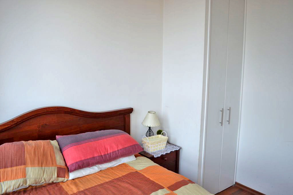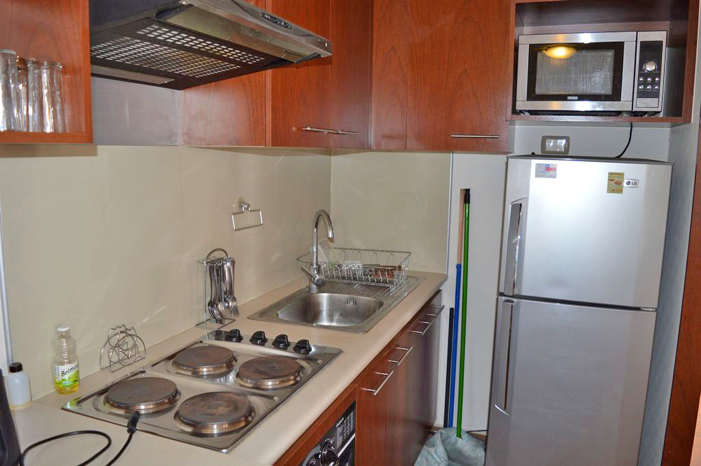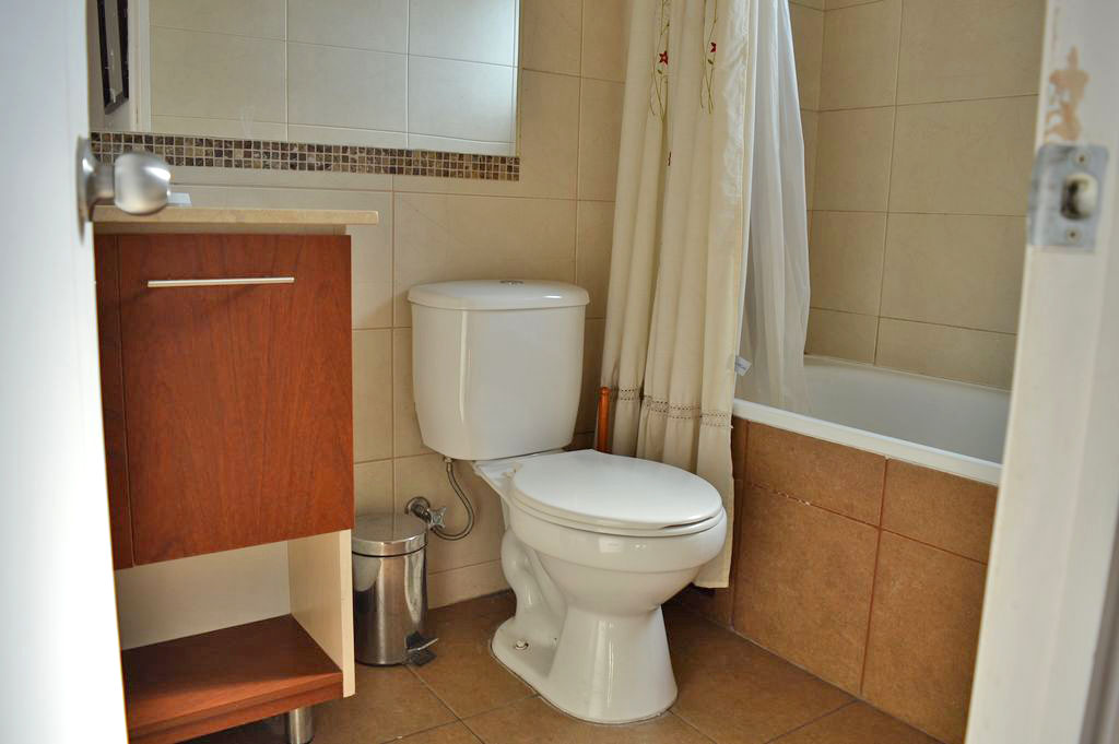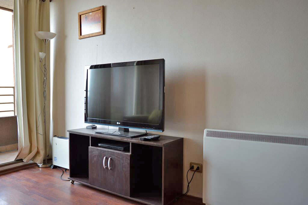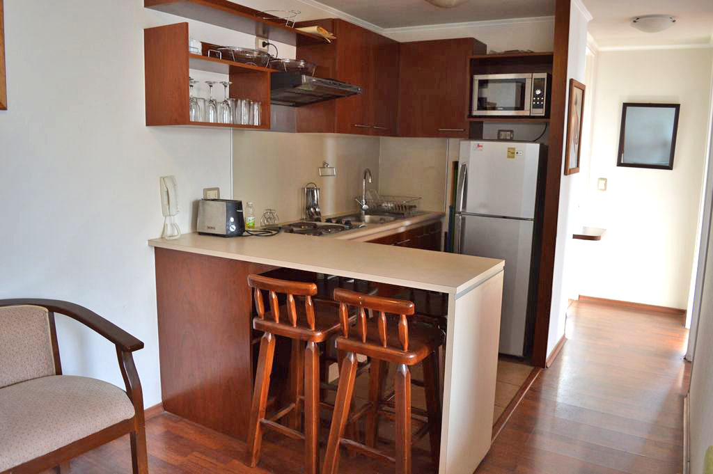 Departamento amoblado de 2 habitaciones ubicado a 3 minutos caminando de la parada de autobús y a 7 minutos caminando de la Estación de Metro Universidad de Chile.El departamento tiene living, comedor, cocina (abierta), 1 baño y terraza. La habitación 1 tiene cama matrimonial, 2 mesas de noche y baño en suite; La habitación 2 tiene cama matrimonial, clóset y mesa de noche; El lugar mide 46m² + 3m² de terraza aproximadamente. Los gastos de servicios de gastos comunes, agua caliente, agua fría y electricidad se pagan por adelantado junto a la renta mensual, con un límite de consumo de $ 117USD. El alojamiento tiene lavandería compartida (lavado o secado). Se debe pagar garantía (depósito) la que será devuelta al finalizar el período de arriendo; además, se debe pagar $ 33USD al momento de devolver el alojamiento para realizar la limpieza del lugar. Cerca del alojamiento se encuentra la Avenida Bernardo O'Higgins (más conocida como Alameda) donde hay diversos locales comerciales, gran variedad de transporte público y el centro cívico de Santiago. A pasos del metro se encuentra el emblemático Instituto Nacional José Miguel Carrera, la Universidad de Chile y el Teatro Municipal de Santiago.