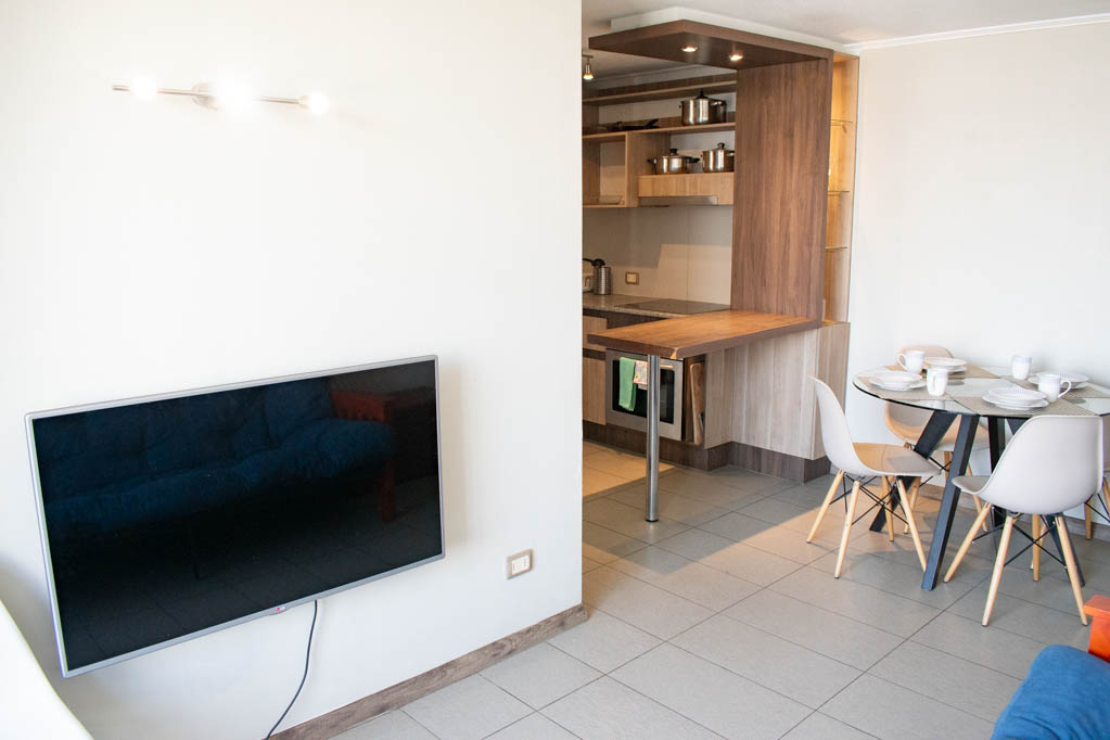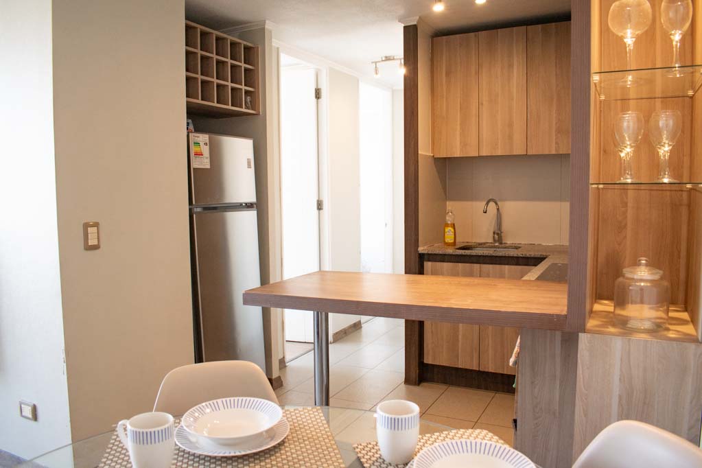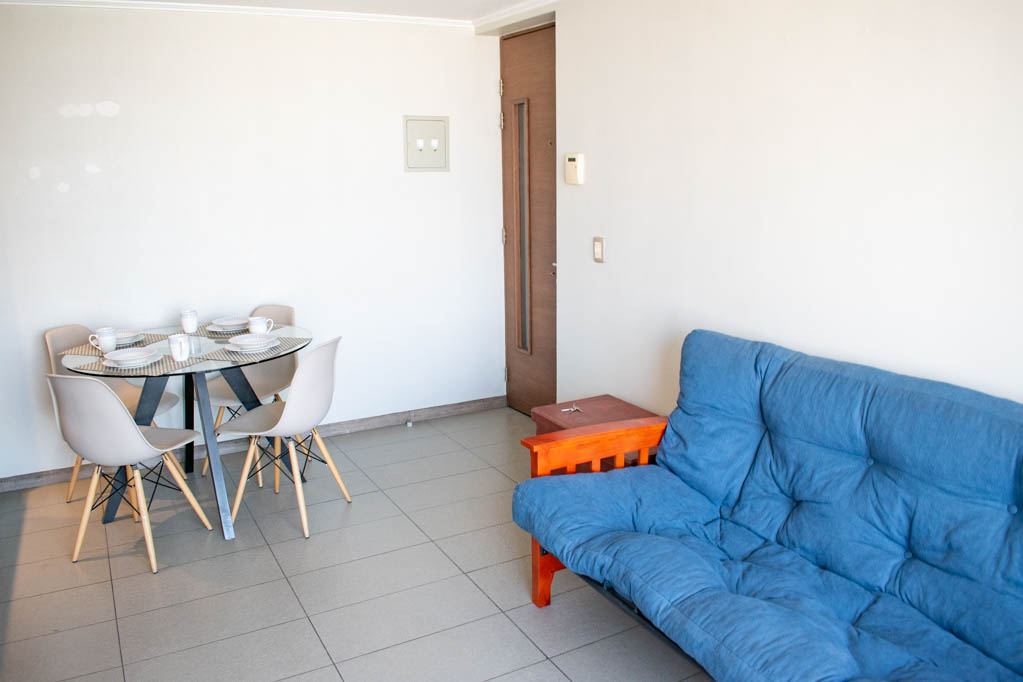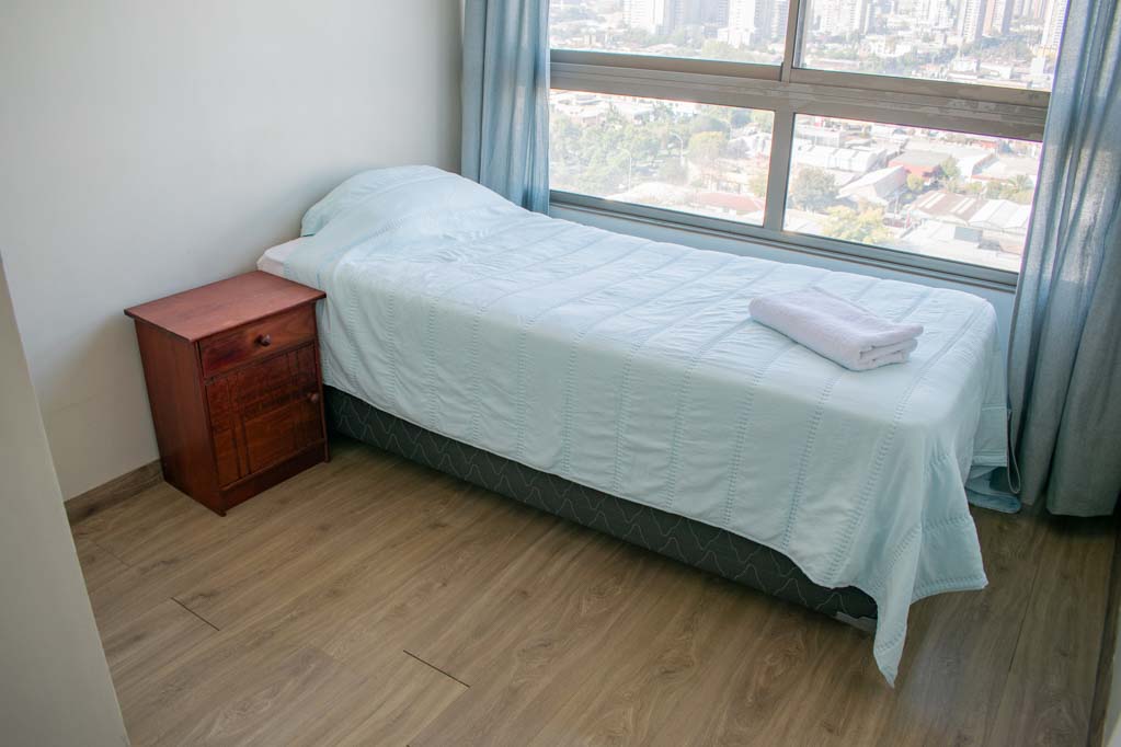 Departamento amoblado de 2 habitaciones ubicado a 1 minuto caminando de la parada de autobús y a 6 minutos caminando de la Estación de Metro Matta.El departamento tiene cocina (abierta), 1 baño y terraza. La habitación 1 tiene cama matrimonial, clóset y mesa de noche; La habitación 2 tiene cama individual, clóset y mesa de noche; El lugar mide 47m² + 3m² de terraza aproximadamente. Los gastos de servicios de gastos comunes, agua caliente, agua fría y electricidad se pagan por adelantado junto a la renta mensual, con un límite de consumo de $ 173USD. El alojamiento tiene lavandería compartida cuyo valor es $ 2USD aproximadamente por carga de ropa (lavado o secado). Se debe pagar garantía (depósito) la que será devuelta al finalizar el período de arriendo; además, se debe pagar $ 58USD al momento de devolver el alojamiento para realizar la limpieza del lugar. Cerca del alojamiento se encuentra la Avenida Irarrázaval, una de las arterias principales de Santiago, caracterizada por sus diversos locales comerciales, supermercados, restaurantes, pubs y discotecas. Además posee variados medios de transporte público a distintos puntos de la ciudad.
