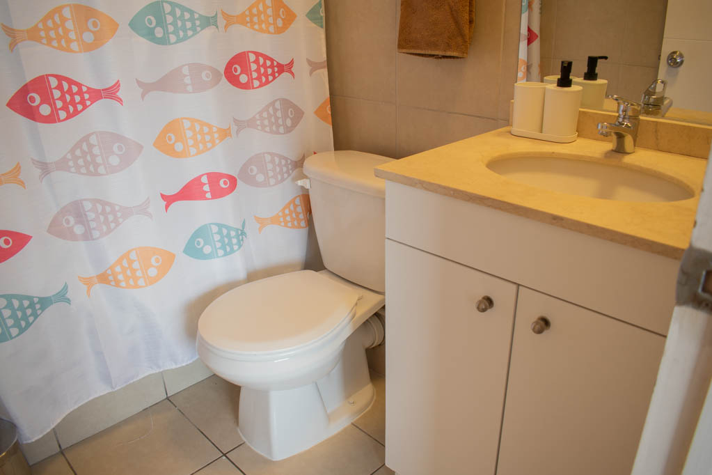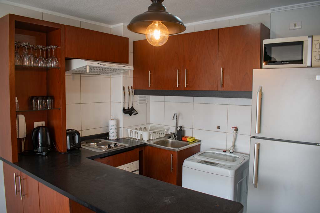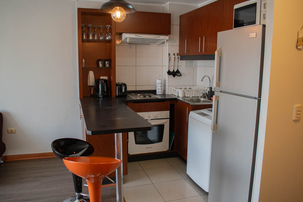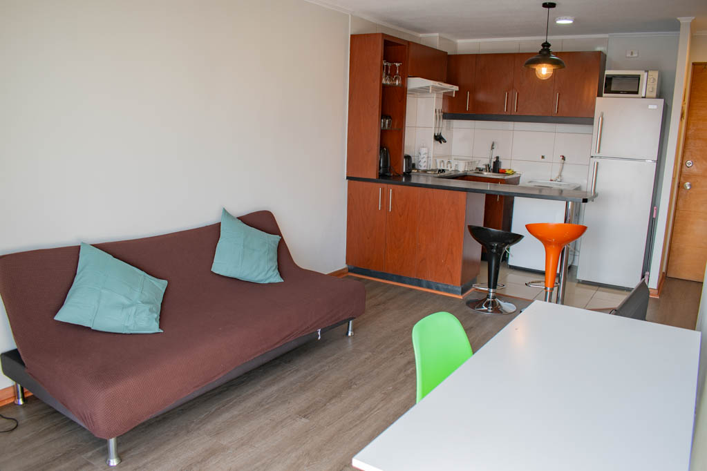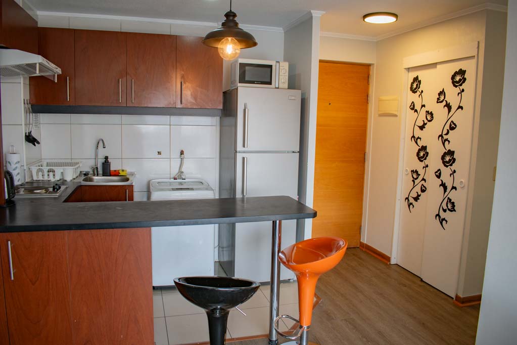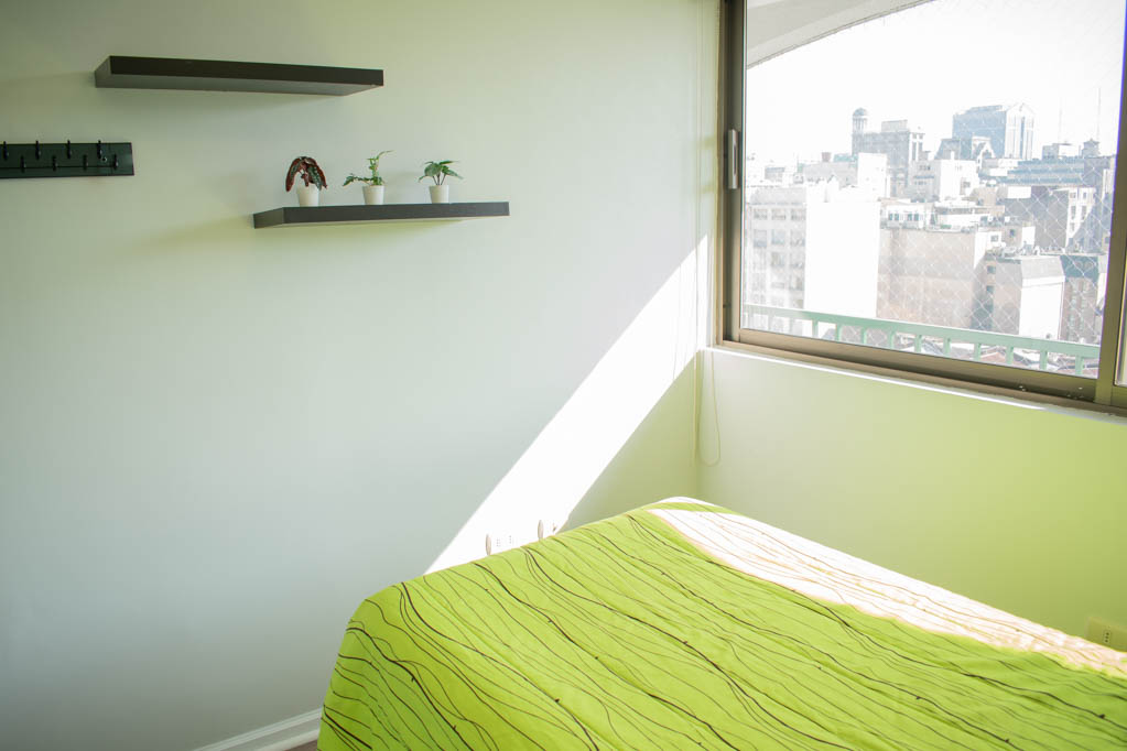 Departamento amoblado de 2 habitaciones ubicado a 4 minutos caminando de la parada de autobús y a 5 minutos caminando de la Estación de Metro Universidad de Chile.El departamento tiene living, comedor, cocina (abierta), 2 baños y balcón. La habitación 1 tiene cama matrimonial, walk-in clóset, 2 mesas de noche y baño en suite; La habitación 2 tiene cama nido y clóset; El lugar mide 50m² + 6m² de terraza aproximadamente. Se debe considerar el pago de gastos de servicios de gastos comunes, agua caliente, agua fría y electricidad que suman $ 219USD aproximadamente. El alojamiento tiene lavandería compartida cuyo valor es $ 2USD aproximadamente por carga de ropa (lavado o secado). Se debe pagar garantía (depósito) la que será devuelta al finalizar el período de arriendo; además, se debe pagar $ 116USD al momento de devolver el alojamiento para realizar la limpieza del lugar. Cerca del alojamiento se encuentra la Avenida Bernardo O'Higgins (más conocida como Alameda) donde hay diversos locales comerciales, gran variedad de transporte público y el centro cívico de Santiago. A pasos del metro se encuentra el emblemático Instituto Nacional José Miguel Carrera, la Universidad de Chile y el Teatro Municipal de Santiago.