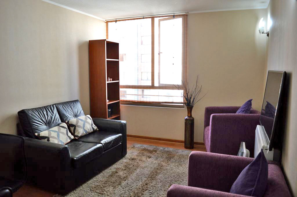 Departamento amoblado de 2 habitaciones ubicado a 3 minutos caminando de la parada de autobús y a 4 minutos caminando de la Estación de Metro Bellas Artes.El departamento tiene living, comedor, cocina (abierta) y 2 baños. La habitación 1 tiene cama matrimonial y baño en suite; La habitación 2 tiene cama individual, clóset, mesa de noche y baño en suite; El lugar mide 51m² aproximadamente. Se debe considerar el pago de gastos de servicios de gastos comunes, agua caliente, agua fría y electricidad que suman $ 120USD aproximadamente. El alojamiento tiene lavandería compartida cuyo valor es $ 1USD aproximadamente por carga de ropa (lavado o secado). Se debe pagar garantía (depósito) la que será devuelta al finalizar el período de arriendo; además, se debe pagar $ 23USD al momento de devolver el alojamiento para realizar la limpieza del lugar. Cerca del alojamiento se encuentra el Barrio Lastarria y Barrio Bellas Artes (barrios históricos - culturales), caracterizados por sus casonas del siglo XIX restauradas y utilizadas como restaurantes, cafeterías, librerías, centros culturales, entre otros. A pasos podrás encontrar el Museo Nacional de Bellas Artes, donde se resguarda lo más valioso del arte nacional e internacional y el Parque Forestal, lugar ideal para compartir con amigos, practicar deportes y pasear.