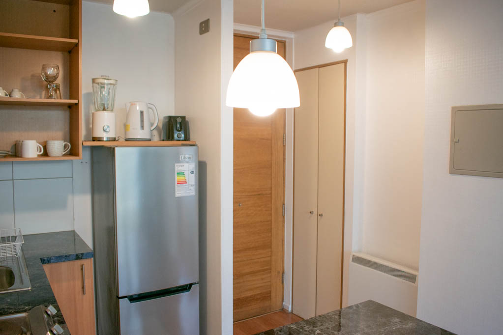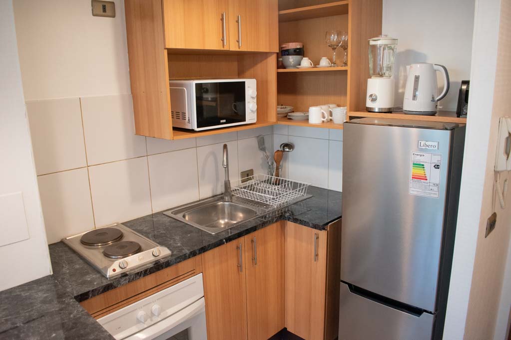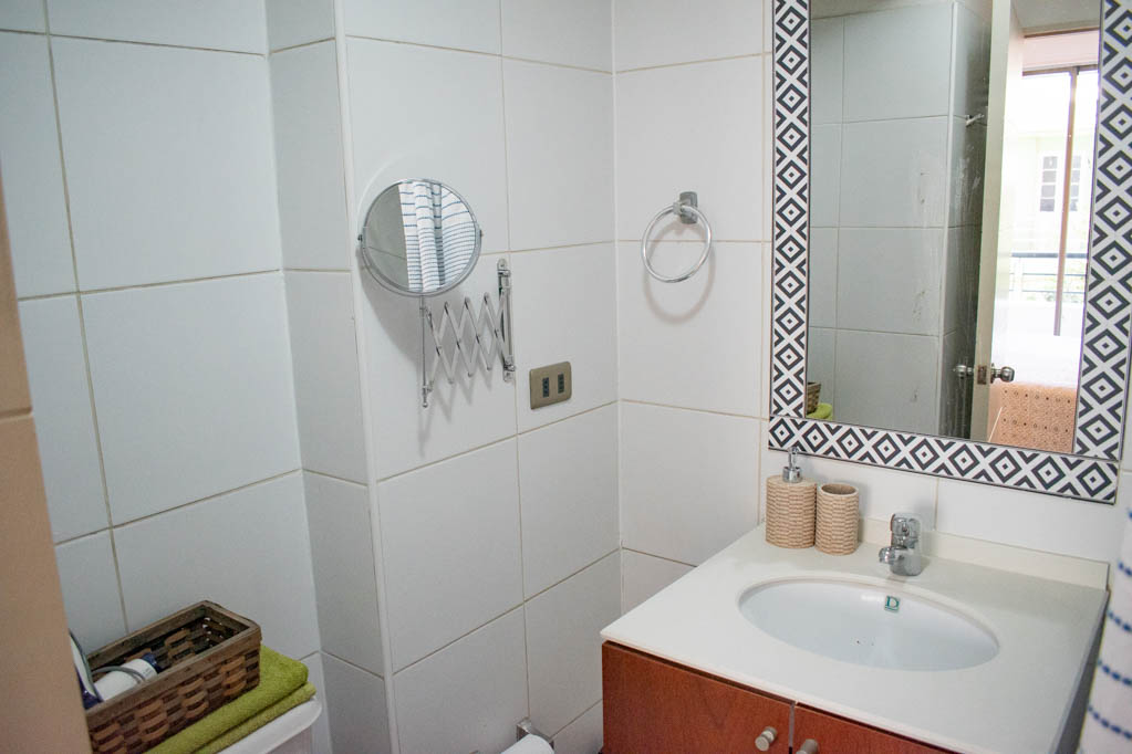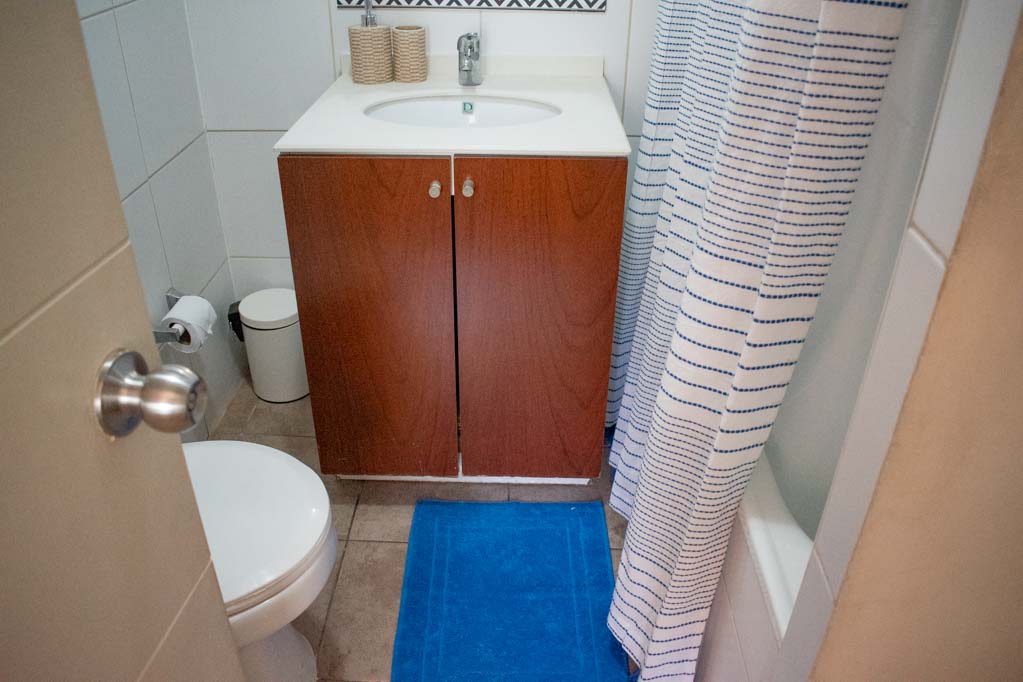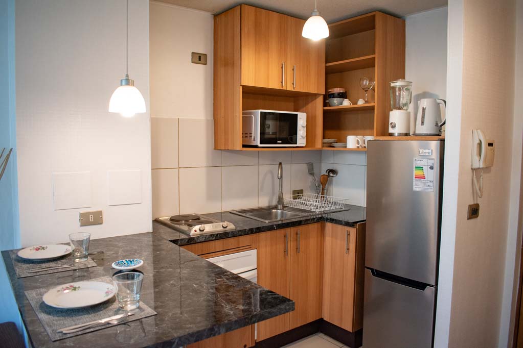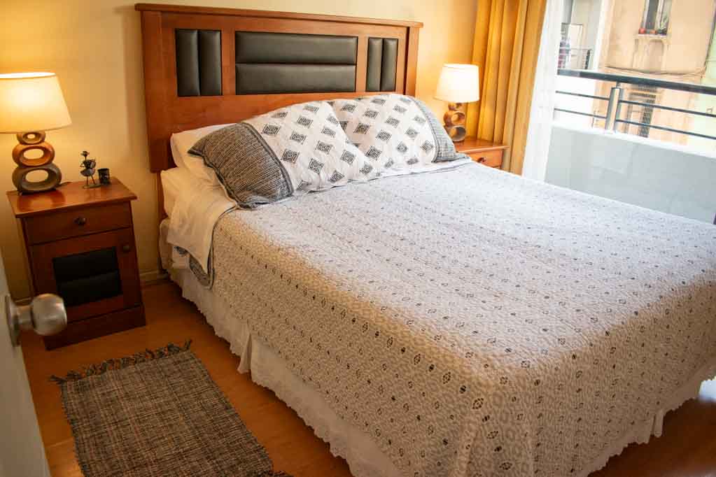 Departamento amoblado de 1 habitación ubicado a 1 minuto caminando de la parada de autobús y a 6 minutos caminando de la Estación de Metro La Moneda.El departamento tiene living, comedor, cocina (abierta), 1 baño y balcón. La habitación 1 tiene cama matrimonial, clóset, 2 mesas de noche y baño en suite; El lugar mide 32m² + 2m² de terraza aproximadamente. Los gastos de servicios de internet se pagan por adelantado junto a la renta mensual, con un límite de consumo de $ 25USD. Además, se debe considerar el pago de gastos de servicios de gastos comunes, agua caliente, agua fría y electricidad que suman $ 134USD aproximadamente. El alojamiento tiene lavandería compartida cuyo valor es $ 2USD aproximadamente por carga de ropa (lavado o secado). Se debe pagar garantía (depósito) la que será devuelta al finalizar el período de arriendo; además, se debe pagar $ 28USD al momento de devolver el alojamiento para realizar la limpieza del lugar. Cerca del alojamiento se encuentra la Avenida Bernardo O'Higgins (más conocida como Alameda), el Palacio de La Moneda y la Plaza de la Constitución, entre otras edificaciones de valor histórico y arquitectónico. También podrás encontrar, múltiples restoranes, bares, bancos y entidades gubernamentales.