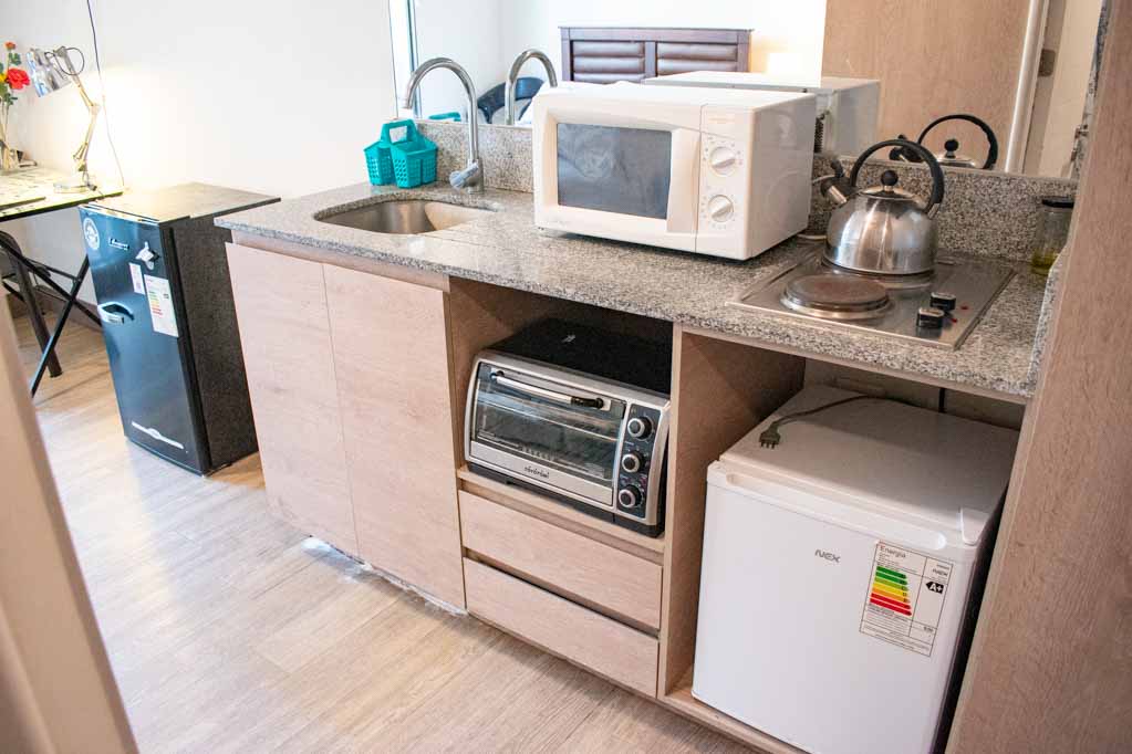 Departamento amoblado de un ambiente (studio) ubicado a 4 minutos caminando de la parada de autobús y a 5 minutos caminando de la Estación de Metro Los Héroes.El departamento tiene cocina (abierta) y 1 baño. La habitación 1 tiene cama matrimonial, clóset, mesa de noche, televisor, escritorio, silla y baño en suite; El lugar mide 27m² aproximadamente. Los gastos de servicios de gastos comunes, agua caliente, agua fría y electricidad se pagan por adelantado junto a la renta mensual, con un límite de consumo de $ 121USD. El alojamiento tiene lavandería compartida cuyo valor es $ 2USD aproximadamente por carga de ropa (lavado o secado). Se debe pagar garantía (depósito) la que será devuelta al finalizar el período de arriendo; además, se debe pagar $ 33USD al momento de devolver el alojamiento para realizar la limpieza del lugar. Cerca del alojamiento se encuentra la Avenida Bernardo O'Higgins (más conocida como Alameda) principal arteria de Santiago bajo la cual funciona la Línea 1 del metro de Santiago y donde podrás encontrar el Monumento a los héroes de la Concepción y la conocida confitería Torres.