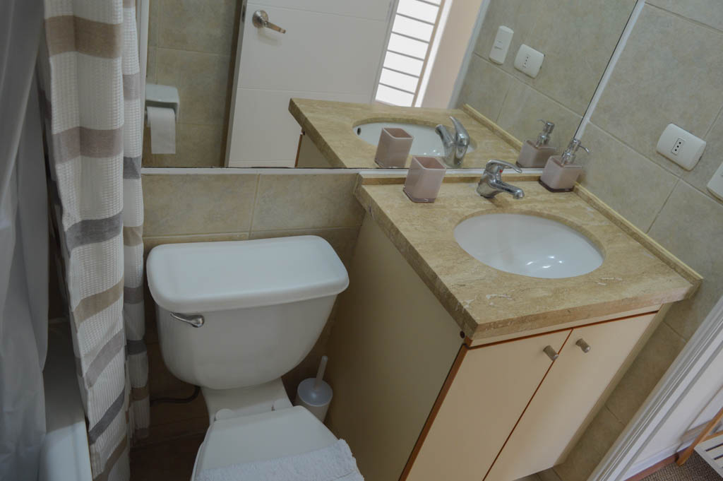 Departamento amoblado de 1 habitación ubicado a 1 minuto caminando de la parada de autobús y a 10 minutos caminando de la Estación de Metro Santa Lucía.El departamento tiene living, comedor, cocina (abierta) y 1 baño. La habitación 1 tiene cama matrimonial, clóset, silla y baño en suite; El lugar mide 54m² aproximadamente. Los gastos de servicios de gastos comunes, agua caliente, agua fría, electricidad, gas e internet se pagan por adelantado junto a la renta mensual, con un límite de consumo de $ 138USD. El alojamiento tiene lavandería compartida cuyo valor es $ 1USD aproximadamente por carga de ropa (lavado o secado). Se debe pagar garantía (depósito) la que será devuelta al finalizar el período de arriendo; además, se debe pagar $ 33USD al momento de devolver el alojamiento para realizar la limpieza del lugar. Cerca del alojamiento se encuentra la Biblioteca Nacional, Teatro Municipal de Santiago, Cine Arte, ferias artesanales, centros culturales y el Cerro Santa Lucía, importante foco de turismo y paseos dominicales por los atractivos que presenta, como fuentes de agua, terrazas y miradores donde puedes disfrutar de una vista privilegiada de Santiago.