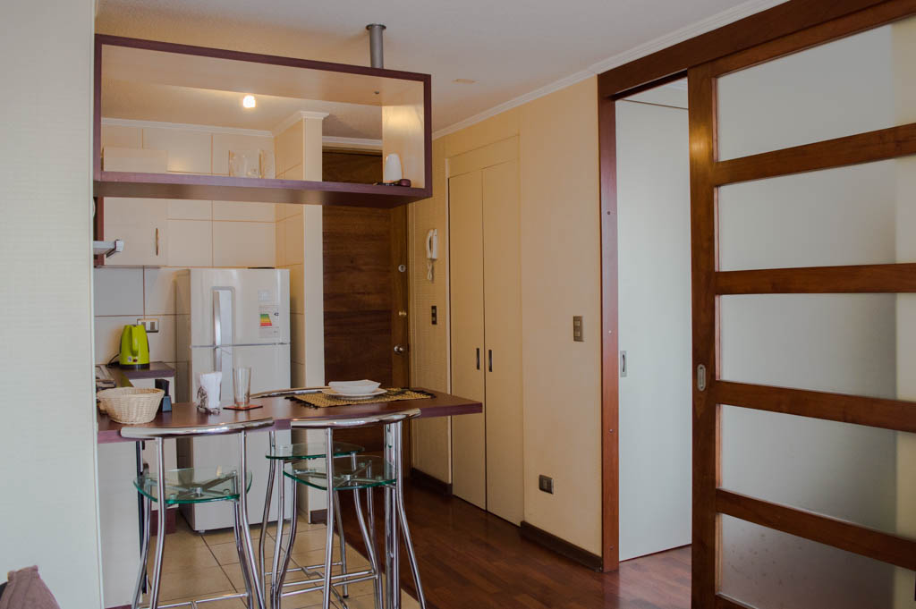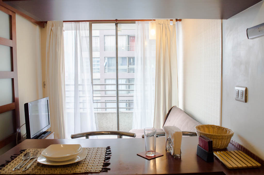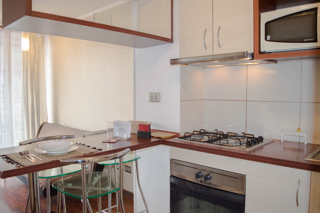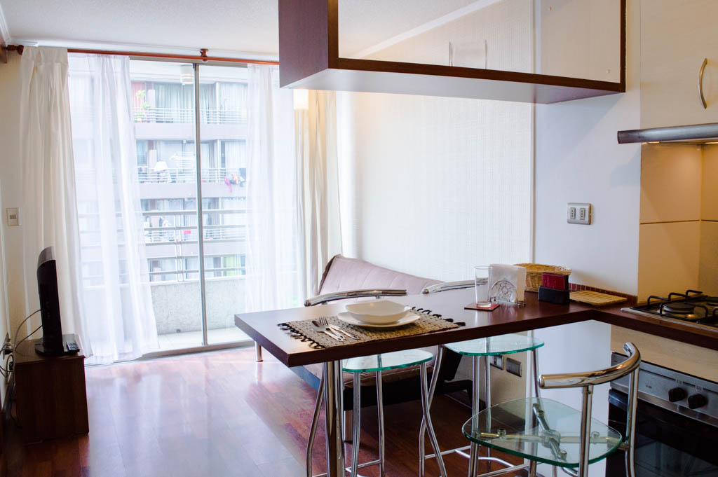 Departamento amoblado de 1 habitación ubicado a 1 minuto caminando de la parada de autobús y a 6 minutos caminando de la Estación de Metro Santa Isabel.El departamento tiene living, comedor, cocina (abierta), 1 baño, balcón, sala de estudio y sala de TV. La habitación 1 tiene cama matrimonial, clóset, mesa de noche y baño en suite; El lugar mide 37m² + 3m² de terraza aproximadamente. Se debe considerar el pago de gastos de servicios de gastos comunes, agua caliente, agua fría, electricidad y gas que suman $ 95USD aproximadamente. El alojamiento tiene lavandería compartida cuyo valor es $ 2USD aproximadamente por carga de ropa (lavado o secado). Se debe pagar garantía (depósito) la que será devuelta al finalizar el período de arriendo; además, se debe pagar $ 44USD al momento de devolver el alojamiento para realizar la limpieza del lugar. Cerca del alojamiento se encuentra los emblemáticos Liceo Arturo Alessandri Palma y el Liceo Carmela Carvajal de Prat; ubicados en el barrio Santa Isabel el cual ha crecido exponencialmente con los años debido al gran desarrollo inmobiliario lo que ha permitido la generación de áreas verdes y espacios deportivos. En el mismo sector se encuentra el barrio Italia donde se han instalado diversos artistas, diseñadores, maestros de la gastronomía, pequeños comercios, e incluso talleres mecánicos.