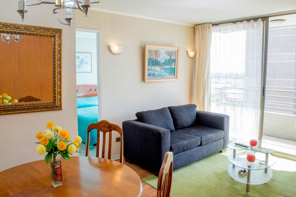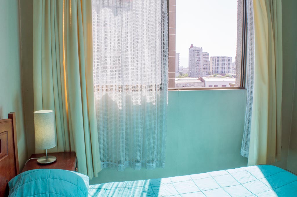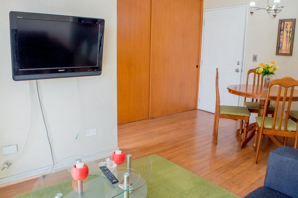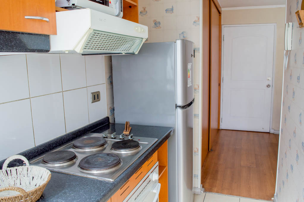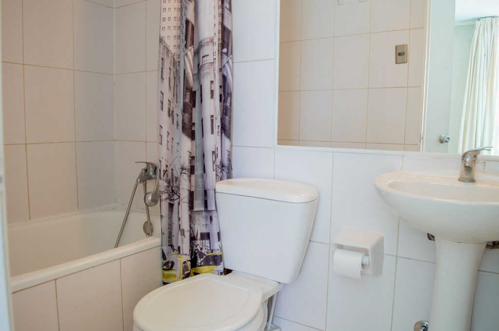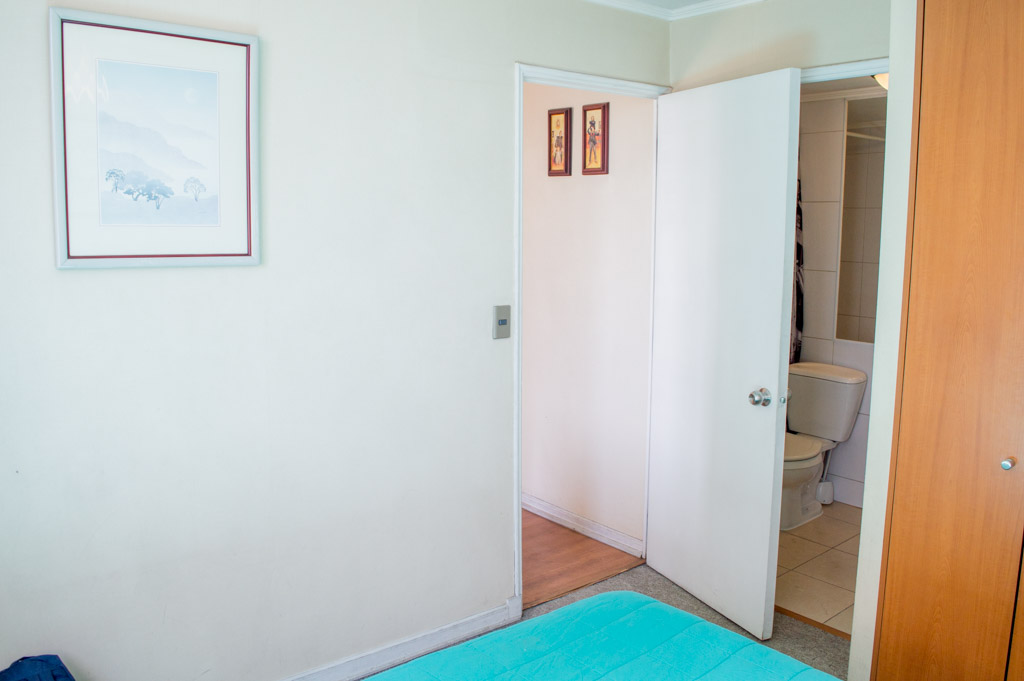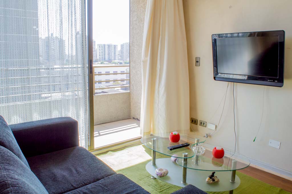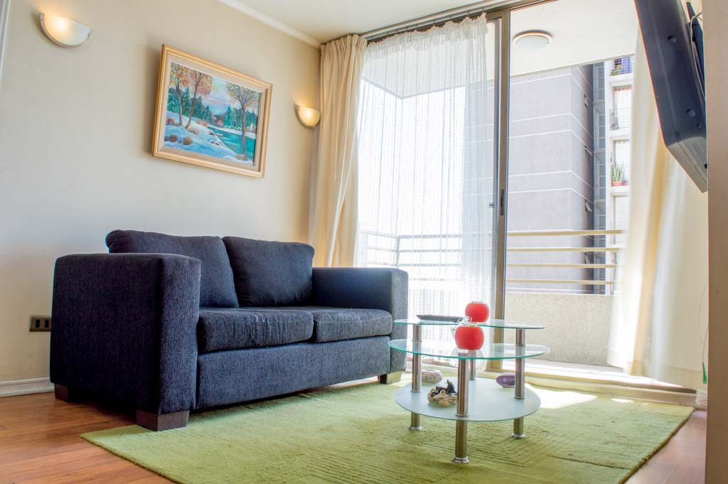 Departamento amoblado de 1 habitación ubicado a 1 minuto caminando de la parada de autobús y a 10 minutos caminando de la Estación de Metro Parque O'Higgins.El departamento tiene living, comedor, cocina (cerrada), 1 baño y balcón. La habitación 1 tiene cama matrimonial, clóset, 2 mesas de noche y baño en suite; El lugar mide 32m² + 3m² de terraza aproximadamente Se debe considerar el pago de gastos de servicios de gastos comunes, agua caliente, agua fría y electricidad que suman $ 77USD aproximadamente. El alojamiento tiene lavandería compartida cuyo valor es $ 1USD aproximadamente por carga de ropa (lavado o secado). Se debe pagar garantía (depósito) la que será devuelta al finalizar el período de arriendo; además, se debe pagar $ 38USD al momento de devolver el alojamiento para realizar la limpieza del lugar. Cerca del alojamiento se encuentra el Palacio Cousiño, monumento nacional y uno de los museos más importantes de Santiago; éste se encuentra dentro del Parque Almagro, 12 hectáreas de parque donde también podrás ver variadas esculturas; la iglesia de los Sacramentinos, entre otras atracciones.