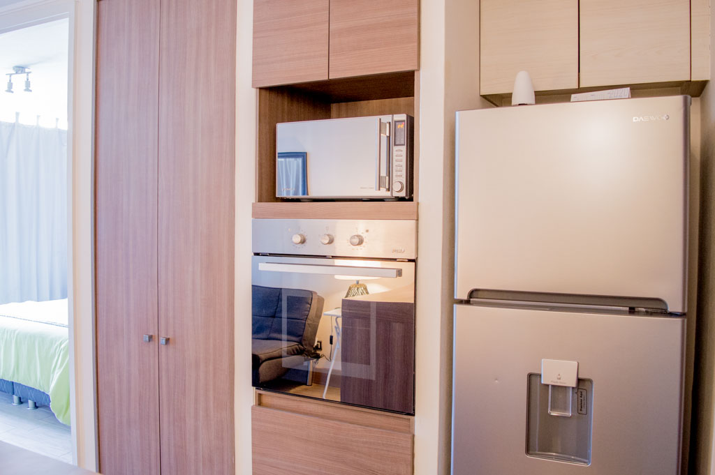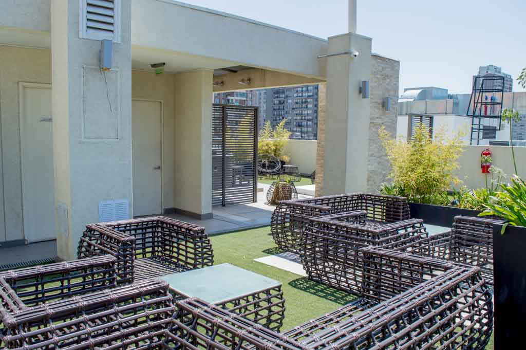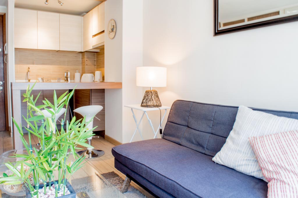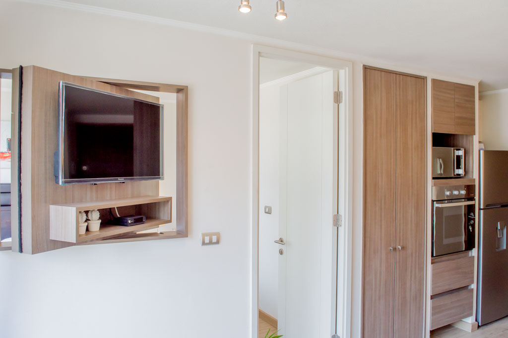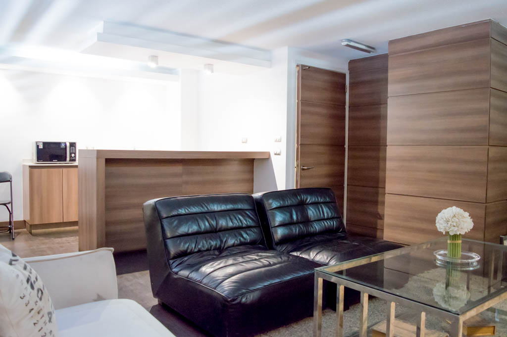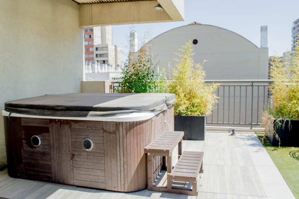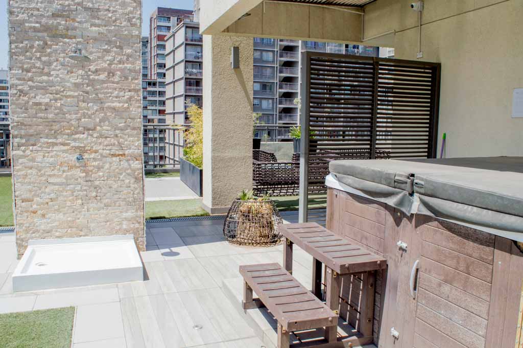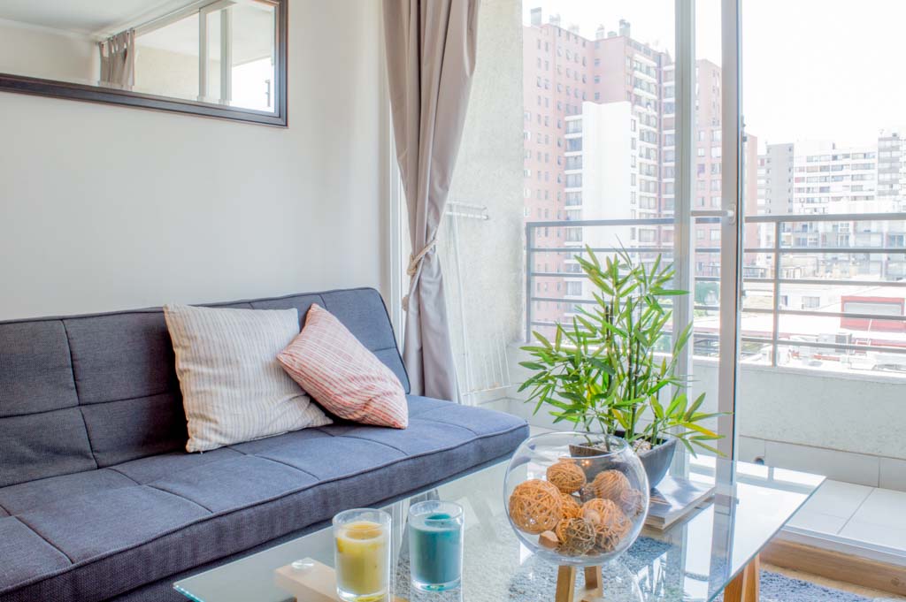 Departamento amoblado de 1 habitación ubicado a 2 minutos caminando de la parada de autobús y a 11 minutos caminando de la Estación de Metro Santa Lucía.El departamento tiene comedor, cocina (abierta), 1 baño, balcón y 1 estacionamiento (opcional por un valor de $ 66USD adicional). La habitación 1 tiene cama matrimonial, clóset, 2 mesas de noche, televisor y baño en suite; El lugar mide 35m² + 5m² de terraza aproximadamente. Se debe considerar el pago de gastos de servicios de gastos comunes, agua caliente, agua fría, electricidad, internet y TV cable que suman $ 175USD aproximadamente. El alojamiento tiene lavandería compartida cuyo valor es $ 2USD aproximadamente por carga de ropa (lavado o secado). Se debe pagar garantía (depósito) la que será devuelta al finalizar el período de arriendo; además, se debe pagar $ 55USD al momento de devolver el alojamiento para realizar la limpieza del lugar. Cerca del alojamiento se encuentra la Biblioteca Nacional, Teatro Municipal de Santiago, Cine Arte, ferias artesanales, centros culturales y el Cerro Santa Lucía, importante foco de turismo y paseos dominicales por los atractivos que presenta, como fuentes de agua, terrazas y miradores donde puedes disfrutar de una vista privilegiada de Santiago.