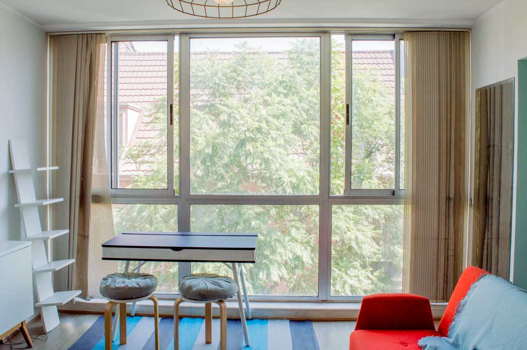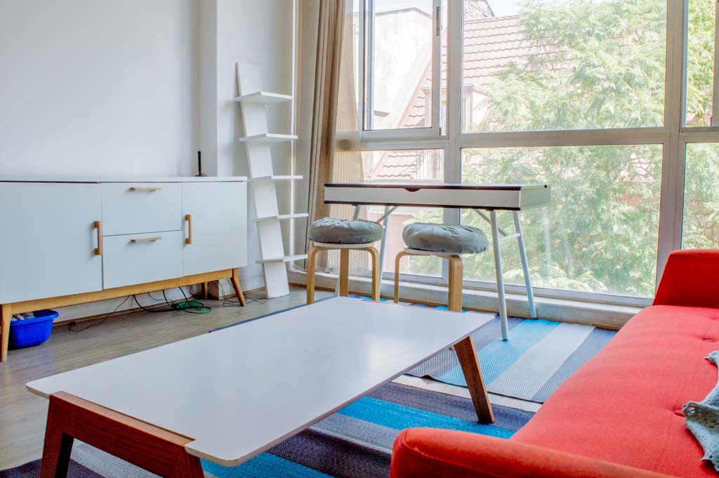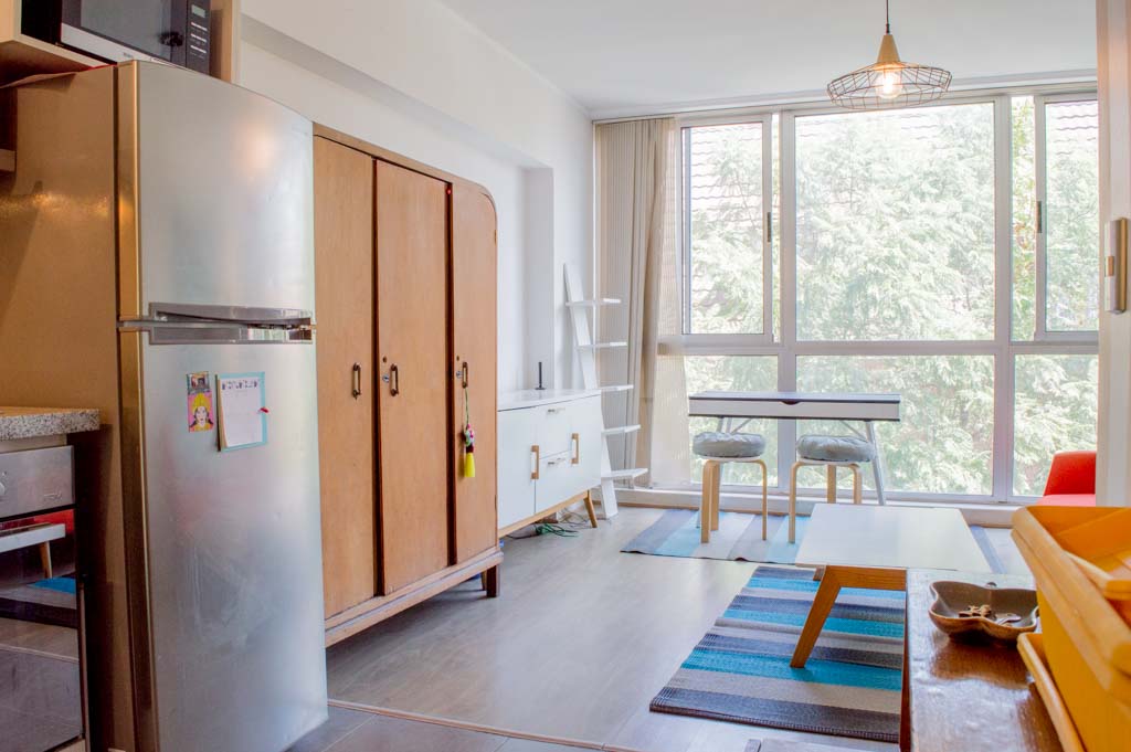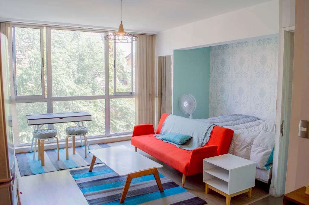 Departamento amoblado de un ambiente (studio) ubicado a 2 minutos caminando de la parada de autobús y a 7 minutos caminando de la Estación de Metro La Moneda.El departamento tiene comedor, cocina (abierta) y 1 baño. La habitación 1 tiene cama matrimonial, armario, cómoda, sofá, escritorio, 2 sillas y baño en suite; El lugar mide 35m² aproximadamente. Los gastos de servicios de gastos comunes, agua caliente, agua fría, electricidad e internet se pagan por adelantado junto a la renta mensual, con un límite de consumo de $ 104USD. Se debe pagar garantía (depósito) la que será devuelta al finalizar el período de arriendo; además, se debe pagar $ 40USD al momento de devolver el alojamiento para realizar la limpieza del lugar. Cerca del alojamiento se encuentra la Avenida Bernardo O'Higgins (más conocida como Alameda), el Palacio de La Moneda y la Plaza de la Constitución, entre otras edificaciones de valor histórico y arquitectónico. También podrás encontrar, múltiples restoranes, bares, bancos y entidades gubernamentales.
