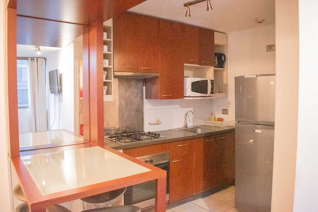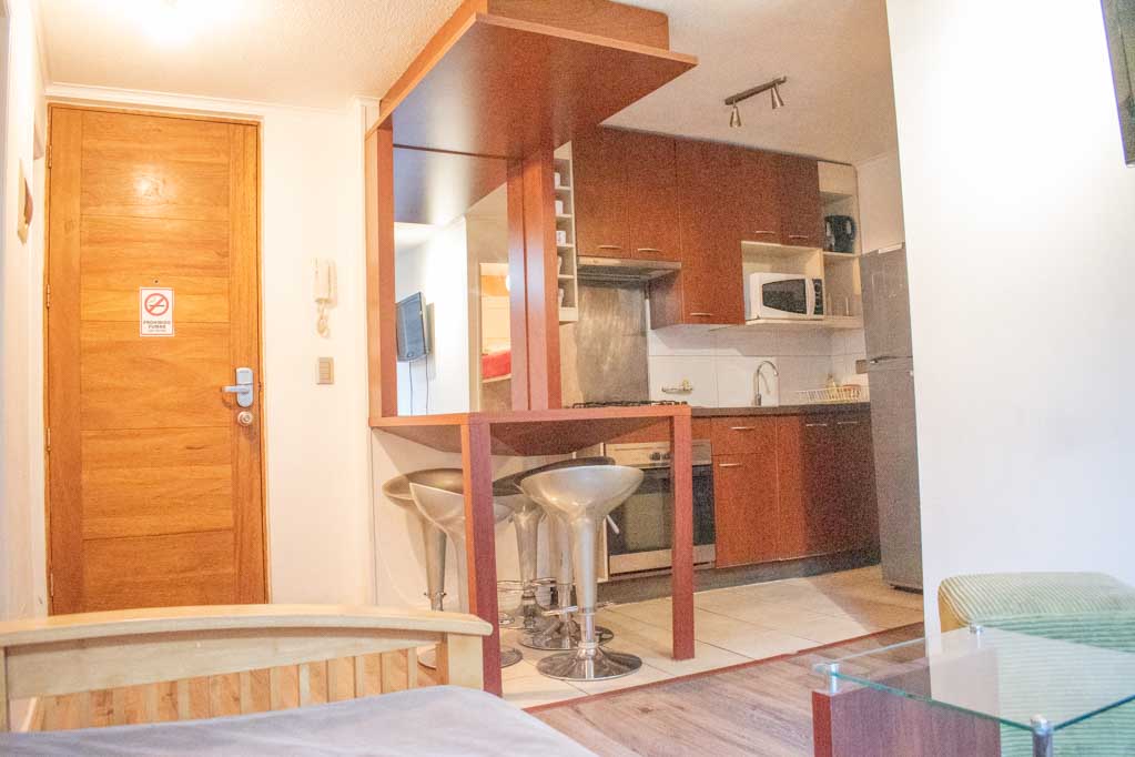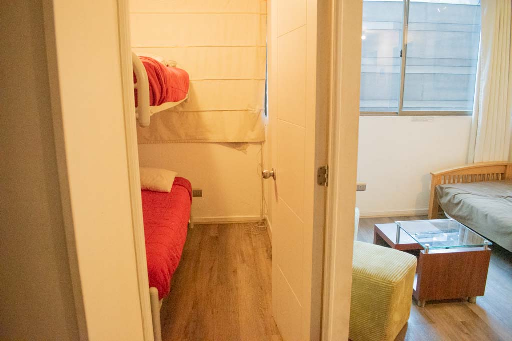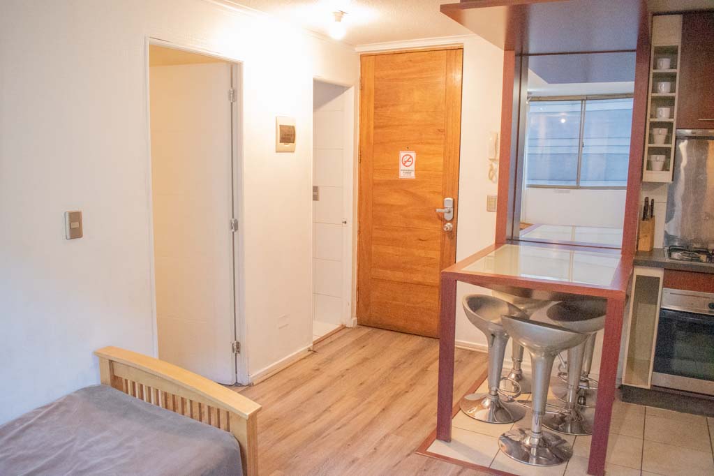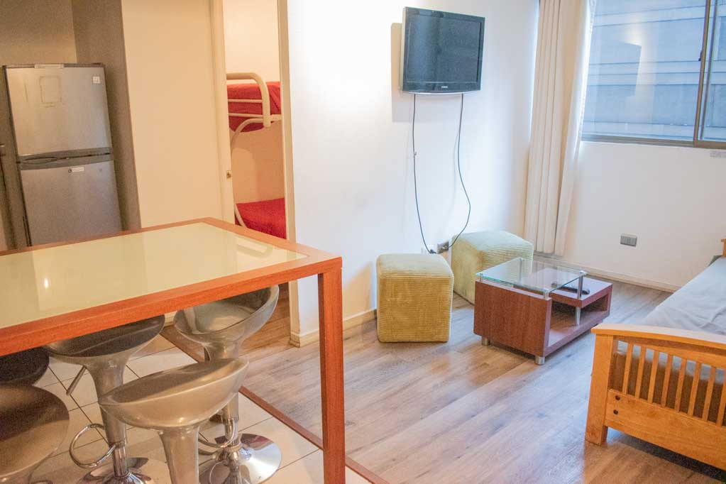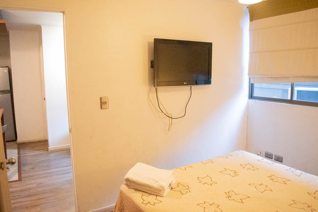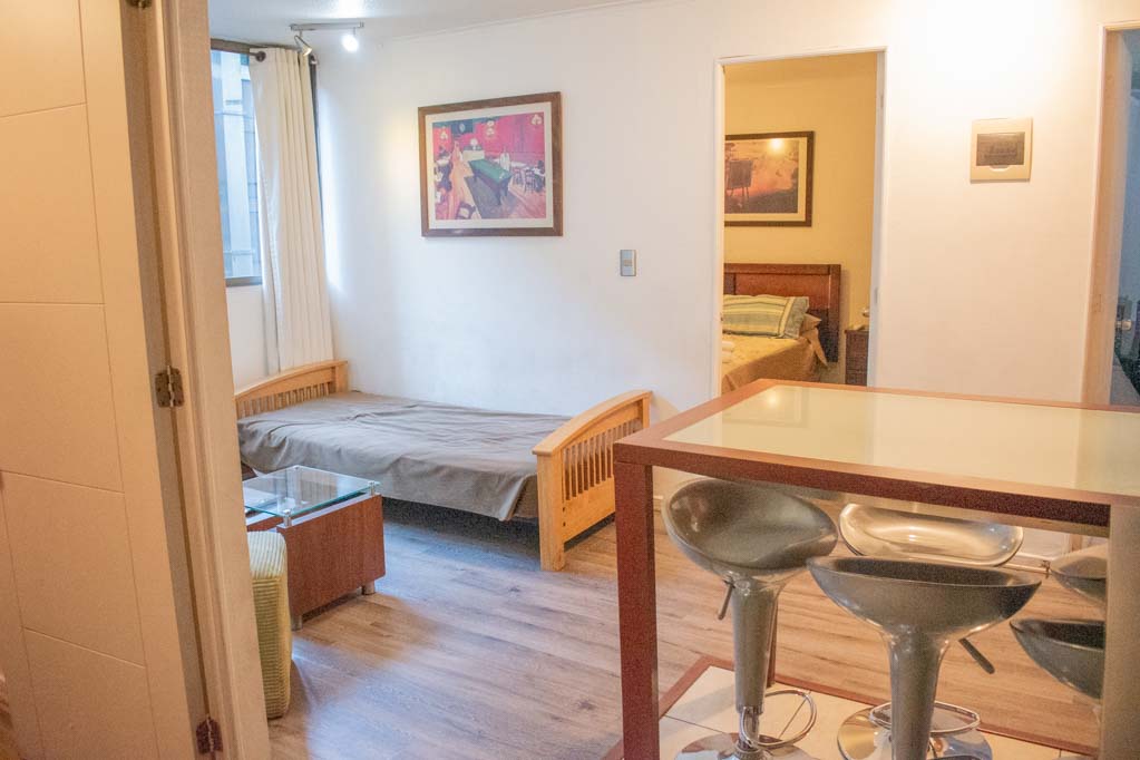 Departamento amoblado de 2 habitaciones ubicado a 2 minutos caminando de la parada de autobús y a 4 minutos caminando de la Estación de Metro Bellas Artes.El departamento tiene living, comedor, cocina (abierta) y 1 baño. La habitación 1 tiene cama matrimonial, clóset y 2 mesas de noche; La habitación 2 tiene litera y clóset; El lugar mide 40m² aproximadamente. Los gastos de servicios de gastos comunes, agua caliente, agua fría, electricidad, gas, internet y TV cable se pagan por adelantado junto a la renta mensual, con un límite de consumo de $ 222USD. El alojamiento tiene lavandería compartida cuyo valor es $ 1USD aproximadamente por carga de ropa (lavado o secado). Se debe pagar garantía (depósito) la que será devuelta al finalizar el período de arriendo; además, se debe pagar $ 47USD al momento de devolver el alojamiento para realizar la limpieza del lugar. Cerca del alojamiento se encuentra el Barrio Lastarria y Barrio Bellas Artes (barrios históricos - culturales), caracterizados por sus casonas del siglo XIX restauradas y utilizadas como restaurantes, cafeterías, librerías, centros culturales, entre otros. A pasos podrás encontrar el Museo Nacional de Bellas Artes, donde se resguarda lo más valioso del arte nacional e internacional y el Parque Forestal, lugar ideal para compartir con amigos, practicar deportes y pasear.