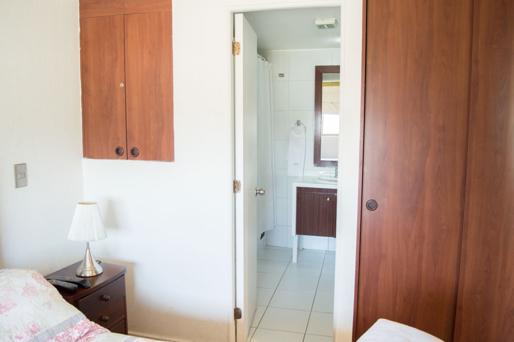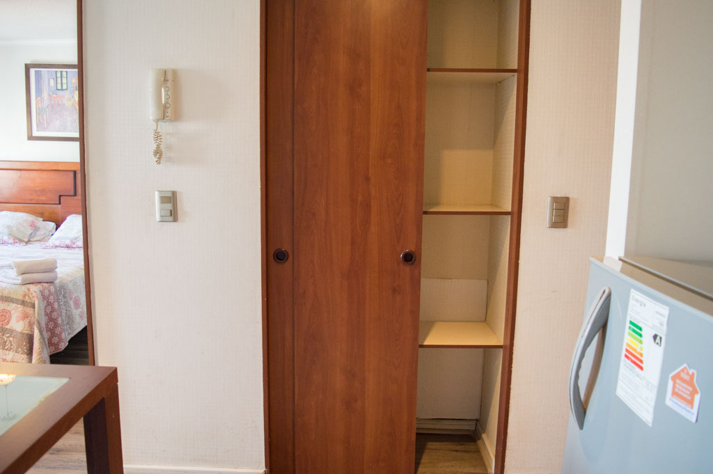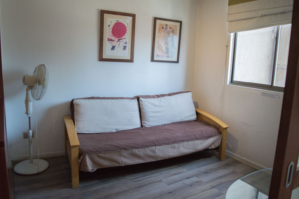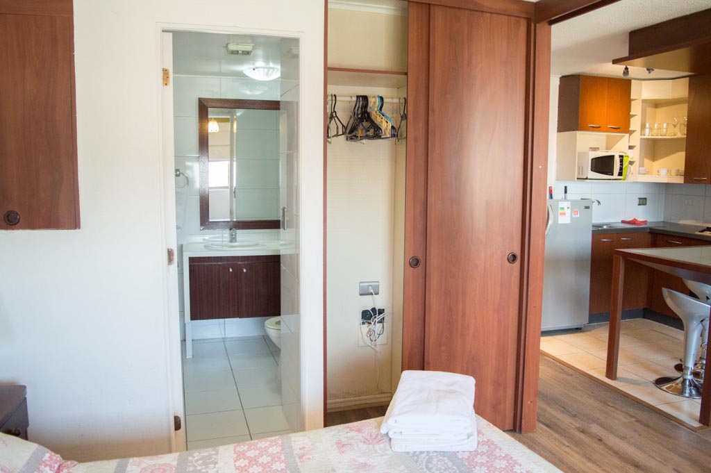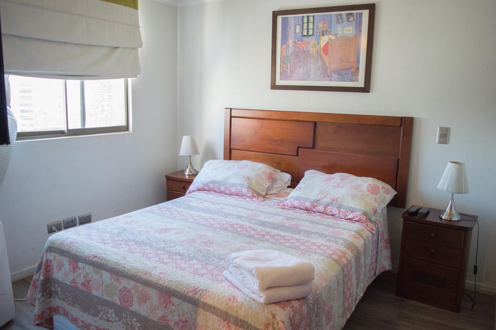 Departamento amoblado de 1 habitación ubicado a 2 minutos caminando de la parada de autobús y a 6 minutos caminando de la Estación de Metro Universidad de Chile.El departamento tiene living, comedor, cocina (abierta) y 1 baño. La habitación 1 tiene cama matrimonial, clóset, 2 mesas de noche, televisor y baño en suite; El lugar mide 35m² aproximadamente. Los gastos de servicios de gastos comunes, agua caliente, agua fría, electricidad, gas, internet y TV cable se pagan por adelantado junto a la renta mensual, con un límite de consumo de $ 185USD. El alojamiento tiene lavandería compartida cuyo valor es $ 2USD aproximadamente por carga de ropa (lavado o secado). Se debe pagar garantía (depósito) la que será devuelta al finalizar el período de arriendo; además, se debe pagar $ 35USD al momento de devolver el alojamiento para realizar la limpieza del lugar. Cerca del alojamiento se encuentra la Avenida Bernardo O'Higgins (más conocida como Alameda) donde hay diversos locales comerciales, gran variedad de transporte público y el centro cívico de Santiago. A pasos del metro se encuentra el emblemático Instituto Nacional José Miguel Carrera, la Universidad de Chile y el Teatro Municipal de Santiago.