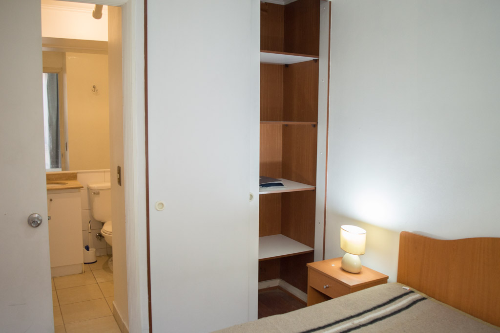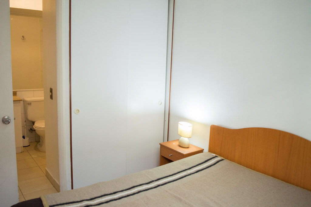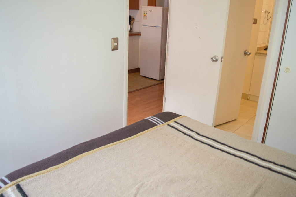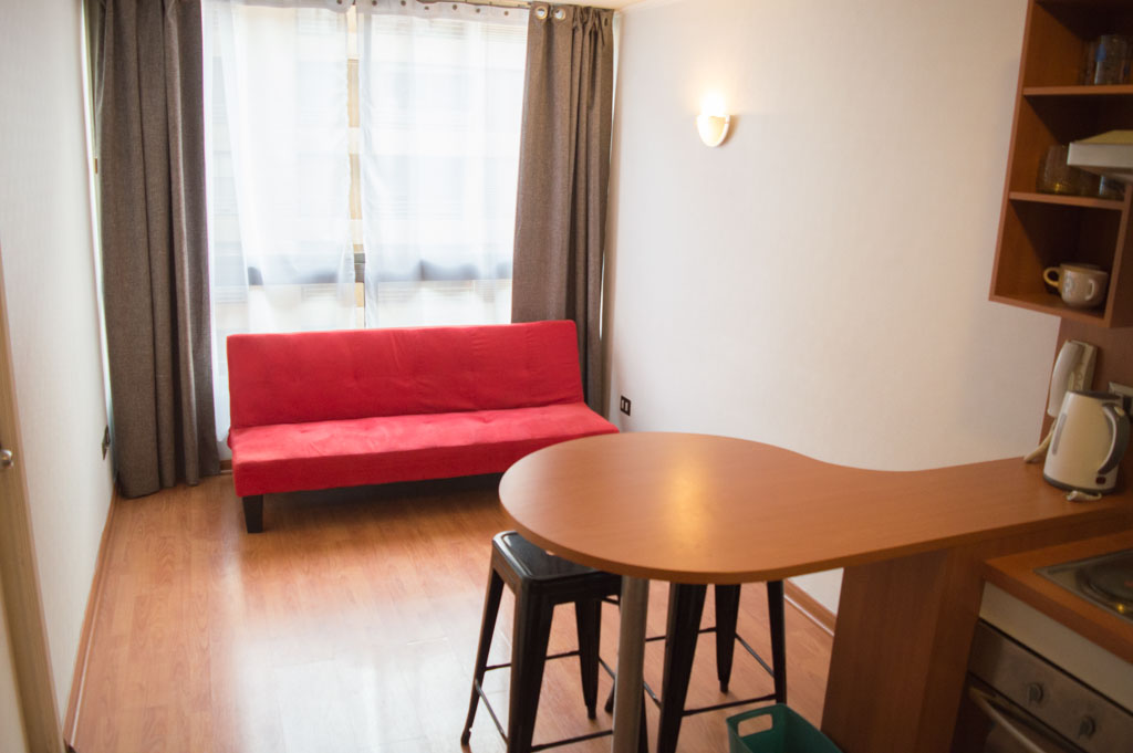 Departamento amoblado de 1 habitación ubicado a 2 minutos caminando de la parada de autobús y a 7 minutos caminando de la Estación de Metro La Moneda.El departamento tiene living, comedor, cocina (abierta) y 1 baño. La habitación 1 tiene cama matrimonial, clóset, 2 mesas de noche y baño en suite; El lugar mide 35m² aproximadamente. Se debe considerar el pago de gastos de servicios de gastos comunes, agua caliente, agua fría y electricidad que suman $ 110USD aproximadamente. El alojamiento tiene lavandería compartida cuyo valor es $ 2USD aproximadamente por carga de ropa (lavado o secado). Se debe pagar garantía (depósito) la que será devuelta al finalizar el período de arriendo; además, se debe pagar $ 58USD al momento de devolver el alojamiento para realizar la limpieza del lugar. Cerca del alojamiento se encuentra la Avenida Bernardo O'Higgins (más conocida como Alameda), el Palacio de La Moneda y la Plaza de la Constitución, entre otras edificaciones de valor histórico y arquitectónico. También podrás encontrar, múltiples restoranes, bares, bancos y entidades gubernamentales.