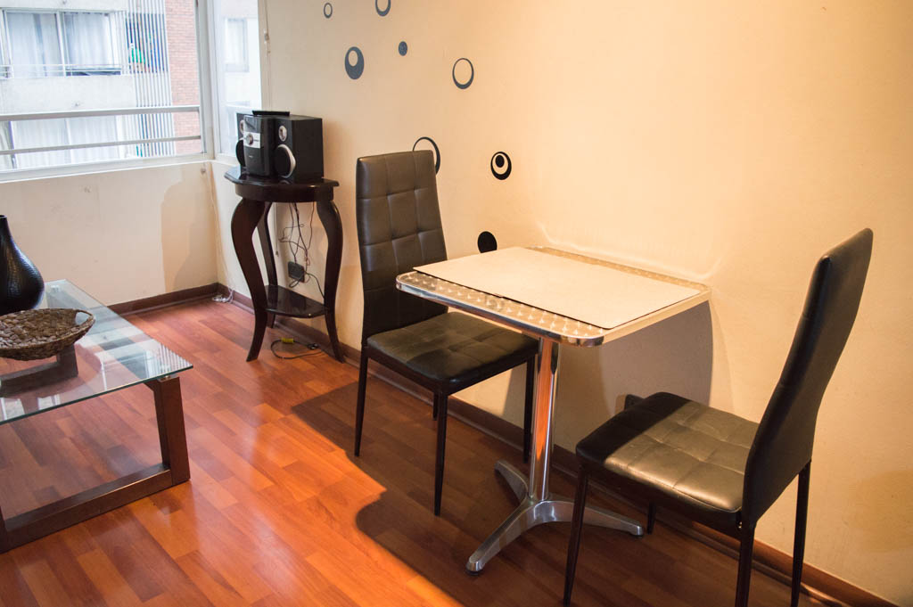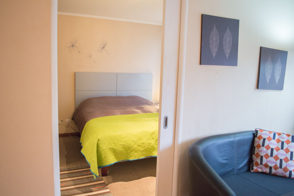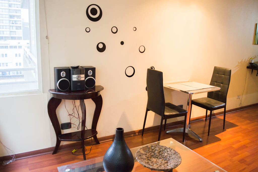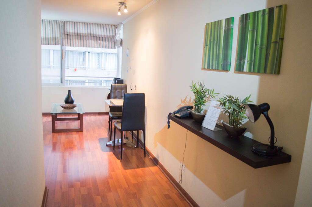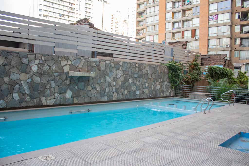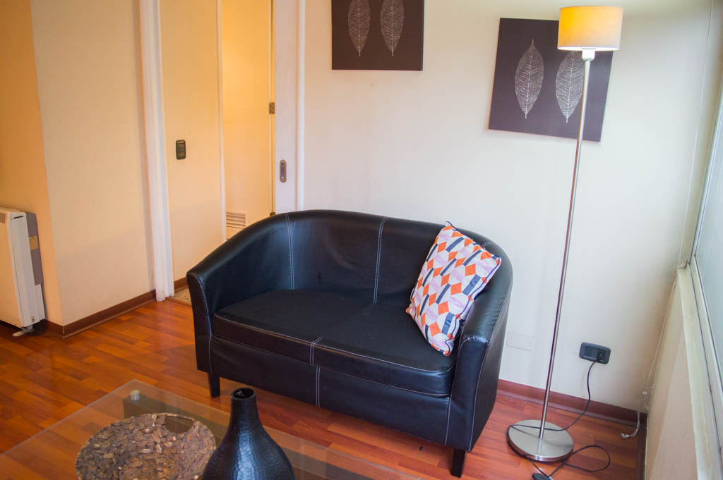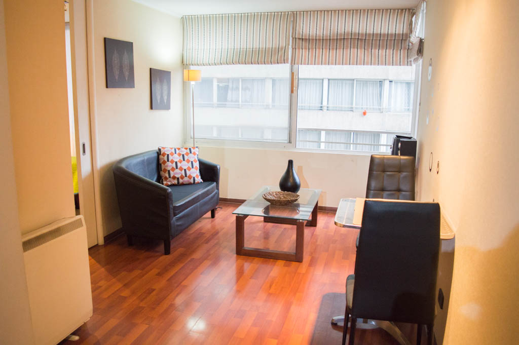 Departamento amoblado de 1 habitación ubicado a 1 minuto caminando de la parada de autobús y a 6 minutos caminando de la Estación de Metro La Moneda.El departamento tiene living, comedor, cocina (cerrada) y 1 baño. La habitación 1 tiene cama matrimonial, clóset, 2 mesas de noche, televisor y baño en suite; El lugar mide 33m² aproximadamente. Los gastos de servicios de gastos comunes, agua caliente, agua fría, electricidad e internet se pagan por adelantado junto a la renta mensual, con un límite de consumo de $ 151USD. El alojamiento tiene lavandería compartida cuyo valor es $ 2USD aproximadamente por carga de ropa (lavado o secado). Se debe pagar garantía (depósito) la que será devuelta al finalizar el período de arriendo; además, se debe pagar $ 35USD al momento de devolver el alojamiento para realizar la limpieza del lugar. Cerca del alojamiento se encuentra la Avenida Bernardo O'Higgins (más conocida como Alameda), el Palacio de La Moneda y la Plaza de la Constitución, entre otras edificaciones de valor histórico y arquitectónico. También podrás encontrar, múltiples restoranes, bares, bancos y entidades gubernamentales.