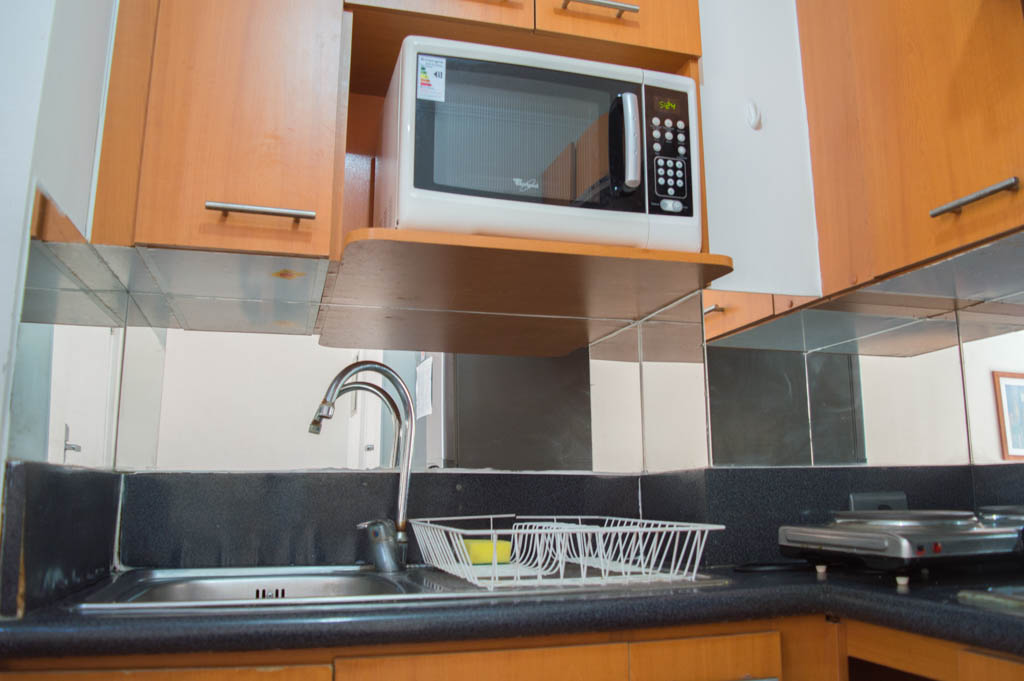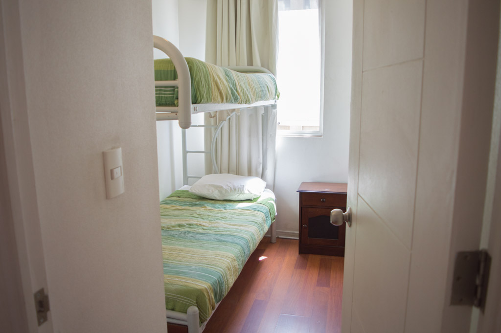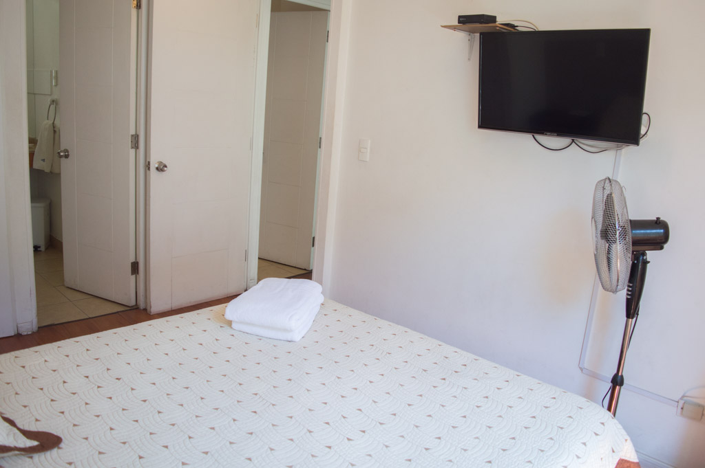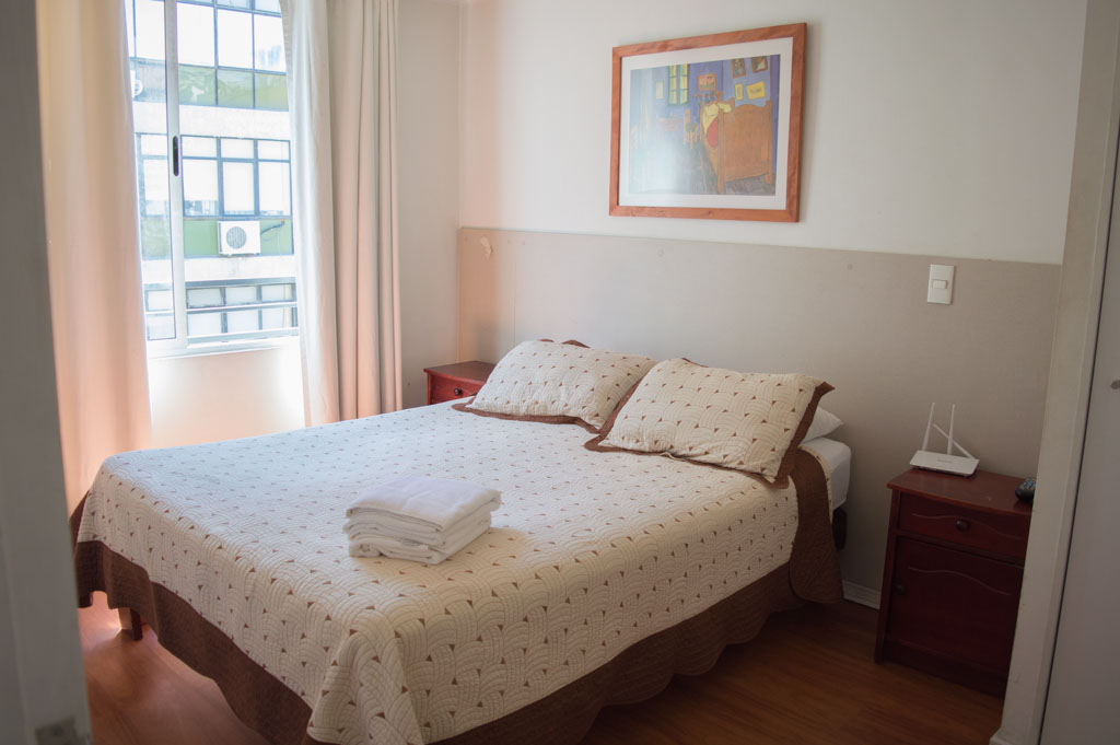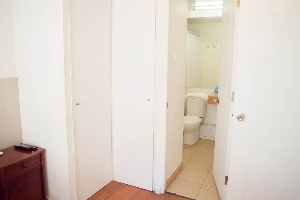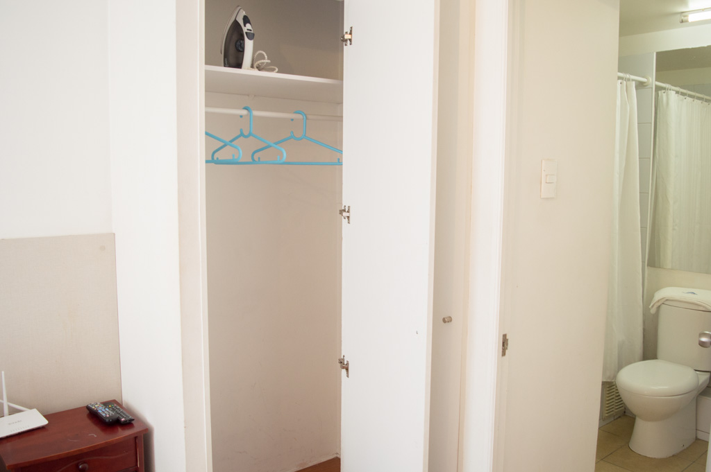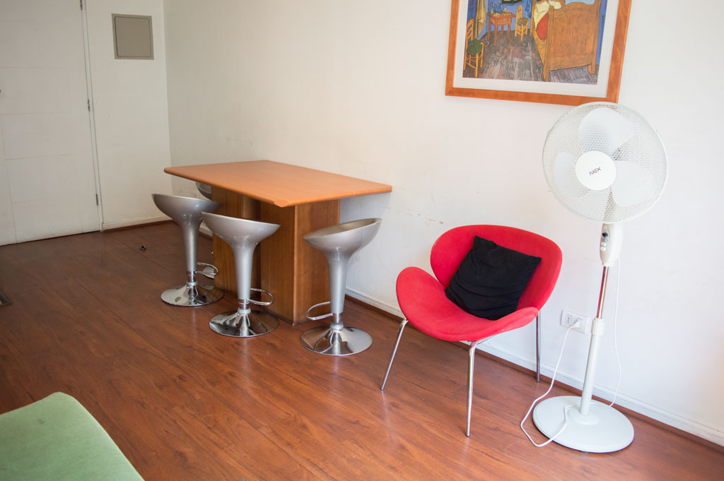 Departamento amoblado de 2 habitaciones ubicado a 2 minutos caminando de la parada de autobús y a 2 minutos caminando de la Estación de Metro Universidad de Chile.El departamento tiene living, comedor, cocina (abierta) y 2 baños. La habitación 1 tiene cama matrimonial, 2 mesas de noche, televisor y baño en suite; La habitación 2 tiene litera, clóset y mesa de noche; El lugar mide 45m² aproximadamente. Los gastos de servicios de gastos comunes, agua caliente, agua fría, electricidad, internet y TV cable se pagan por adelantado junto a la renta mensual, con un límite de consumo de $ 220USD. El alojamiento tiene lavandería compartida cuyo valor es $ 1USD aproximadamente por carga de ropa (lavado o secado). Se debe pagar garantía (depósito) la que será devuelta al finalizar el período de arriendo; además, se debe pagar $ 46USD al momento de devolver el alojamiento para realizar la limpieza del lugar. Cerca del alojamiento se encuentra la Avenida Bernardo O'Higgins (más conocida como Alameda) donde hay diversos locales comerciales, gran variedad de transporte público y el centro cívico de Santiago. A pasos del metro se encuentra el emblemático Instituto Nacional José Miguel Carrera, la Universidad de Chile y el Teatro Municipal de Santiago.