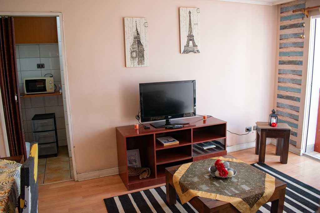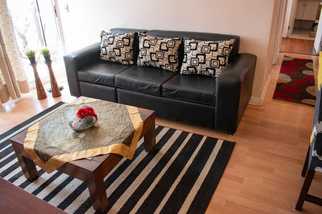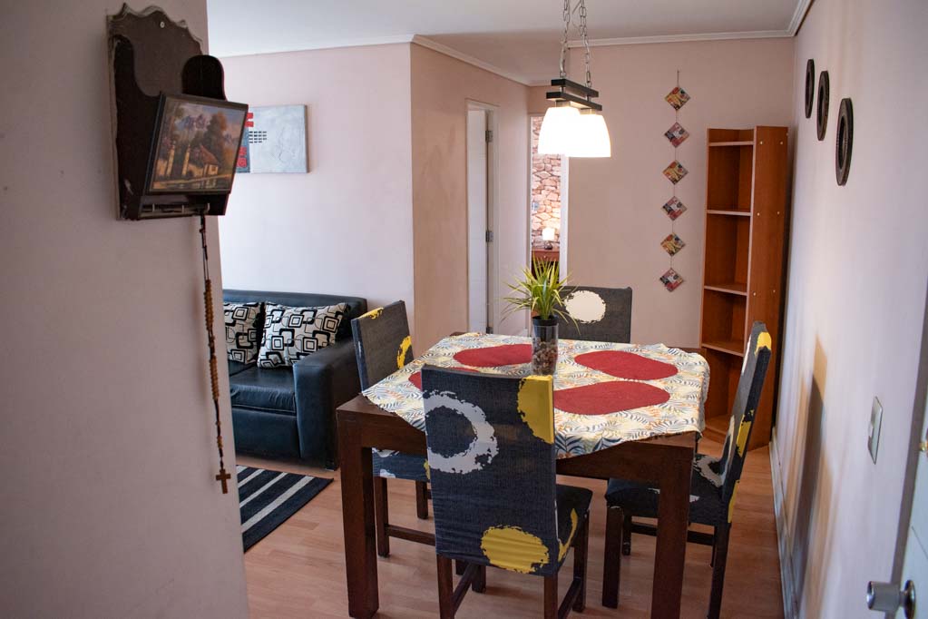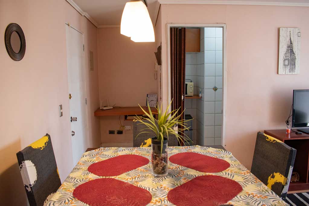 Departamento amoblado de 2 habitaciones ubicado a 3 minutos caminando de la parada de autobús y a 9 minutos caminando de la Estación de Metro Santa Isabel.El departamento tiene living, comedor, cocina (cerrada), 2 baños y balcón. La habitación 1 tiene cama matrimonial, walk-in clóset, 2 mesas de noche y baño en suite; La habitación 2 tiene 2 camas individuales, clóset y mesa de noche; El lugar mide 45m² + 2m² de terraza aproximadamente. Los gastos de servicios de gastos comunes, agua caliente, agua fría, electricidad, gas e internet se pagan por adelantado junto a la renta mensual, con un límite de consumo de $ 223USD. El alojamiento tiene lavandería compartida cuyo valor es $ 2USD aproximadamente por carga de ropa (lavado o secado). Se debe pagar garantía (depósito) la que será devuelta al finalizar el período de arriendo; además, se debe pagar $ 57USD al momento de devolver el alojamiento para realizar la limpieza del lugar. Cerca del alojamiento se encuentra los emblemáticos Liceo Arturo Alessandri Palma y el Liceo Carmela Carvajal de Prat; ubicados en el barrio Santa Isabel el cual ha crecido exponencialmente con los años debido al gran desarrollo inmobiliario lo que ha permitido la generación de áreas verdes y espacios deportivos. En el mismo sector se encuentra el barrio Italia donde se han instalado diversos artistas, diseñadores, maestros de la gastronomía, pequeños comercios, e incluso talleres mecánicos.
