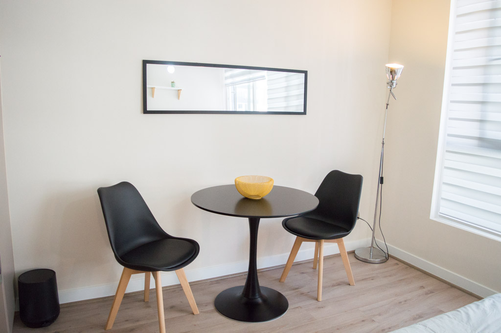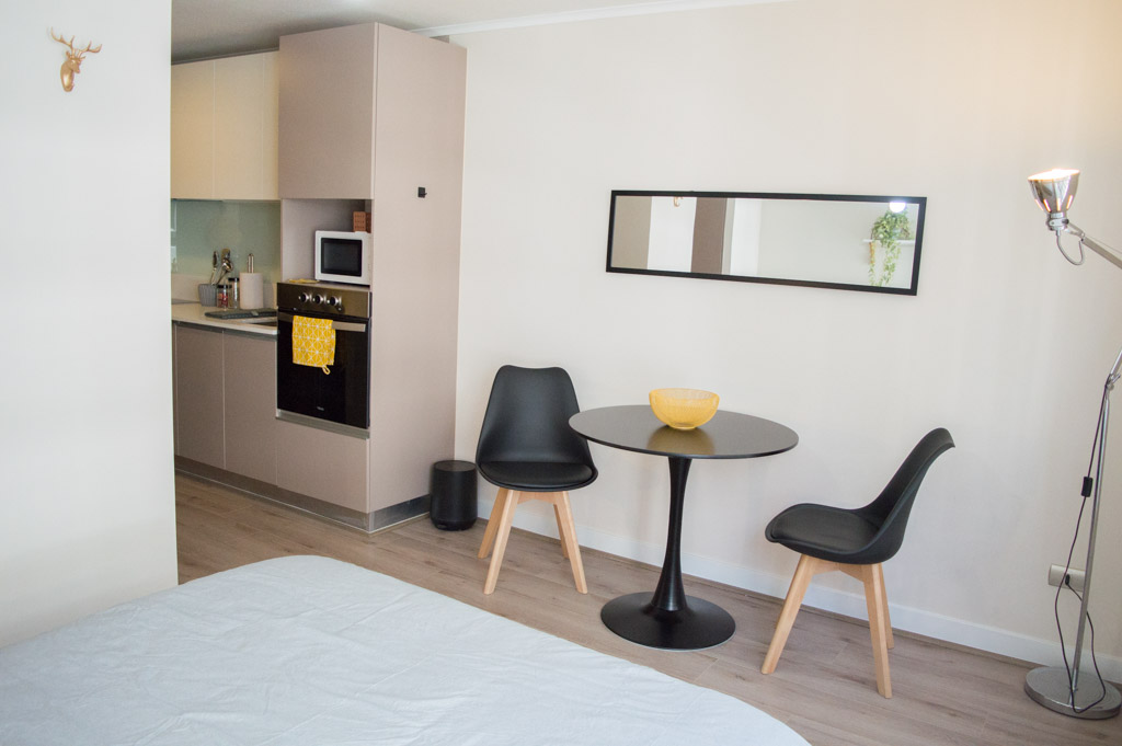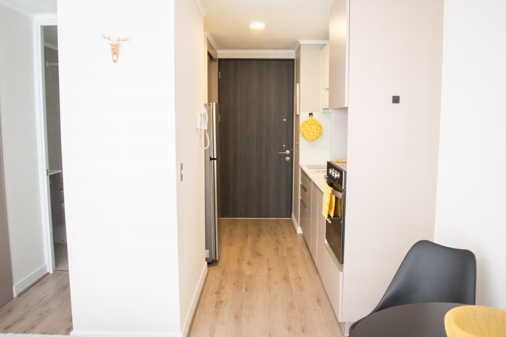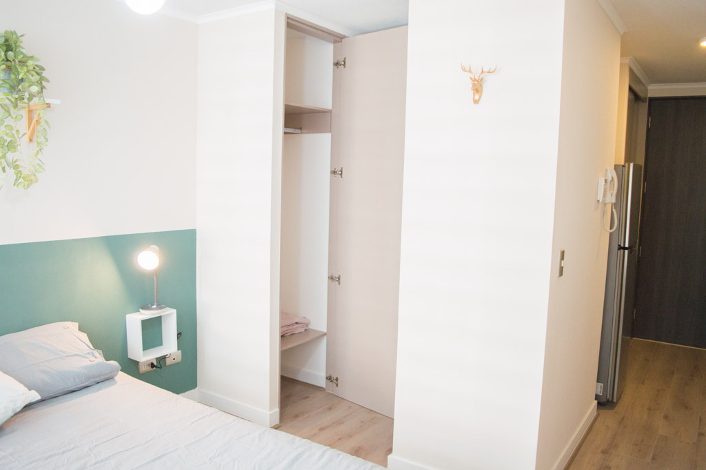 Departamento amoblado de un ambiente (studio) ubicado a 2 minutos caminando de la parada de autobús y a 7 minutos caminando de la Estación de Metro Parque Almagro.El departamento tiene comedor, cocina (abierta) y 1 baño. La habitación 1 tiene cama matrimonial, 2 clósets, 2 mesas de noche y baño en suite; El lugar mide 25m² aproximadamente. Se debe considerar el pago de gastos de servicios de gastos comunes, agua caliente, agua fría, electricidad e internet que suman $ 97USD aproximadamente. El alojamiento tiene lavandería compartida cuyo valor es $ 2USD aproximadamente por carga de ropa (lavado o secado). Se debe pagar garantía (depósito) la que será devuelta al finalizar el período de arriendo; además, se debe pagar $ 41USD al momento de devolver el alojamiento para realizar la limpieza del lugar. Cerca del alojamiento se encuentra el Parque Almagro que cuenta con espacios de áreas verdes para practicar ejercicios y pasear; en la zona están destacados monumentos como el Palacio Causiño y la iglesia de Los Sacramentinos, también se encuentra el campus de la Universidad Central, que brinda un aire juvenil al sector con sus estudiantes. Además, hay diversos medios de transporte público a distintos puntos de la ciudad.