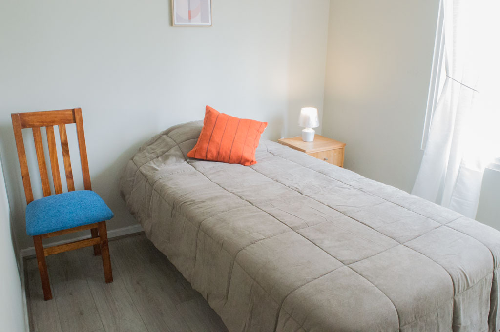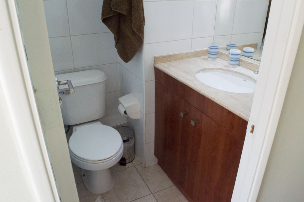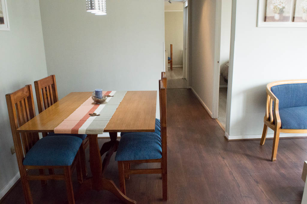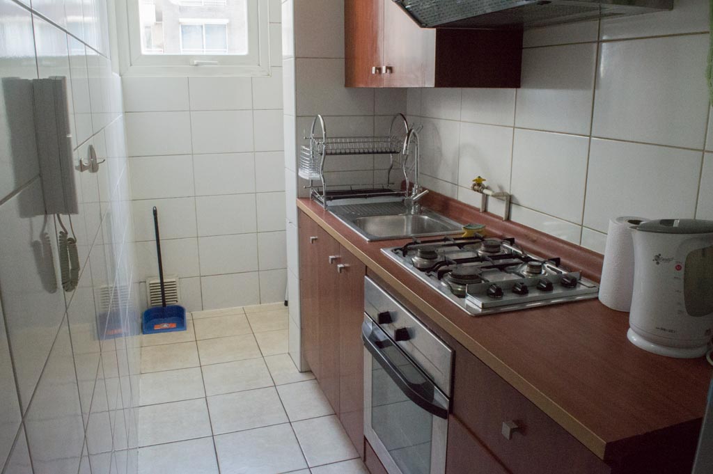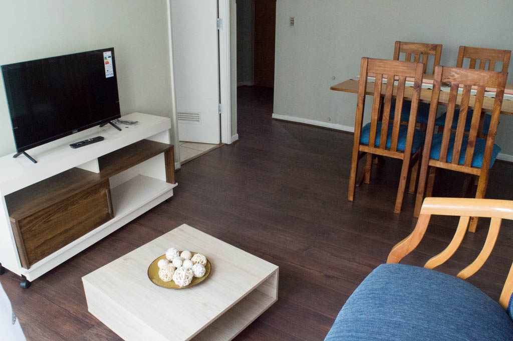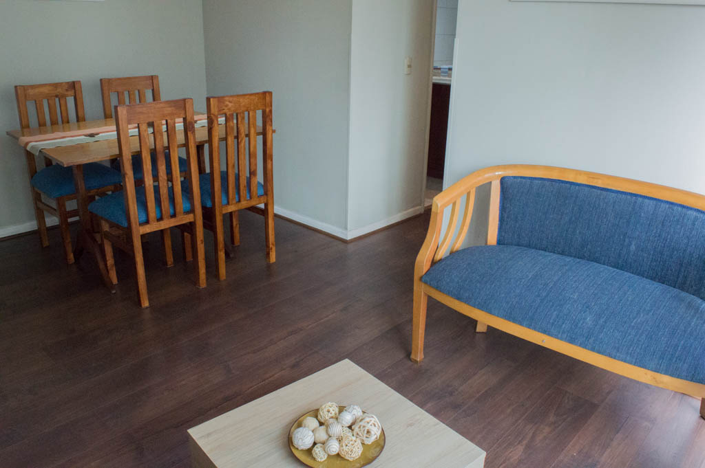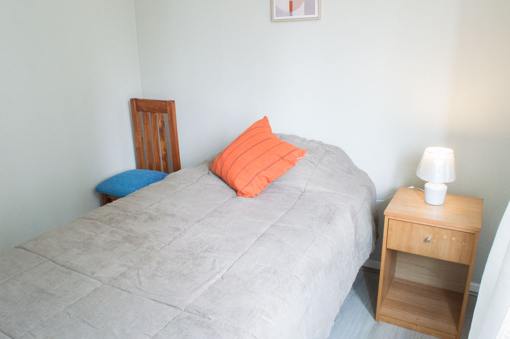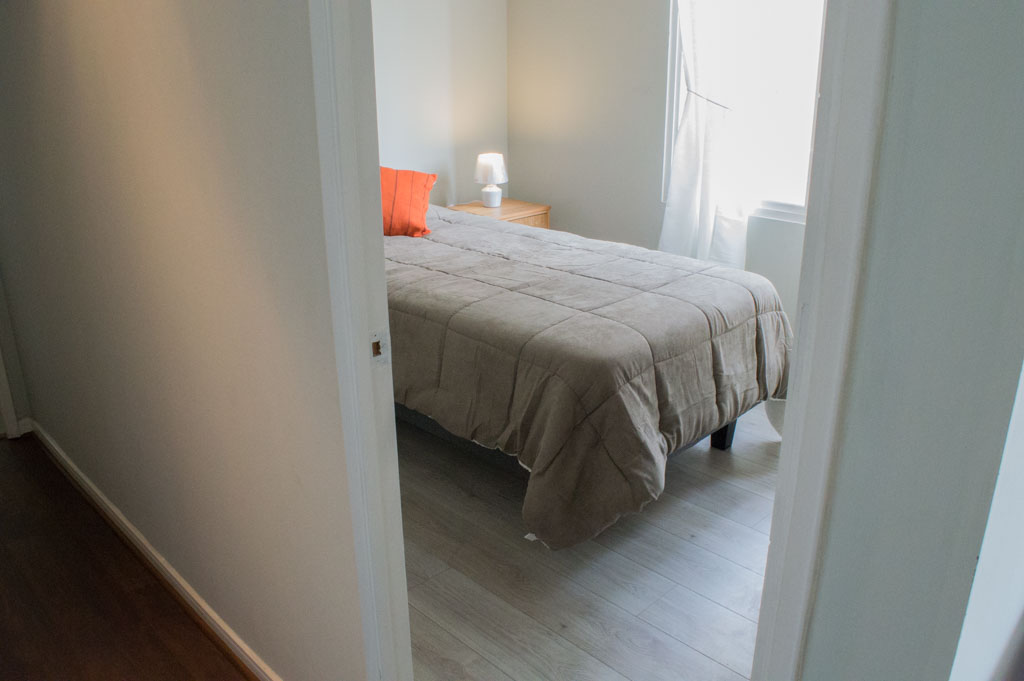 Departamento amoblado de 2 habitaciones ubicado a 1 minuto caminando de la parada de autobús y a 5 minutos caminando de la Estación de Metro Santa Ana.El departamento tiene living, comedor, cocina (cerrada), 2 baños, balcón y 1 estacionamiento (opcional por un valor de $ 99USD adicional). La habitación 1 tiene cama matrimonial, clóset, mesa de noche, escritorio, silla y baño en suite; La habitación 2 tiene cama individual, clóset y mesa de noche; El lugar mide 50m² + 3m² de terraza aproximadamente. Los gastos de servicios de gastos comunes, agua caliente, agua fría, electricidad y gas se pagan por adelantado junto a la renta mensual, con un límite de consumo de $ 269USD. El alojamiento tiene lavandería compartida cuyo valor es $ 1USD aproximadamente por carga de ropa (lavado o secado). Se debe pagar garantía (depósito) la que será devuelta al finalizar el período de arriendo; además, se debe pagar $ 77USD al momento de devolver el alojamiento para realizar la limpieza del lugar. Cerca del alojamiento se encuentra los emblemáticos liceo 1 Javiera Carrera y Liceo Aplicación, además de la iglesia Parroquial de Santa Ana, monumento nacional. A pasos podrás encontrar la plaza de Armas de Santiago, parte importante del casco histórico de Santiago, reconocido por su arquitectura e infraestructuras, tales como el Correo de Santiago, Catedral de Santiago, Municipalidad y la Casa Colorada.