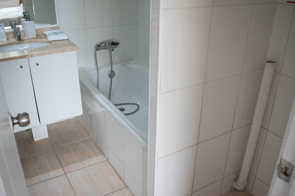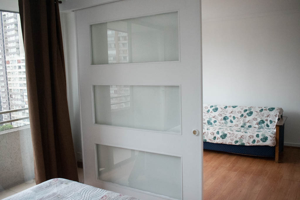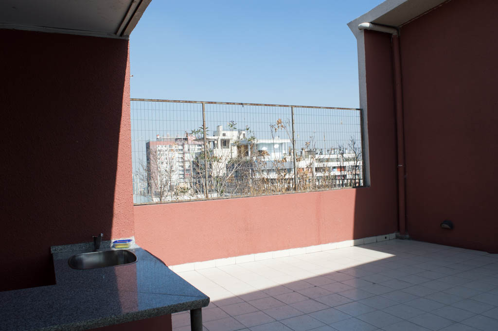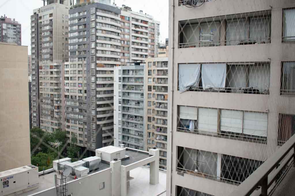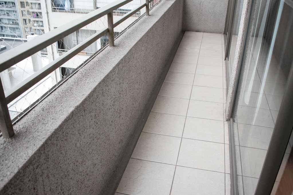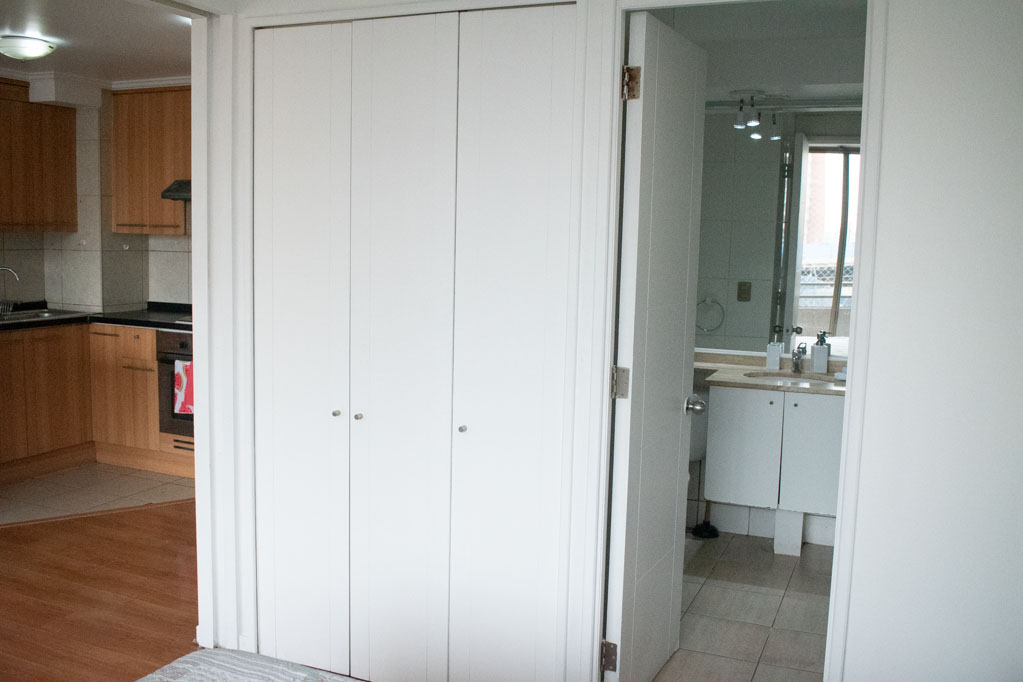 Departamento amoblado de 1 habitación ubicado a 1 minuto caminando de la parada de autobús y a 6 minutos caminando de la Estación de Metro Santa Lucía.El departamento tiene living, comedor, cocina (abierta), 1 baño y balcón. La habitación 1 tiene cama matrimonial, clóset, 2 mesas de noche y baño en suite; El lugar mide 33m² + 2m² de terraza aproximadamente. Los gastos de servicios de gastos comunes, agua caliente, agua fría y electricidad se pagan por adelantado junto a la renta mensual, con un límite de consumo de $ 121USD. El alojamiento tiene lavandería compartida cuyo valor es $ 2USD aproximadamente por carga de ropa (lavado o secado). Se debe pagar garantía (depósito) la que será devuelta al finalizar el período de arriendo; además, se debe pagar $ 55USD al momento de devolver el alojamiento para realizar la limpieza del lugar. Cerca del alojamiento se encuentra la Biblioteca Nacional, Teatro Municipal de Santiago, Cine Arte, ferias artesanales, centros culturales y el Cerro Santa Lucía, importante foco de turismo y paseos dominicales por los atractivos que presenta, como fuentes de agua, terrazas y miradores donde puedes disfrutar de una vista privilegiada de Santiago.