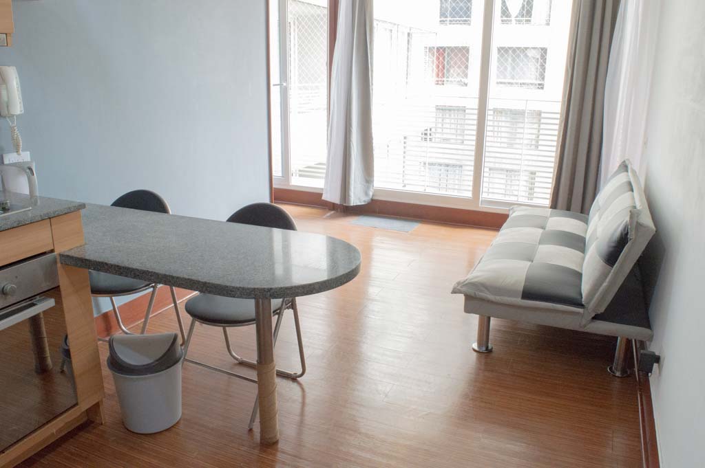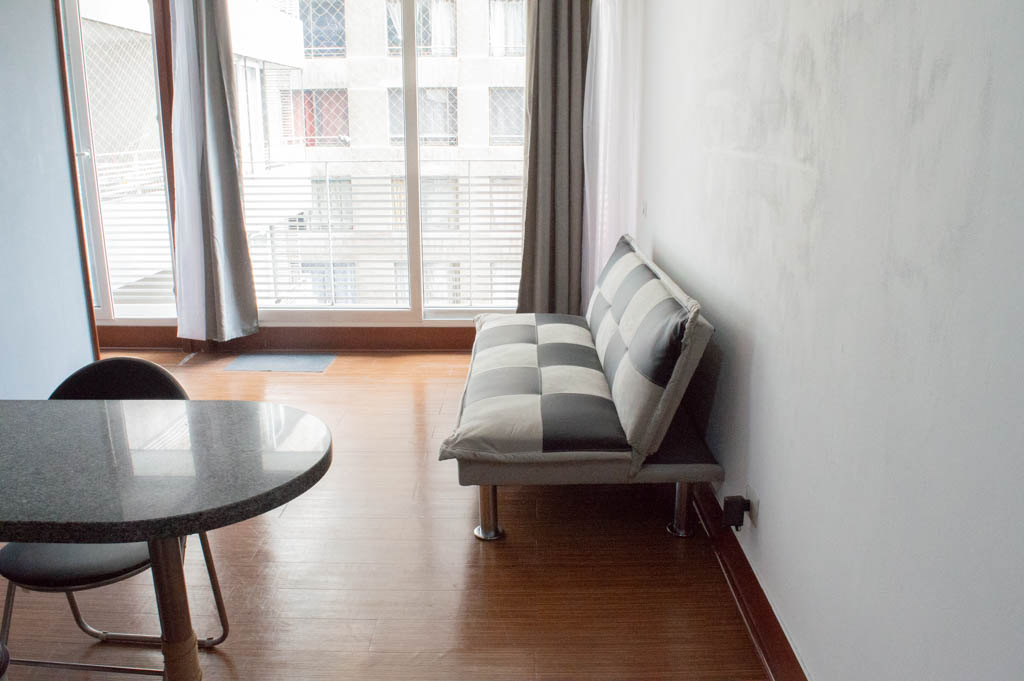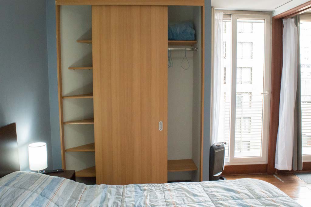 Departamento de 1 habitación, con orientación poniente (oeste), ubicado a 5 minutos caminando de la parada de autobús y a 4 minutos caminando de la Estación de Metro Universidad de Chile.Características generales: