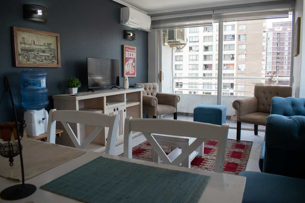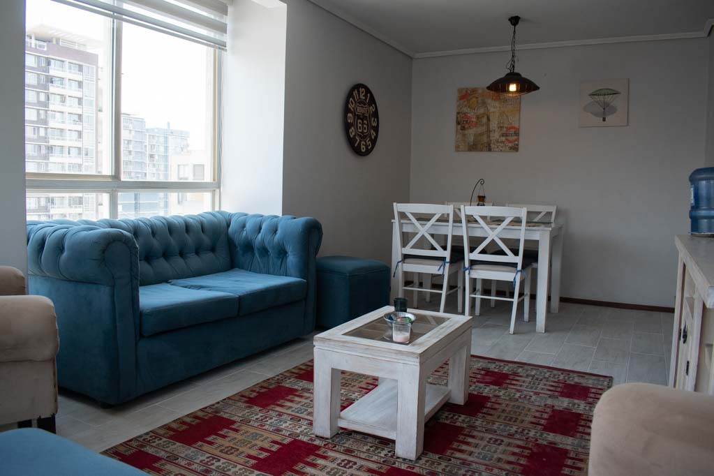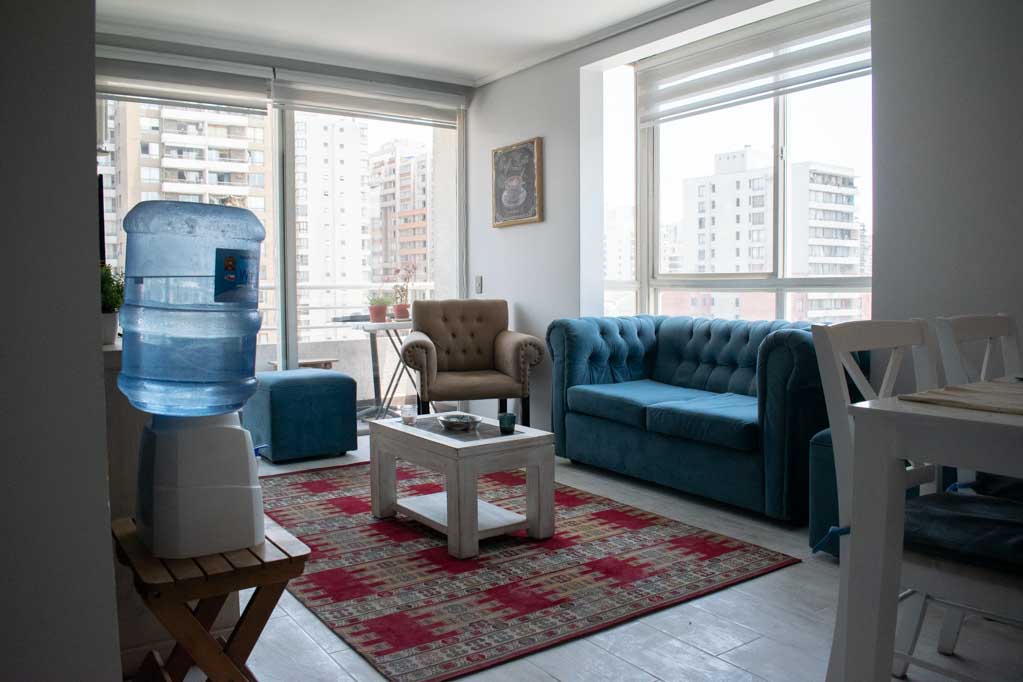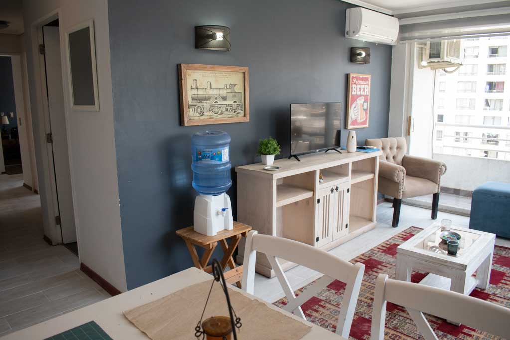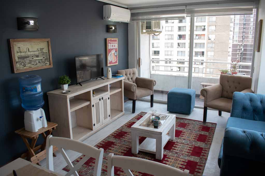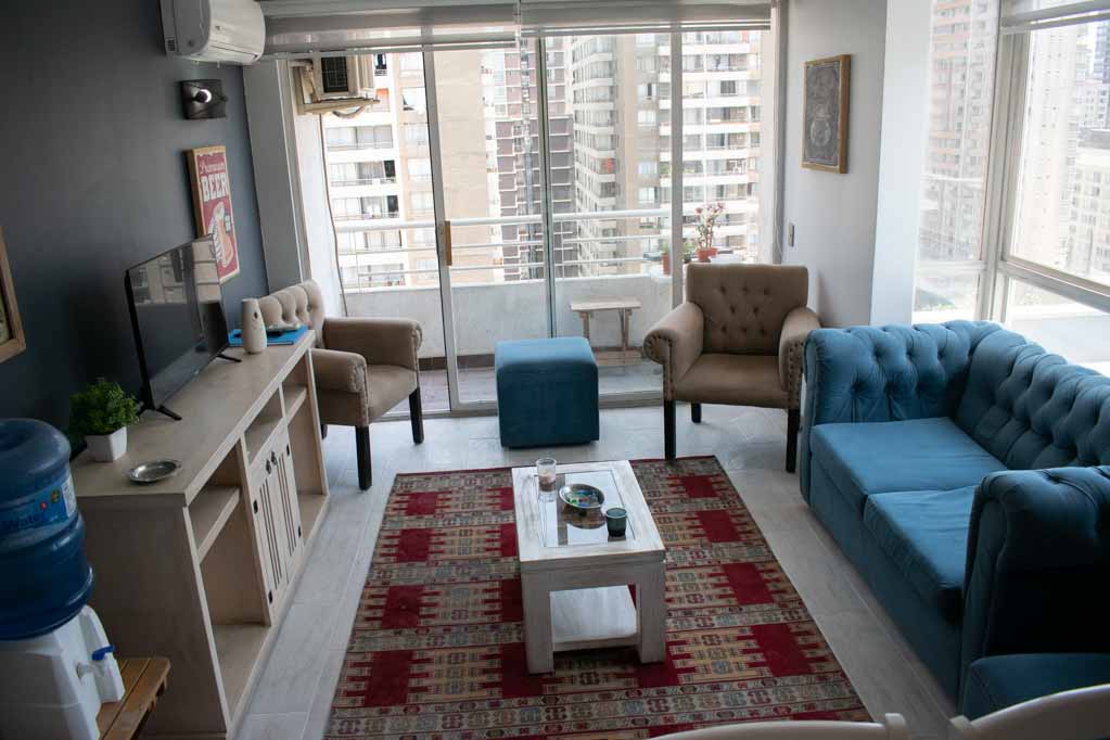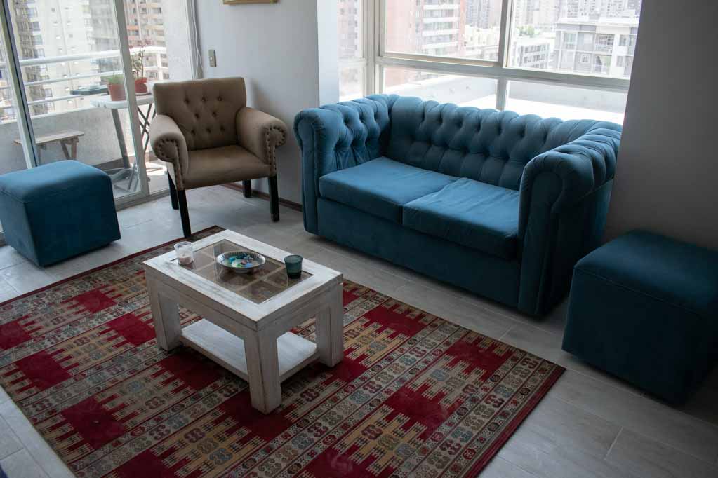 Departamento amoblado de 2 habitaciones ubicado a 5 minutos caminando de la parada de autobús y a 15 minutos caminando de la Estación de Metro Universidad Católica.El departamento tiene living, comedor, cocina (cerrada), 2 baños, terraza y 1 estacionamiento (opcional por un valor de $ 55USD adicional). La habitación 1 tiene cama matrimonial, walk-in clóset, 2 mesas de noche y baño en suite; La habitación 2 tiene cama individual, clóset y mesa de noche; El lugar mide 60m² + 4m² de terraza aproximadamente. Los gastos de servicios de gastos comunes, agua caliente, agua fría, electricidad e internet se pagan por adelantado junto a la renta mensual, con un límite de consumo de $ 147USD. El alojamiento tiene lavandería compartida cuyo valor es $ 2USD aproximadamente por carga de ropa (lavado o secado). Se debe pagar garantía (depósito) la que será devuelta al finalizar el período de arriendo; además, se debe pagar $ 55USD al momento de devolver el alojamiento para realizar la limpieza del lugar. Cerca del alojamiento se encuentra la Facultad de Arquitectura de la Universidad de Chile y la Casa Central de la Universidad Católica. En la Avenida Bernardo O'Higgins (más conocida como Alameda) es posible encontrar gran variedad de locales comerciales, bancos, cines, restaurantes y medios de transporte público. En sus proximidades, también podrás disfrutar del Barrio Lastarria conocido por sus diversos bares, cafés, restaurantes y centros culturales como el GAM.